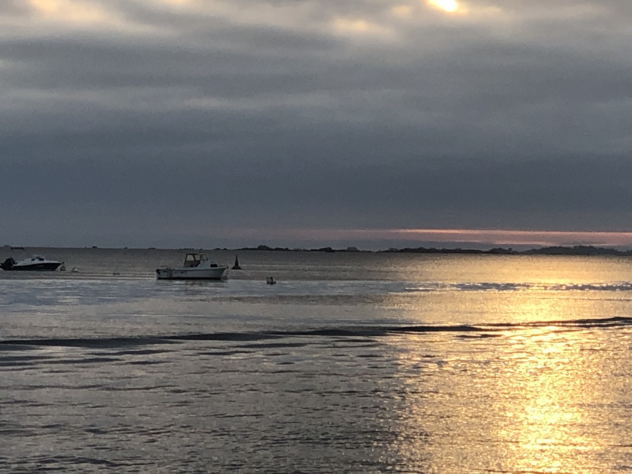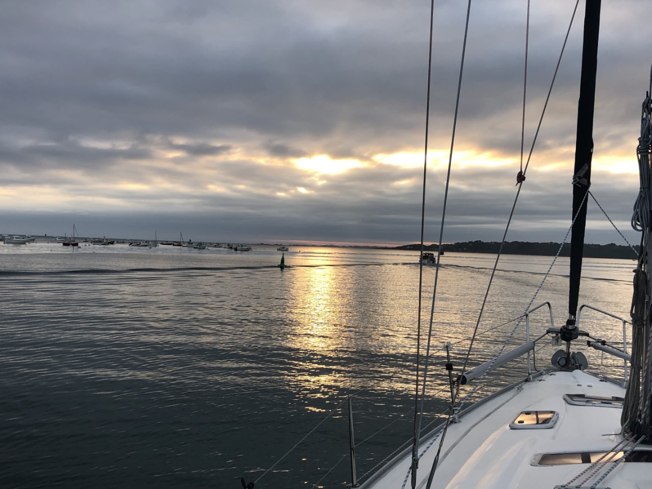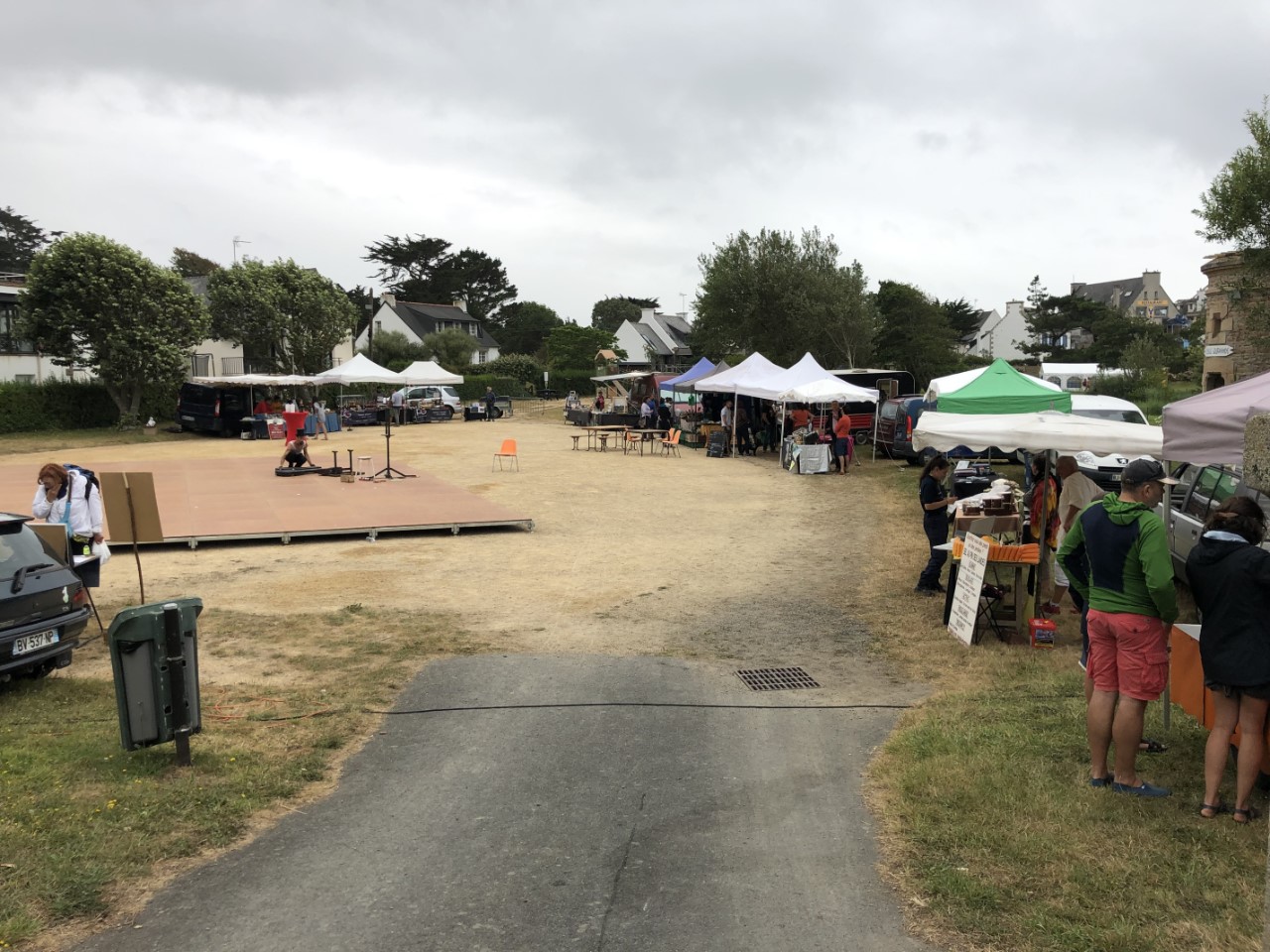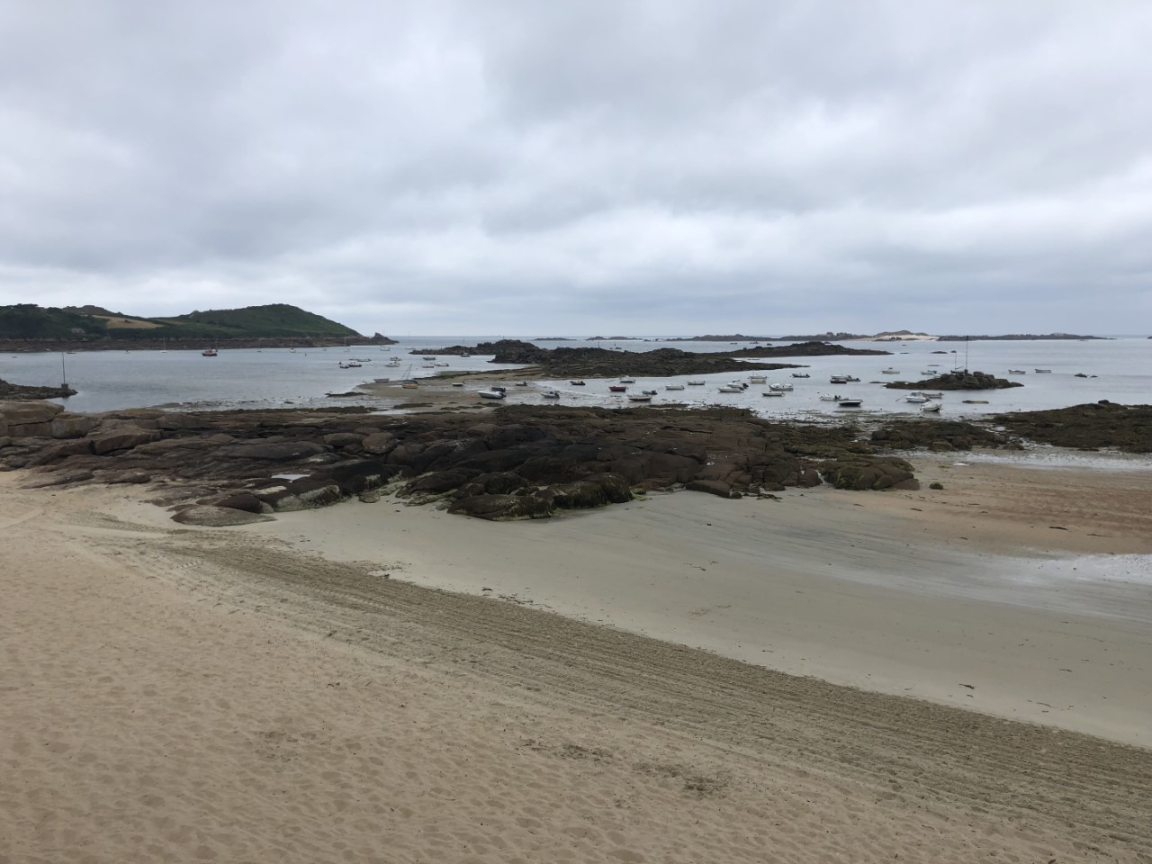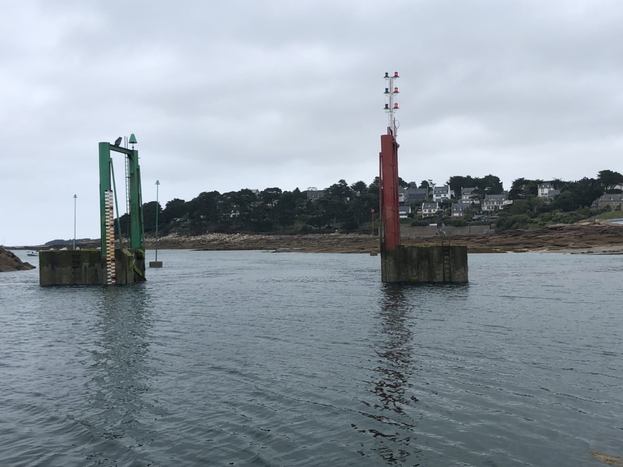 Vroeg op. Om 7:00 uur gingen de sluisdeuren open en wij waren de enige zeilboot die uitvaarden. We hebben ruim 4 uur om in Trébeurden te komen, want ook daar hebben ze een lock. We wisten al, dat we bijna 3 knopen stroom tegen hebben. Met weinig wind gedurende het eerste uurtje hebben we alleen op de motor gevaren. Plotseling kwam er wind en de zeilen ging op. Ondanks de stroom tegen gingen we bijna 7 knopen hoog aan de wind. Maar we moesten meer naar bakboord koersen en hoger konden we niet varen. Met de rotsen links en rechts was laveren ook geen optie, ook in verband met de tijd. We hebben de zeilen ingerold en op de motor werd het tegen de wind en de stroom inhakken. Ruim op tijd draaiden we de haven in en werden opgevangen bij een box. Na de lunch hebben we bij ons aan boord ook maar een siësta uurtje ingevoerd, want voor 14:00 uur is er toch niks te beleven. Bovendien is het ook geen strandweer. We gaan op pad, via alweer een steile weg omhoog. Na een saaie weg met mooie en vervallen huizen was er eindelijk een bakkertje en een heel stuk verder een grote supermarkt. Maar eerst even naar het kerkje, omdat daar meestal rondom winkeltjes zijn, maar niet hier. Een kapper en een makelaar. Dan maar naar de supermarkt voor onze bootvoorraad. Met een volle zware tas met wijntjes voor Marianne gingen we nu gelukkig bergaf naar de Just. In Yachting Monthly staat over dit plaatsje: Trébeurden has a rather nostalgic atmosphere of holidays by the sea. The small town of Trébeurden has everything you might need in the way of shops. Wij vinden het voorlopig wel heel erg nostalgisch en de shops zijn niet te vinden. Maar misschien morgen met een zonnetje ziet het er heel anders uit. Ook is er een avondmarkt in een parkje bij de haven, dus na ons maaltje hebben daar even rondgelopen. Langs de 6 marktkraampjes, dus we waren snel weer terug, ook omdat het een beetje begon te regenen. We zijn benieuwd als we hier gewend zijn, hoe we het morgen ervaren.