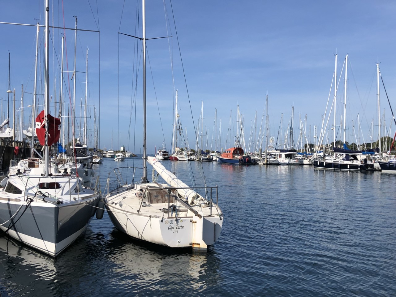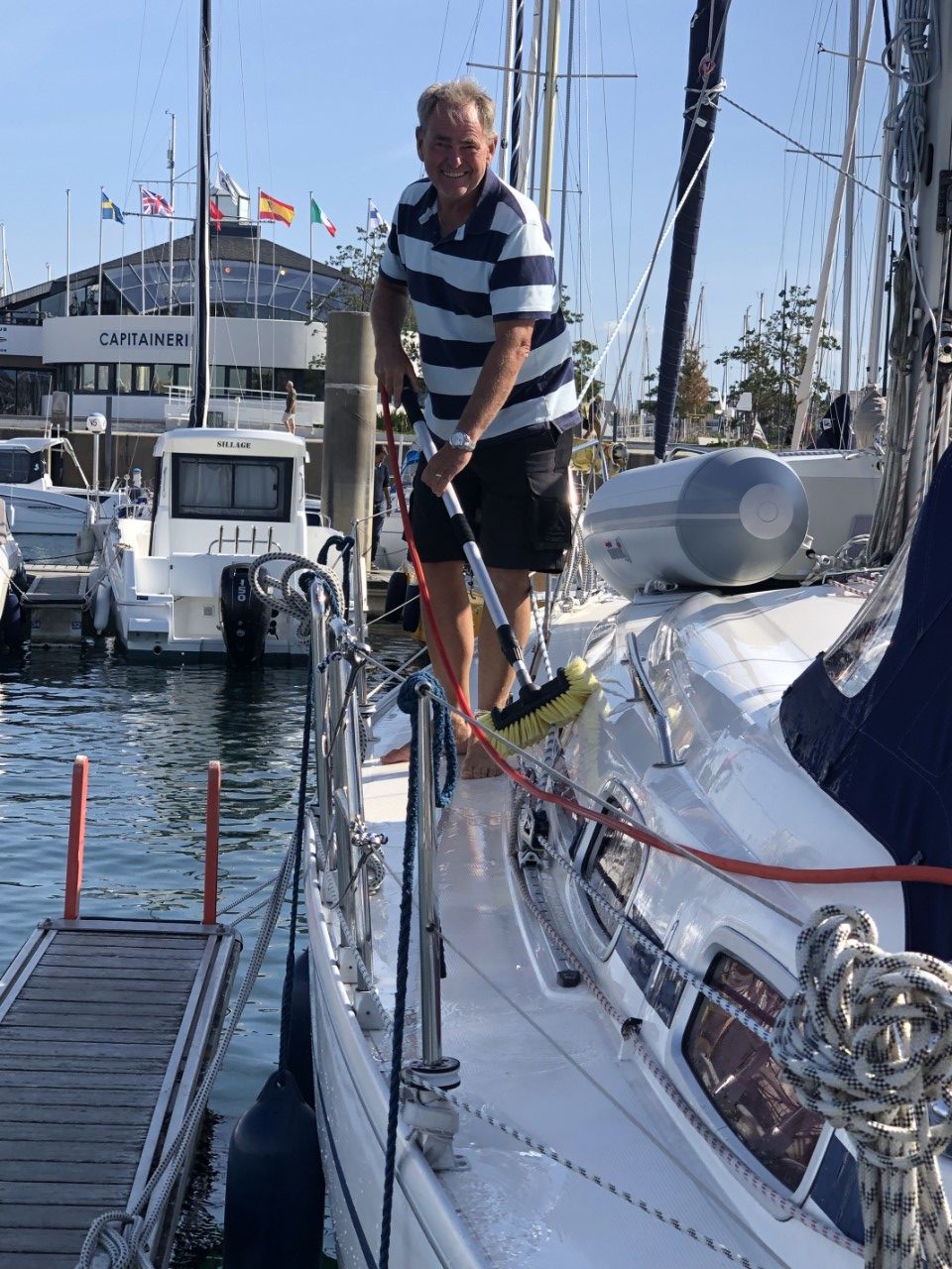 We zijn weer eens vroeg uit de veren. We gaan varen naar de overkant van de baai van Quiberon. Een klein tochtje van nog geen 10 mijl. Buiten de haven hebben we gelijk de zeilen gezet voor een rechte koers naar de Meaban Kardinaal. Daar hebben we de zeilen gestreken en zijn het laatste stuk op de motor tegen de wind naar de haven gevaren. We kregen direct een box aangewezen in een smal vaarwatertje met een lastige draai naar onze box. We zijn daarna gelijk aan de slag gegaan en hebben al het wasgoed in de machine gestopt, de Just afgespoten en de watertanks gevuld. Alle klusjes klaar en nog even naar de Intermarché, maar die is dicht tot 14:30 uur. Dan maar naar het strand, waar we een klein uurtje lekker hebben gezeten en naar een stuntelende, les krijgende surfer hebben gekeken. We doen een nieuwe poging om weer naar de supermarkt te gaan, die nu wel open is. We waren hier een week of twee geleden met Mark en Marion en toen was het heel erg druk op de kade met vakantievierende Fransozen. Nu is het aanmerkelijk rustiger, maar de haven is wel goed gevuld. Vier uur later waren we weer op de Just. Onze maagjes knorden, dus zijn we gelijk aan de voorbereidingen voor ons maaltje begonnen. We hadden nog plannen om na onze maaltijd een wandeling te maken, maar die verschuiven we naar morgen. We zitten veels te lekker aan boord.