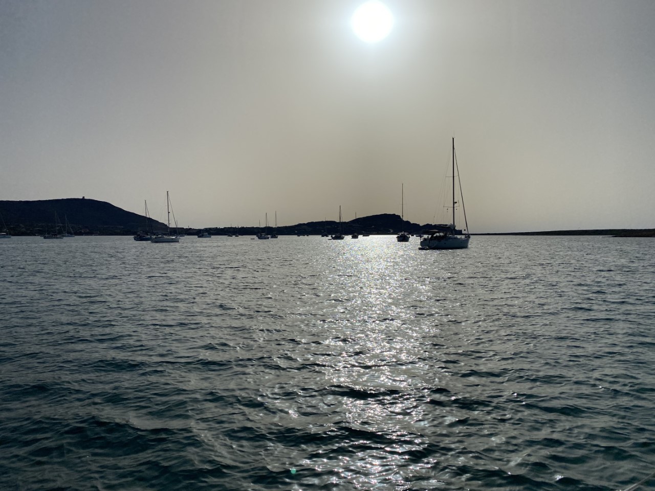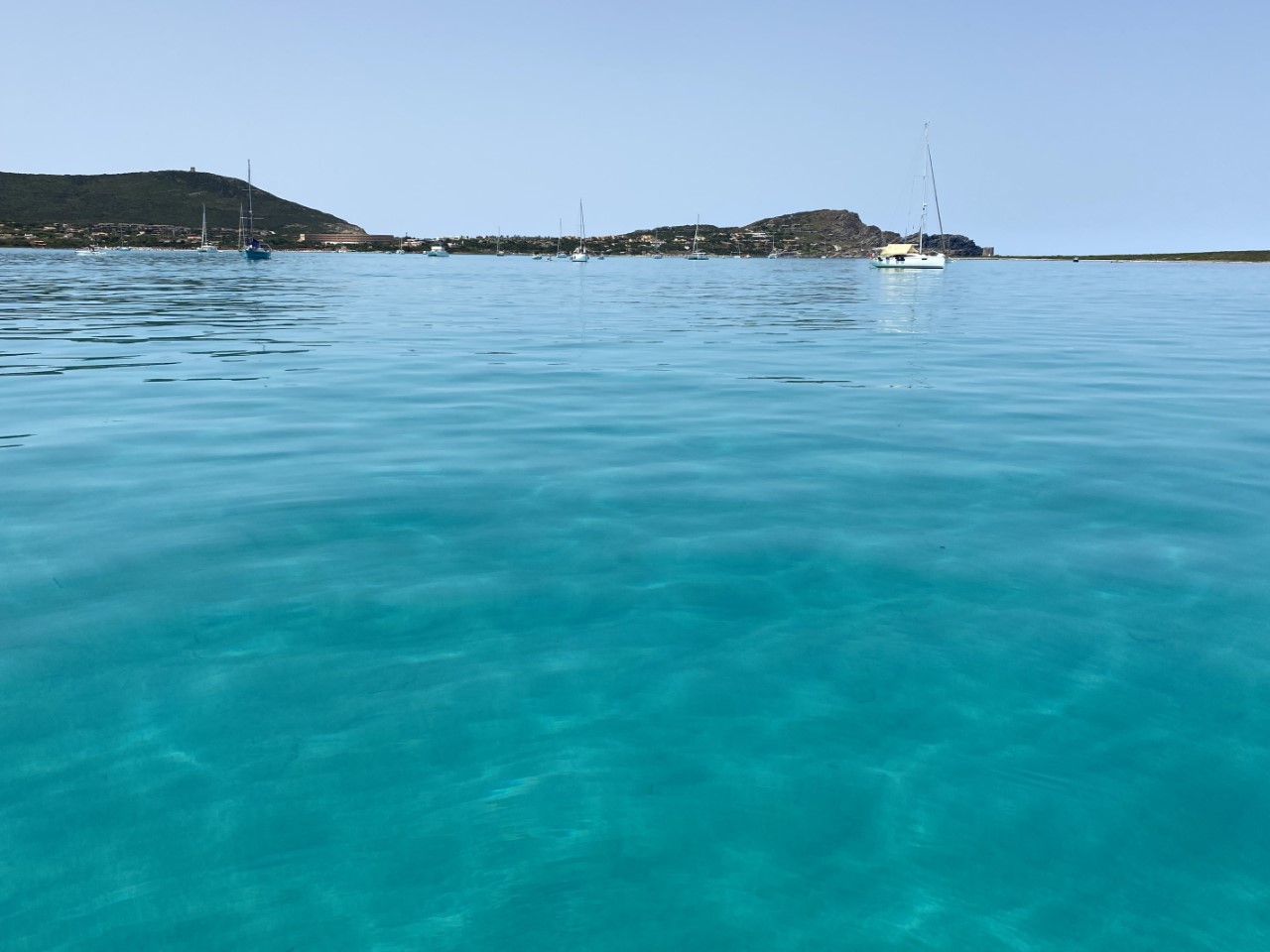 We hebben besloten dat er nog een Optie 3 is, de Passaggio Della Pelosa. Volgens de gebruikers van de Navily App, is dit een van de beste en mooiste ankerplekken van de Middellandse zee. Dat kunnen we niet overslaan. We moeten nog wel eerst een spannende passage varen, de Rada dei Fornelli. Dit is een ondiepe doorgang (3 meter of iets minder). Met de plotter flink ingezoomd ontwijken we alle ondieptes. Nu nog een plekje uitzoeken. We zien veel andere zeilboten op anker. Wij vinden een mooie zandplaat op vijf meter diepte in glashelder water. Er is niks van gelogen, het is hier prachtig. Wij duiken gelijk het water in om af te koelen en het anker te controleren.