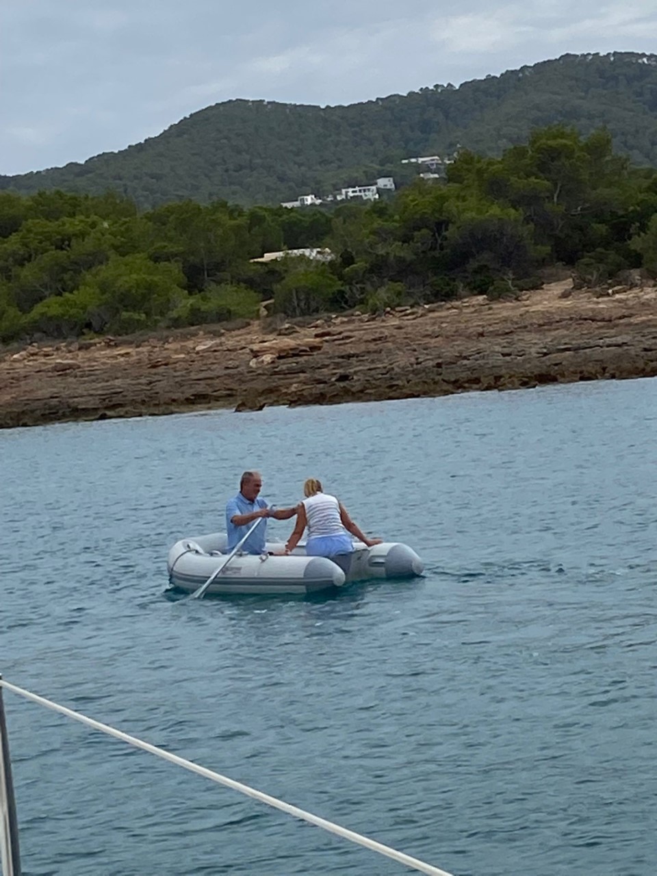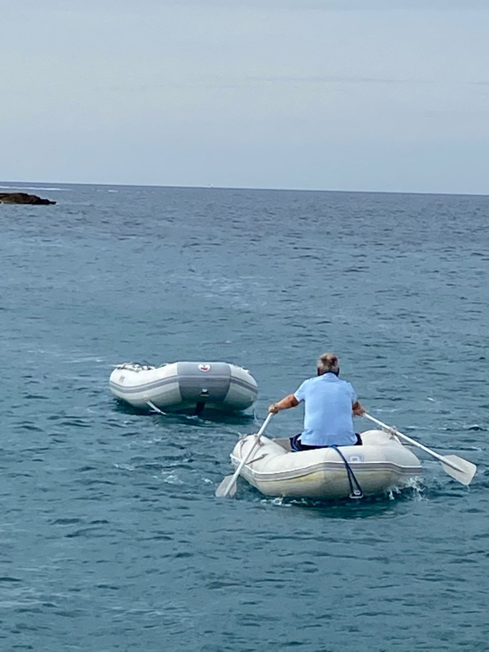 Ria komt een rondje om de Just zwemmen en in de middag borrelen we op de Primevere. Daar speelt wel het spannendste avontuur van de dag af. Wim heeft ons bijbootje vastgebonden, maar ik mis op een bepaald moment het lijntje aan hun reling. We kijken rond en ons bijbootje drijft al bijna 100 meter verder. De bemanning van een Amerikaanse catamaran heeft al een duik genomen naar ons bijbootje, terwijl ik met het bijbootje van Wim op weg ben. Samen komen we aan bij de catamaran. Na een bedankje voor de redding ben ik terug geroeid naar de borrel en heb erop toegezien dat ons bijbootje nu wel goed wordt vast gelegd.