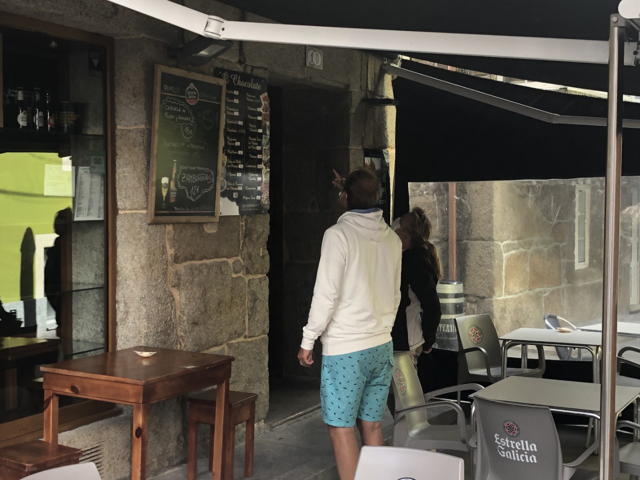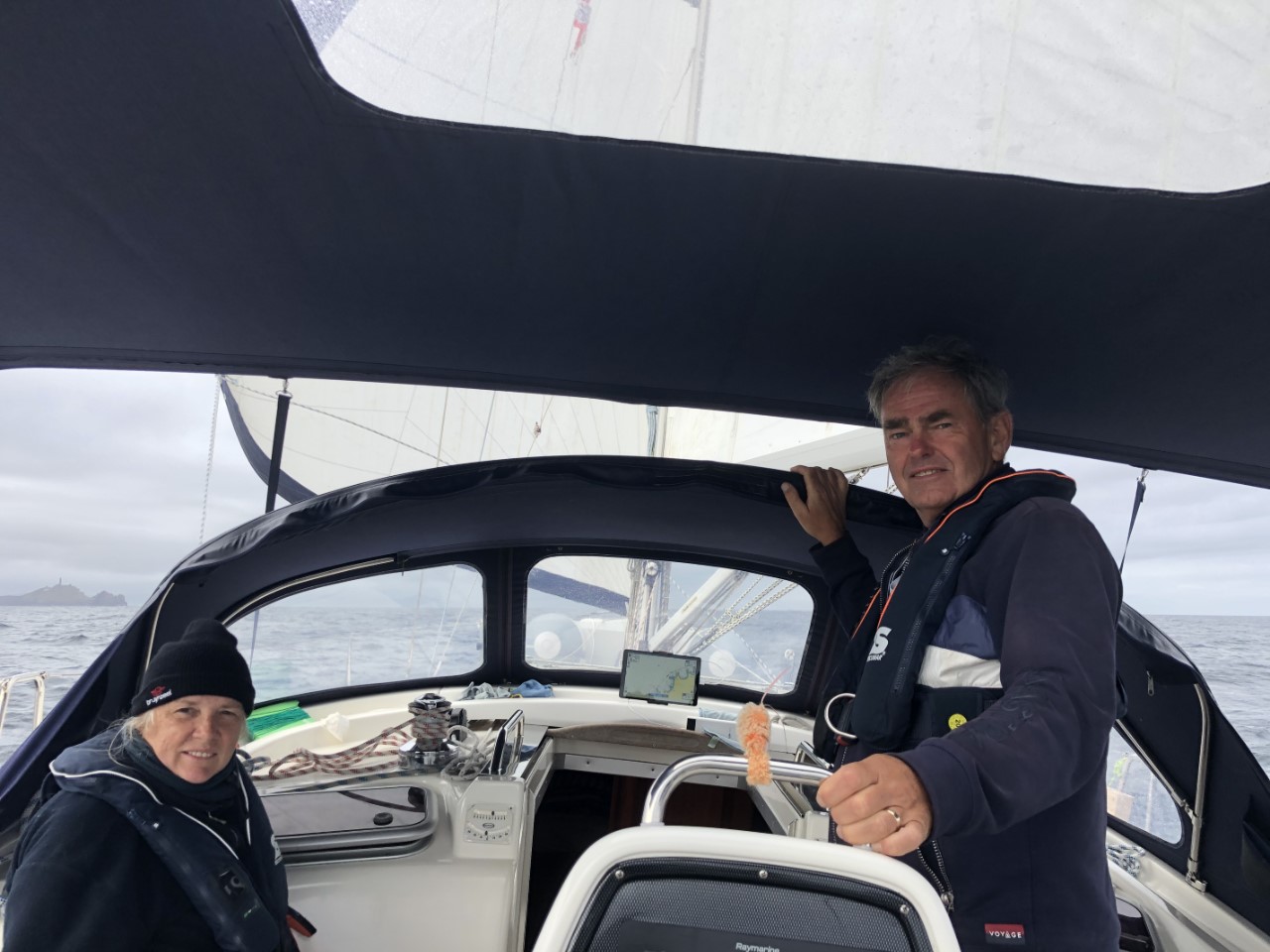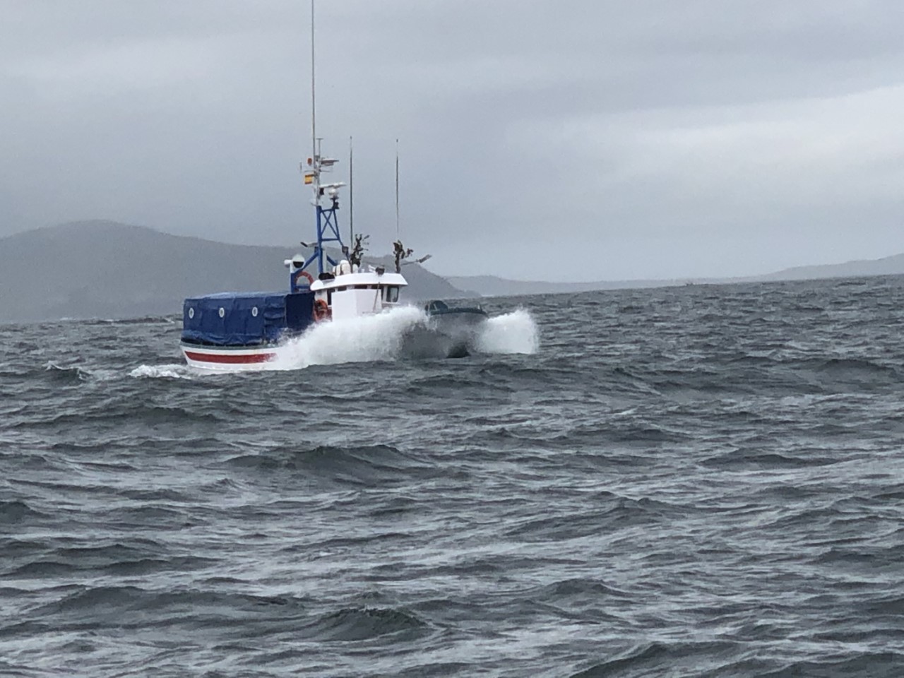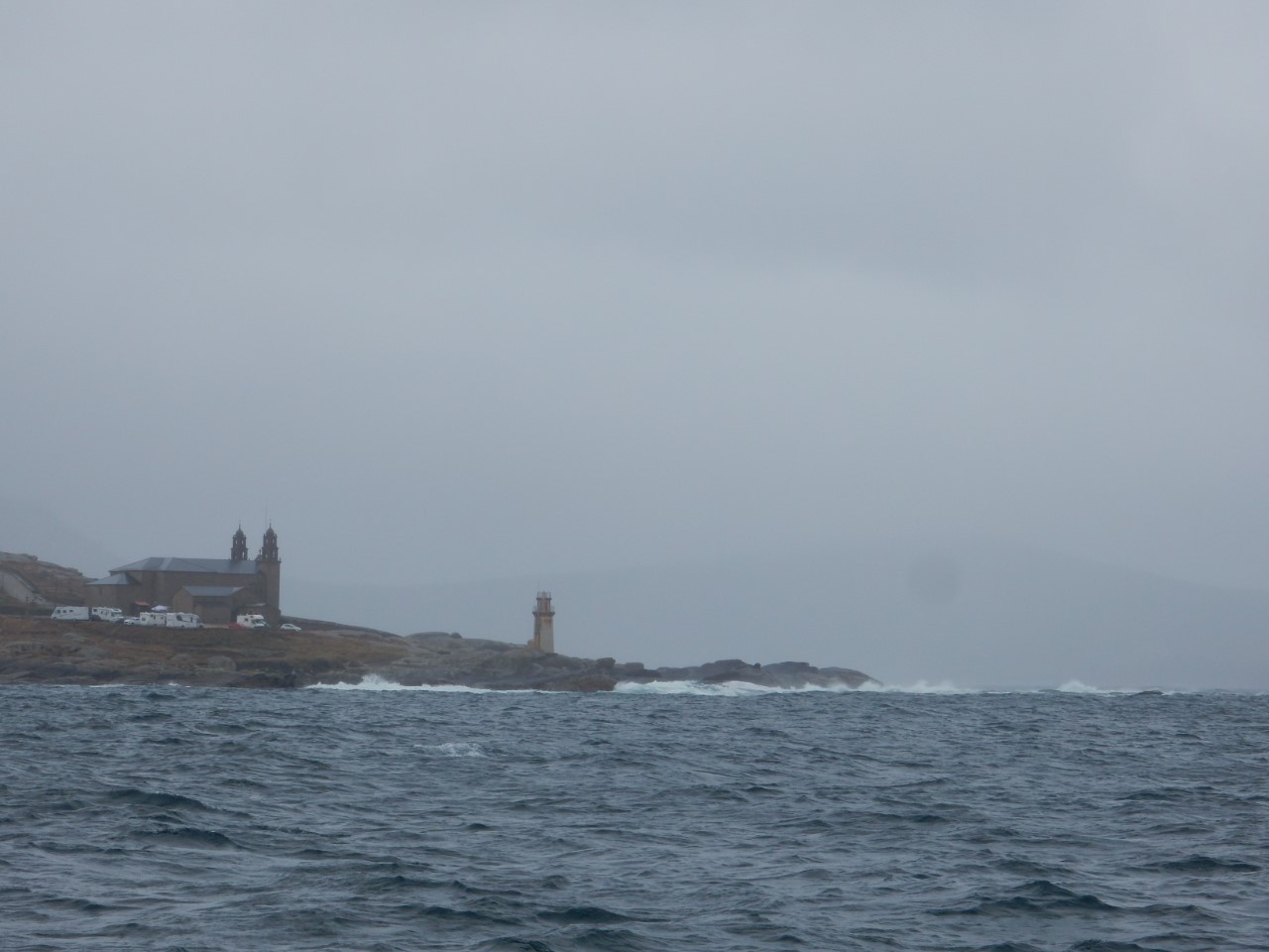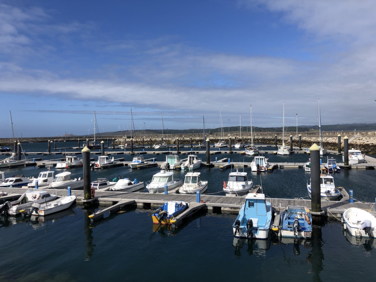 Ik ging eerst maar even kijken of de mist van gisteravond was weggetrokken voordat ik de crew wakker zou maken. Het was helemaal helder dus riep ik hard door de Just “We gaan”! De crew schrok wakker. Maar even later waren ze wel paraat aan dek. We hadden een rustig tochtje verwacht met weinig wind, tenminste zo was de weersvoorspelling. Maar toen we de Ria uit waren gevaren ging al snel het grootzeil bij en de motor uit. De koers ging eerst naar het westen. Met halvewind haalden we een snelheid van tegen de 8 knopen. We passeerden Punta del Boy, het punt waar we naar het zuiden konden varen. Maar wij gingen nog iets door, zodat we na een stormrondje als melkmeisje zuidelijk konden varen. We kwamen aan in een regenachtige lege haven, waar er genoeg plekjes waren om aan te leggen. De havenmeester ving onze lijntjes op. Toen we ons gingen melden bij het havenkantoor werden we opgewacht door de politie, die ons saluerend begroette en ook vroeg om de paspoorten. Toen het papierwerk was geregeld, heb ik met Daniel de olie ververst van de Just. Dat kan dan ook weer van de kluslijst af. Marianne zat te haken. De wind was inmiddels stevig aangetrokken en het stormde aardig in de haven. Wij liggen hogerwal en worden van de steiger afgeblazen. We liggen stormvast. Er kwamen nog drie andere zeilboten binnen schuilen voor de verwachte storm. Twee ervan kwamen we al eerder tegen. In de avond hebben we door alle drie de straatjes gelopen, die dit dorpje rijk is. Daniel heeft zijn visgerei wel weer wat kunnen uitbreiden met het idee de komende tijd grotere vissen aan de haak te slaan. Naast de haven hebben we een prachtig strandje en er is aan de andere kant een berg die beklommen zou kunnen worden. Morgen kijken we het weer aan. Blijven of ankeren, maar de crew mag uitslapen, heb ik beloofd.
