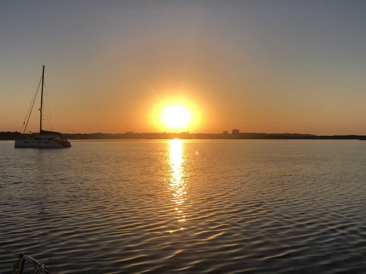 De tweede nacht in deze Rio gaat het niet worden. Gisteravond nadat we eerst een tijdje naar de sterren hebben gekeken en wat later naar Mulan op de laptop zaten te kijken, kwamen er om de haverklap kleine vissersbootjes met zware motor langs knallen. Wij keken iedere keer op, gaat dit wel goed? We hadden niet het idee dat we in een vaarroute lagen, maar meer aan de zijkant langs de ondiepte. De Catamaran achter ons vonden wij wel midden in de vaarroute liggen. Die vissersbootjes kwamen tot diep in de nacht langs. We hebben wel geslapen, maar dat willen we niet nog een keertje. Tijdens het ontbijt waren we het er over eens dat we gaan verplaatsen. Dieper de lagune in durfden we niet in verband met de diepgang, dus gingen we op weg naar Portimão.