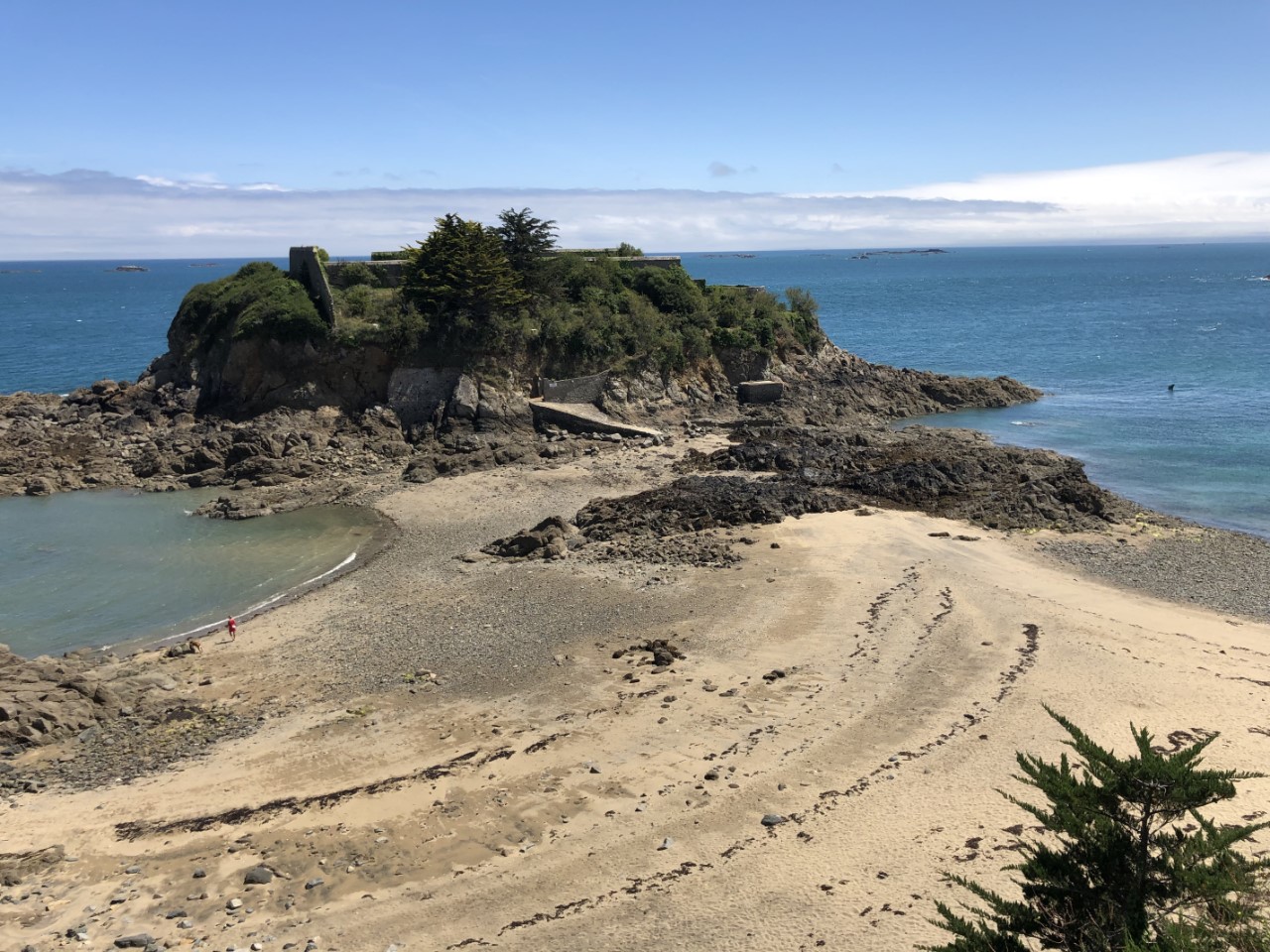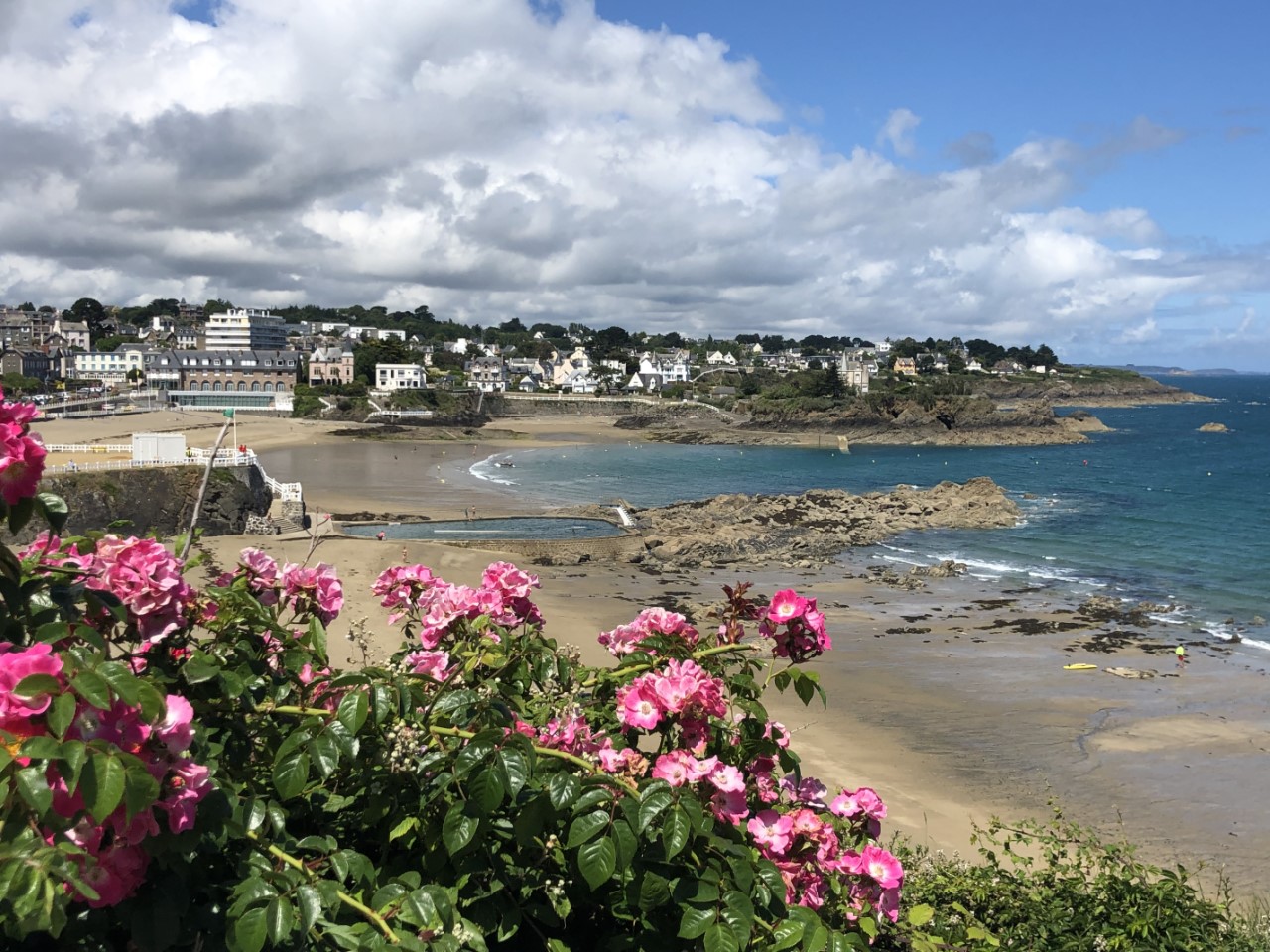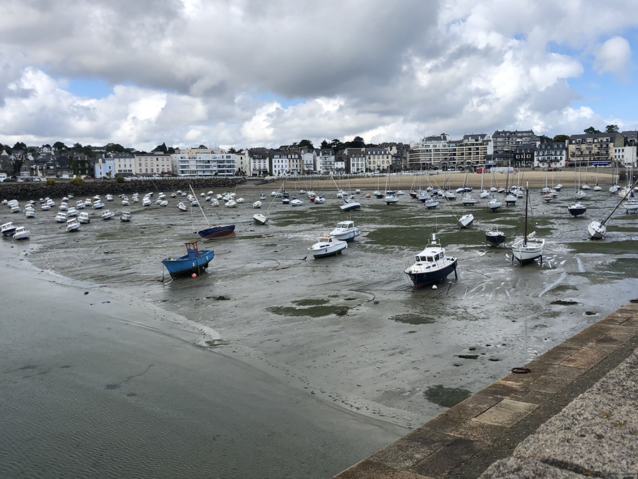 Om 6 uur ging het wekkertje. Snel aankleden en de lijntjes los. De stroming staat perfect, alleen laat de wind het weer eens afweten. De weinig wind die er stond, hadden we ook nog eens tegen. We hebben de motor in de overdrive gezet, maar we gingen te snel. Dan komen we met het laagste waterpeil aan in de haven en dat was ook niet de bedoeling. Dus de overdrive ging er af en we zijn iets langzamer varen. We werden weer keurig opgevangen in de haven en naar een box begeleid en opgevangen door de havenmeester. We hebben snel de Just afgesloten en zijn naar een ochtendmarkt gelopen voor mosselen en wat andere boodschapjes. Maar helaas er waren geen mosselen, alleen hele kleintjes en dat vond Marianne zielig. Via een kustpad met mooi uitzicht zijn we naar de haven gelopen. Het was bijna langs dezelfde route, zoals we een paar uur eerder hadden gevaren. Terug op de Just hebben we alle wasgoed verzameld en geprobeerd een lege machine te vinden. Bij de tweede poging hadden we geluk. Er werd ook nog een verrassingspakketje langsgebracht. Een leuk rood tasje met daarin wat kortingsbonnen, een plan de ville en wat foldertjes. Maar wat eten we vanavond? Die mosselen blijven ons achtervolgen en Marianne had ook wel trek in lekkere patatjes. We hadden in de middag al een leuk Frans tentje gezien, waar we met een omweg langs andere restaurantjes heen zijn gewandeld. Een prima keus, lekkere mosselen en Franse krokante frietjes. Morgen strandweer?