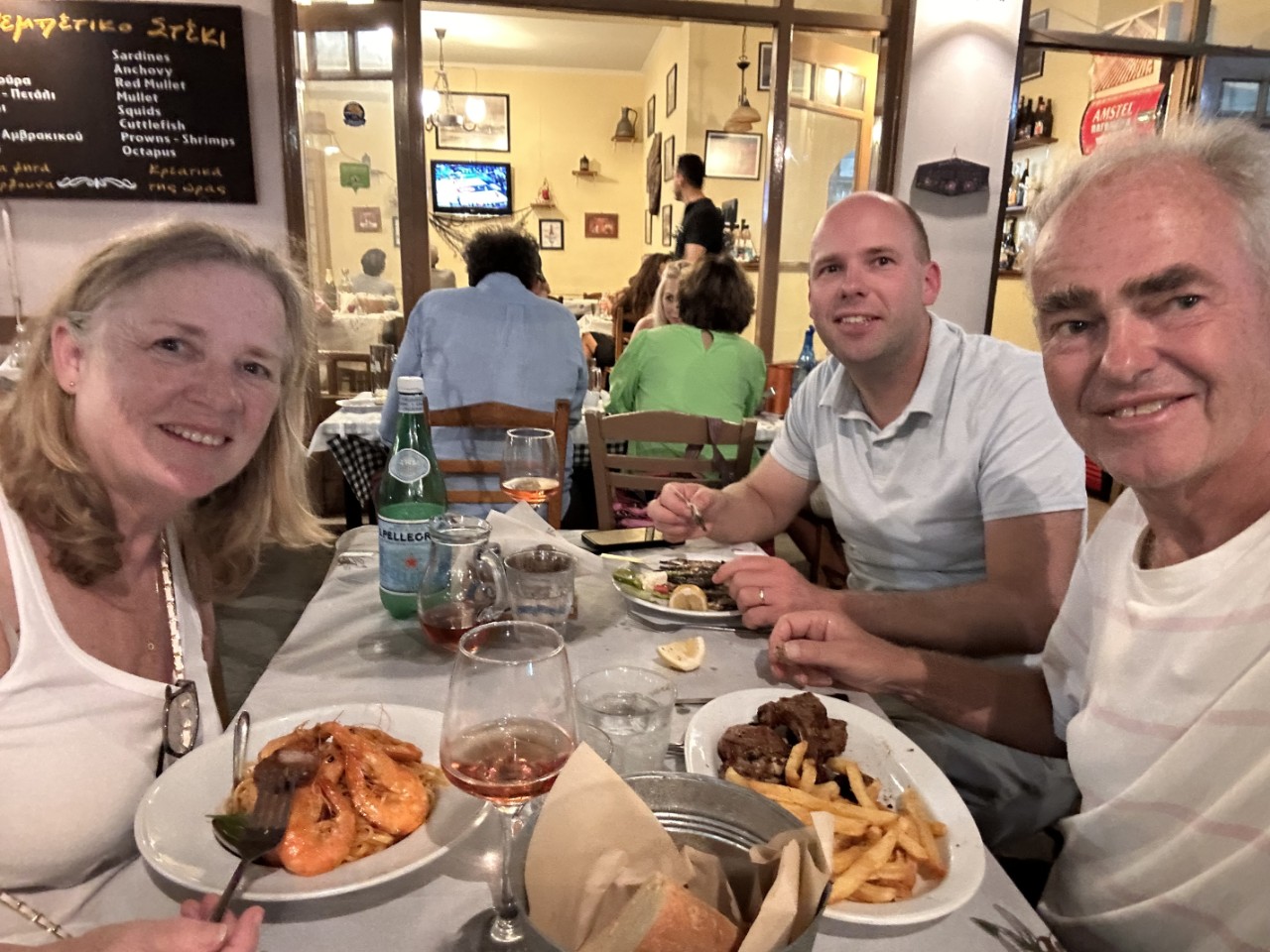 We hebben wat te vieren, dus ik haal een paar baklava’s en lekker frisse ijskoffie. We krijgen vandaag een gast aan boord, dus we moeten de nodige proviand ook nog aanvullen. Eindelijk kunnen we in relaxstand. Dat is wel nodig, want het is bloedje heet vandaag met geen zuchtje wind. In de namiddag is het tijd voor een lekker ijsje bij onze favoriete ijssalon op de kade.