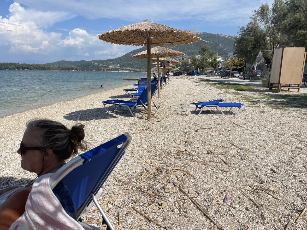 Marianne gaat intussen lekker naar het strand. De gemeente heeft rieten parasols en ligbedjes geplaatst, die gratis te gebruiken zijn. Voor mij nog klusje vijf: het bijbootje schoonmaken. De bovenkant gaat snel, maar het gedeelte wat onderwater heeft gelegen, is flink aangegroeid met schelpjes, groene sliertjes en vuil. Bijna twee uur ben ik met die bodem bezig om het schoon te krijgen. Alles nog even flink afspoelen met zoetwater en het bootje voor een paar uur op het voordek laten drogen. Samen met Marianne vouwen we het bijbootje tot een klein pakketje en ook die ruimen we op in een achterkajuit.