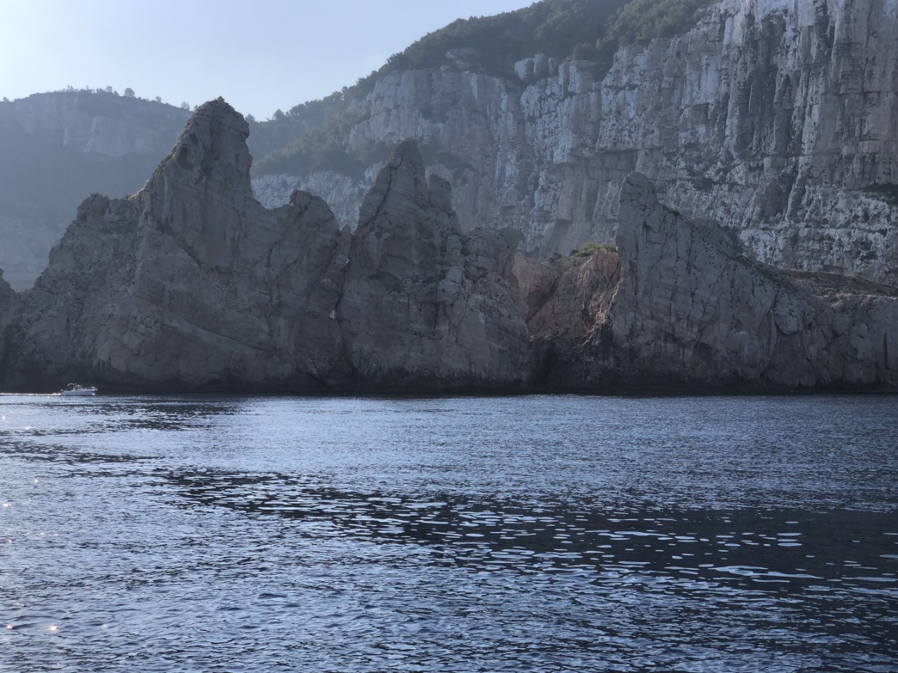 In de middag tijdens de siësta zijn we met het bijbootje langs de rotsen gevaren en hebben we gekeken waar er een aanleg mogelijkheid is voor de dingy, als we later op de dag boodschappen willen halen. Marianne vindt het verstandig om het motortje van de bijboot af te halen, omdat het redelijk druk is bij de landingsplaats. Bovendien is het maar een klein stukje peddelen.