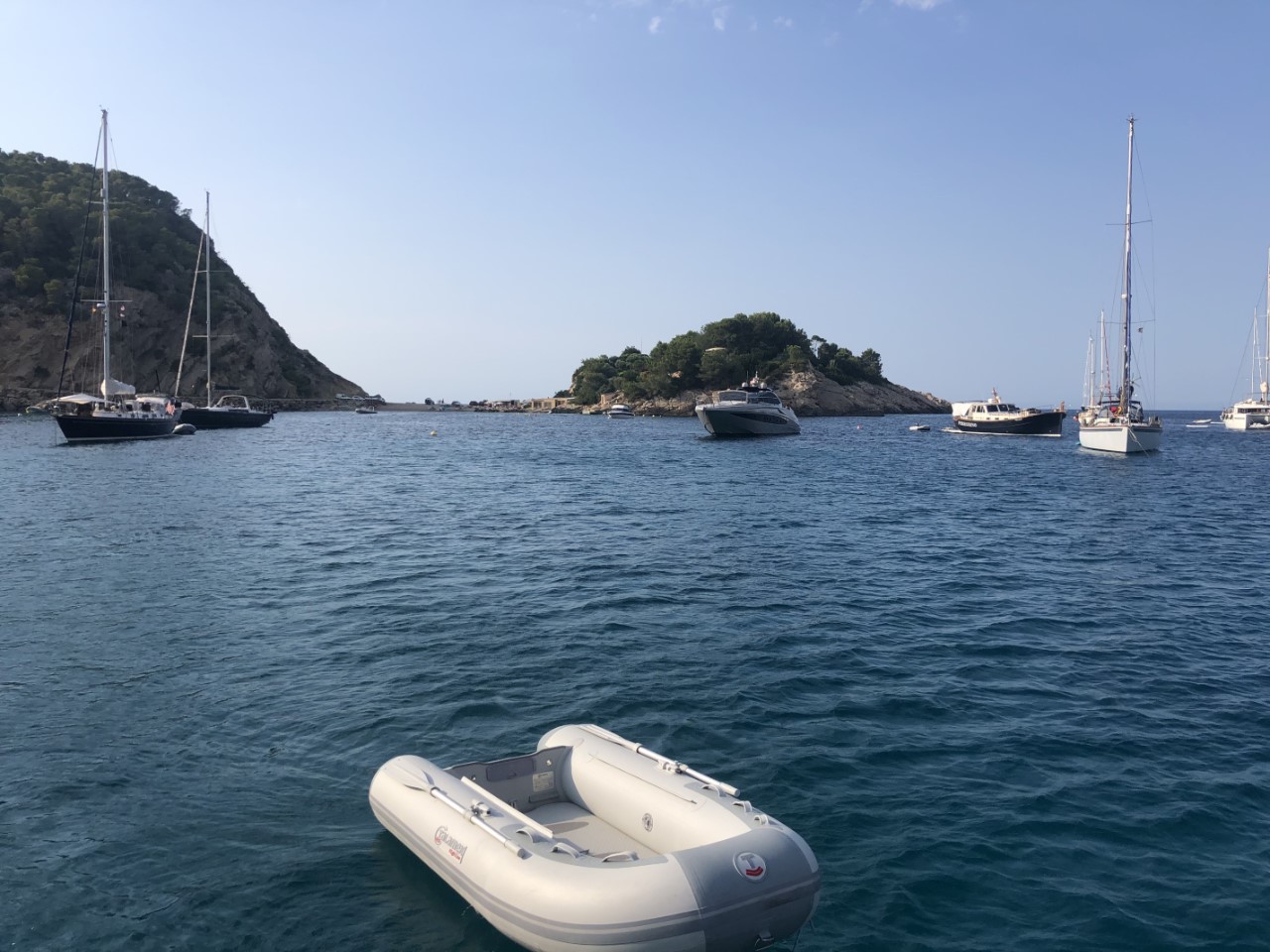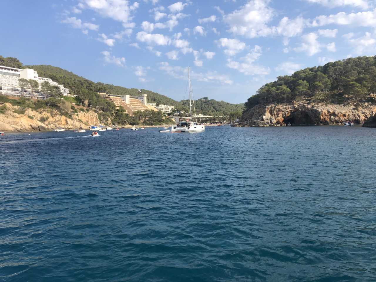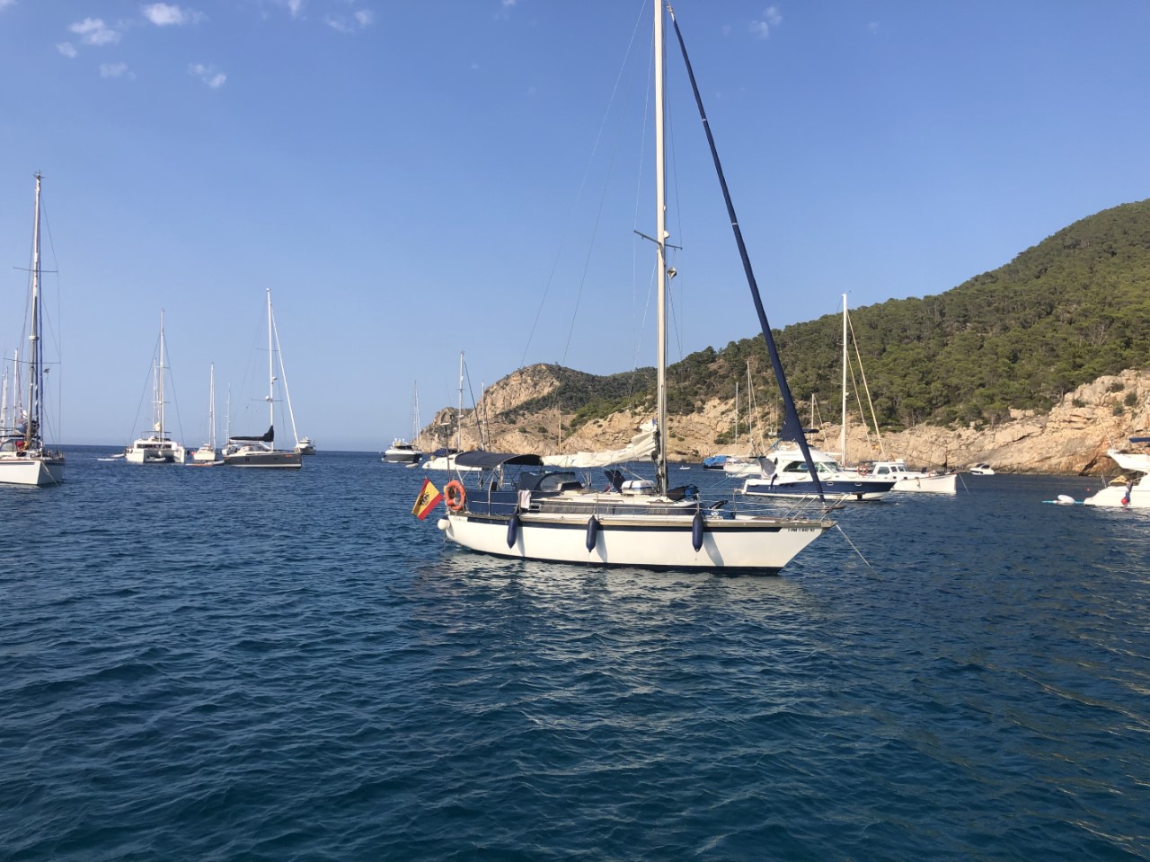 Alweer is de tocht prachtig met een kustlijn waar je naar kan blijven kijken. Ook komen we verschillende baaitjes tegen, maar omdat we nog steeds geen internet hebben kunnen we ze niet opzoeken hoe de situatie is. Het invaren in Dartmouth is supermooi, maar de invaart van Sant Miquel kan dat evenaren. Ook hier is het goed uitkijken, waar je het anker laat zakken, maar bij de tweede poging en met wat aanwijzingen van de Tiramisu vinden we een mooi plekje. Tijd voor de eerste duik om af te koelen. Natasja en Marcel komen niet veel later zwemmend onze kant op voor een drankje.