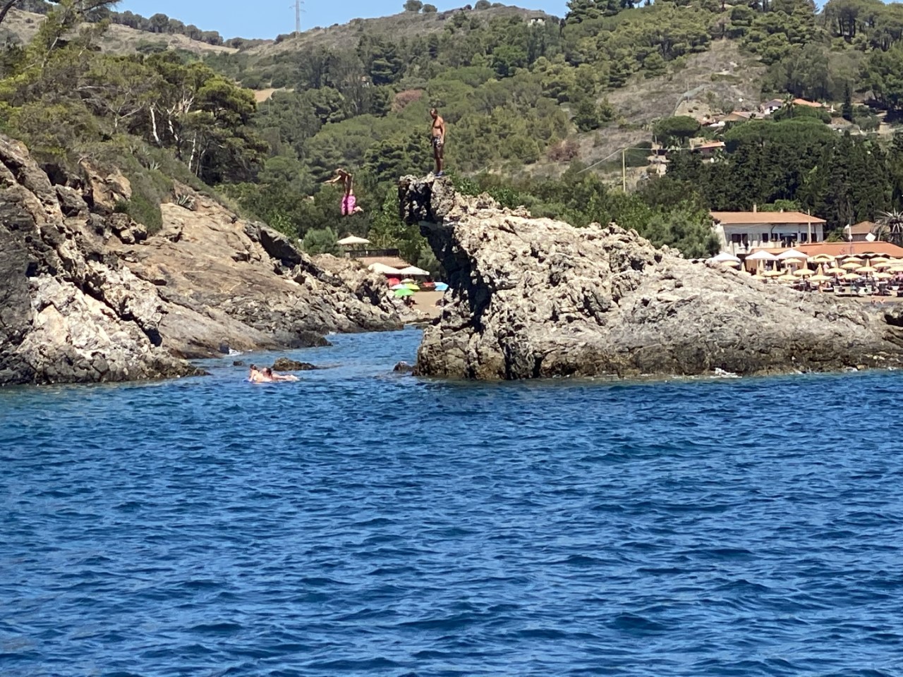 We varen direct met het bijbootje naar de Azzurro haven, waar het even zoeken is voor een ligplaatsje voor de bijboot. Die vinden naast een grote rib van de Guardia Costiera, de kustwacht, veiliger kan toch niet. Bij de plaatselijke VVV direct aan de kade, halen we wat info over Elba.