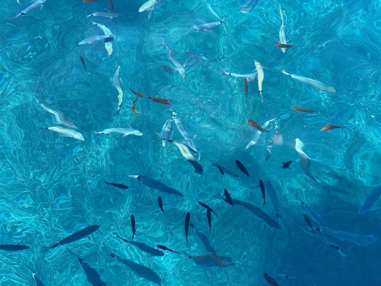 Het bijbootje ligt nog op z’n plekje, dus we varen terug naar de baai van de piraat Barbarossa, die info kregen we bij de VVV. De Just blijkt niet ingenomen door piraten en ligt nog achter z’n anker. De rest van de dag is het verkoeling zoeken, meestal onder de douche op het achterdek. Af en toe een duik in het 30 graden warme water rond de Just, waar nog steeds kwalletjes rondzwemmen.
