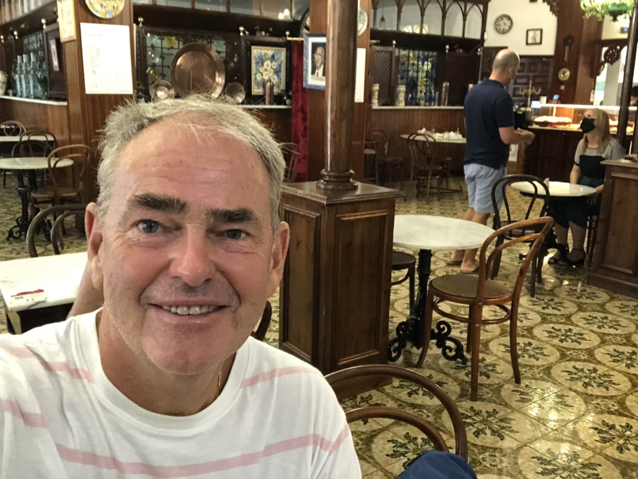 Het is een lange weg naar het restaurant, maar wel voor mij een mooie. Helemaal langs de haven met de ene boot nog groter dan de andere. We komen aan bij een grote shoppingmall, waar ook ergens in de buurt het restaurant moet zijn. Daar hebben we maar eerst een verkoelend drankje ergens gedronken, want we kunnen met geen mogelijkheid dat restaurant vinden. Als laatste poging proberen we te bellen, maar de telefoonlijn is afgesloten (covid faillissement?). Bij het tentje waar we zitten zien we ook leuke tapasgerechtjes voorbij komen, dus bestellen we daar maar het één en ander.