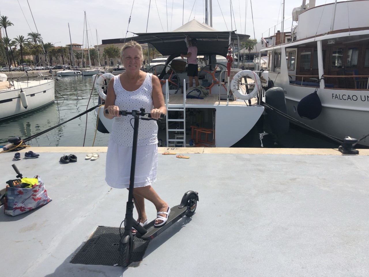 Aan boord komt weer de zeer lang lopende vraag “willen we een stepje?” Ik stel voor om er eentje te kopen om te proberen of we het iets vinden, en zo ja kunnen we er altijd in Valencia nog eentje kopen. Marianne blijft aan boord en ik loop naar El Corte Ingles, waar ze in de aanbieding zijn. Met een te grote doos kom ik terug op de Just. Even een paar schroefjes indraaien en we kunnen de step proberen op de kade. Marianne is in haar nopjes en ik ook. Ik heb altijd begrepen, dat de batterij voor de eerste maal goed opgeladen moet worden. Dus voor onze vier-kilometer-lange wandeling en terug naar een restaurantje, dat we hebben uitgezocht, blijft de step aan boord.