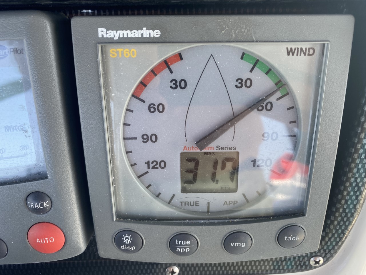 Tegen de middag bouwt de wind steeds meer op. Is het eerst rond de 20 knopen, later wordt dat al snel 25 knopen. Toch zijn er veel boten die uitvaren en net zoveel, die de baai invaren en een ankerplekje in de baai zoeken. Met veel wind is dit altijd een uitdaging. De windmeter geeft om 15:00 uur een constante wind van 28 knopen aan en er zijn uitschieters boven de 30 knopen.
