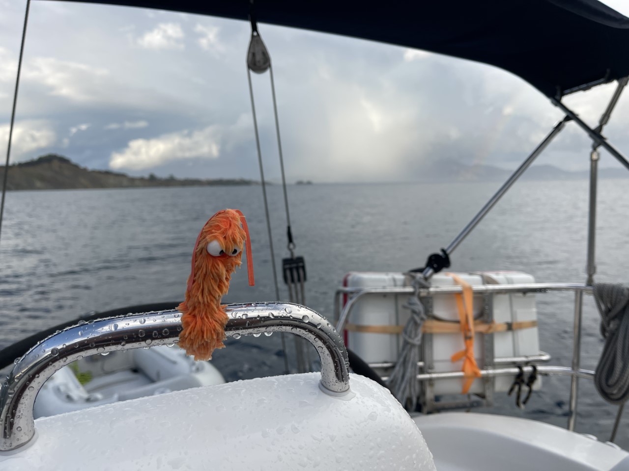De rest van de dag doen we weinig, een beetje lezen, internetten en de bimini eraf gehaald voor de verwachte storm. Ik ontdek dat er iets aan het stiksel mankeert en doe nog een kleine reparatie eraan. Om 14:00 verwachten we al dat de wind gaat toenemen, maar daar blijkt geen sprake van.