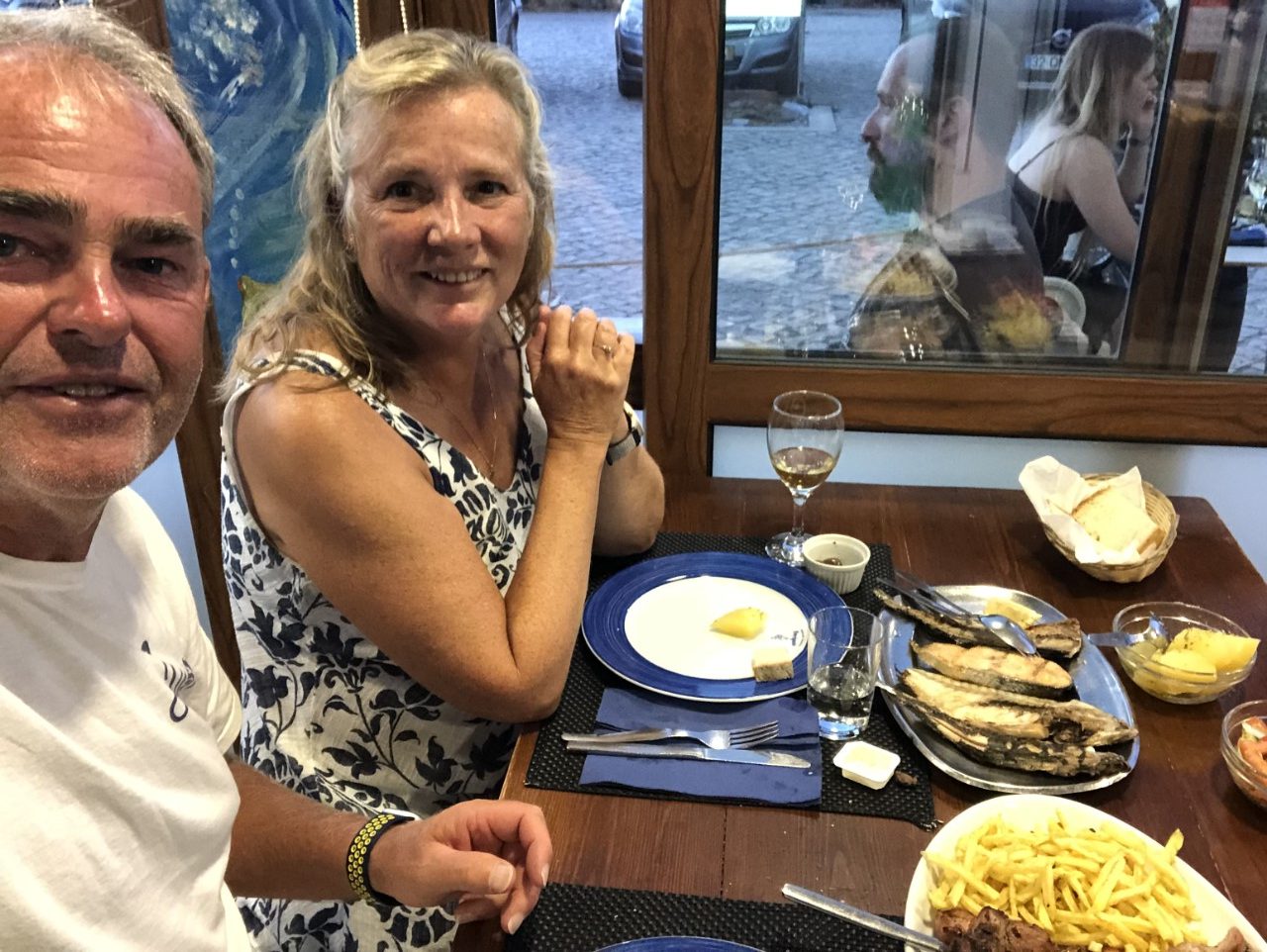 We hebben in de kuip ons uitgebreide zondagsontbijtje/brunch genuttigd en plannen besproken over volgend seizoen. In de middag zijn we naar het strand gewandeld voor wat verkoeling. We kwamen op een mooi fijn zandstrand. We namen gelijk een duik in de hoge golven in een stukken warmere oceaan. Op de heenweg hadden we een affiche gezien van een “all you can eat” restaurant vlakbij de haven, daar zijn we op de terugweg even langs gelopen. De recensies waren heel goed en de prijs heel laag, dus de keus was snel gemaakt en we reserveerden alvast een tafeltje.