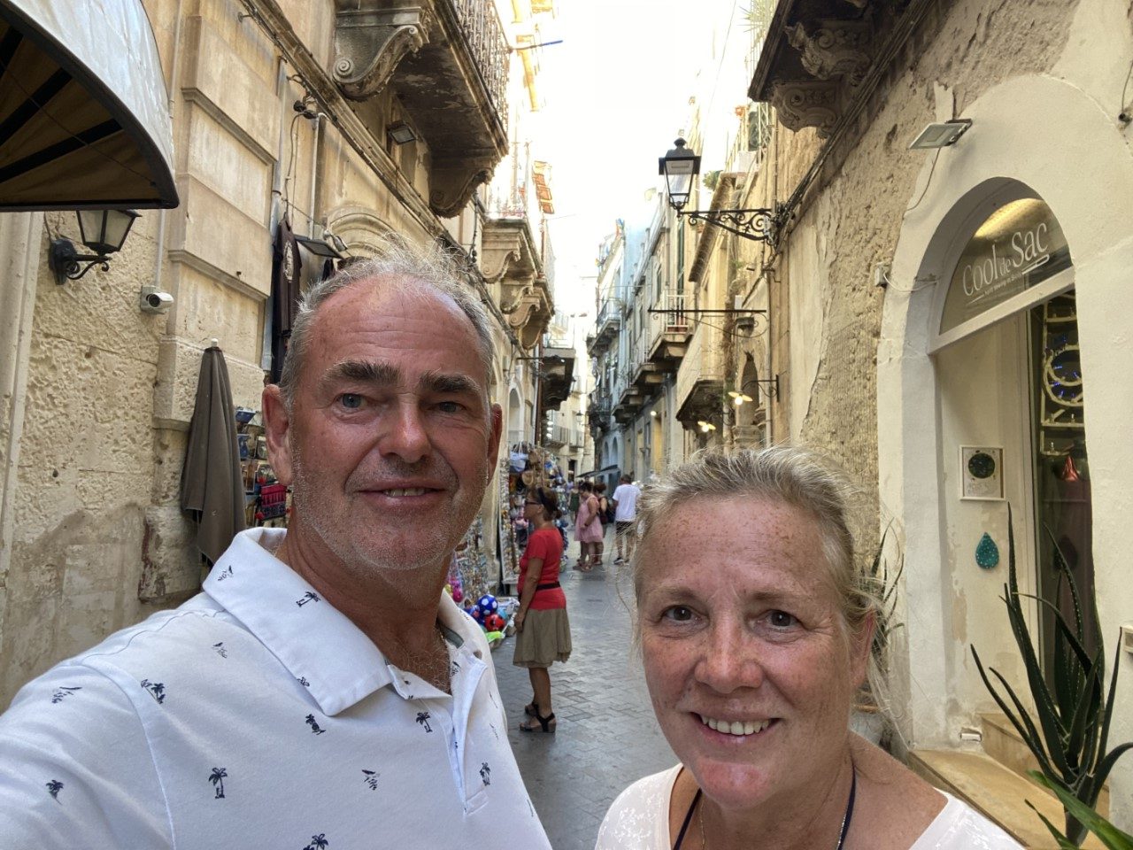 Na onze Franse maaltijd “Salade Niçoise” hebben we een kleine wandeling gemaakt door wat straatjes. Onze eerste indruk is gezellig, veel leuke winkeltjes en een lekker eerste ijsje bij de Gelateria. Morgen zijn we wat fitter en uitgeslapen en maken we een grand tour door Siracusa.