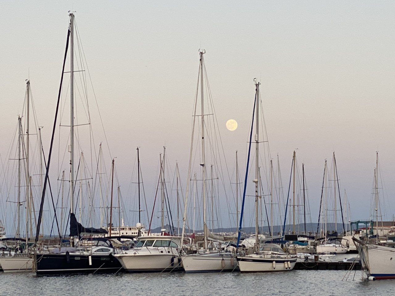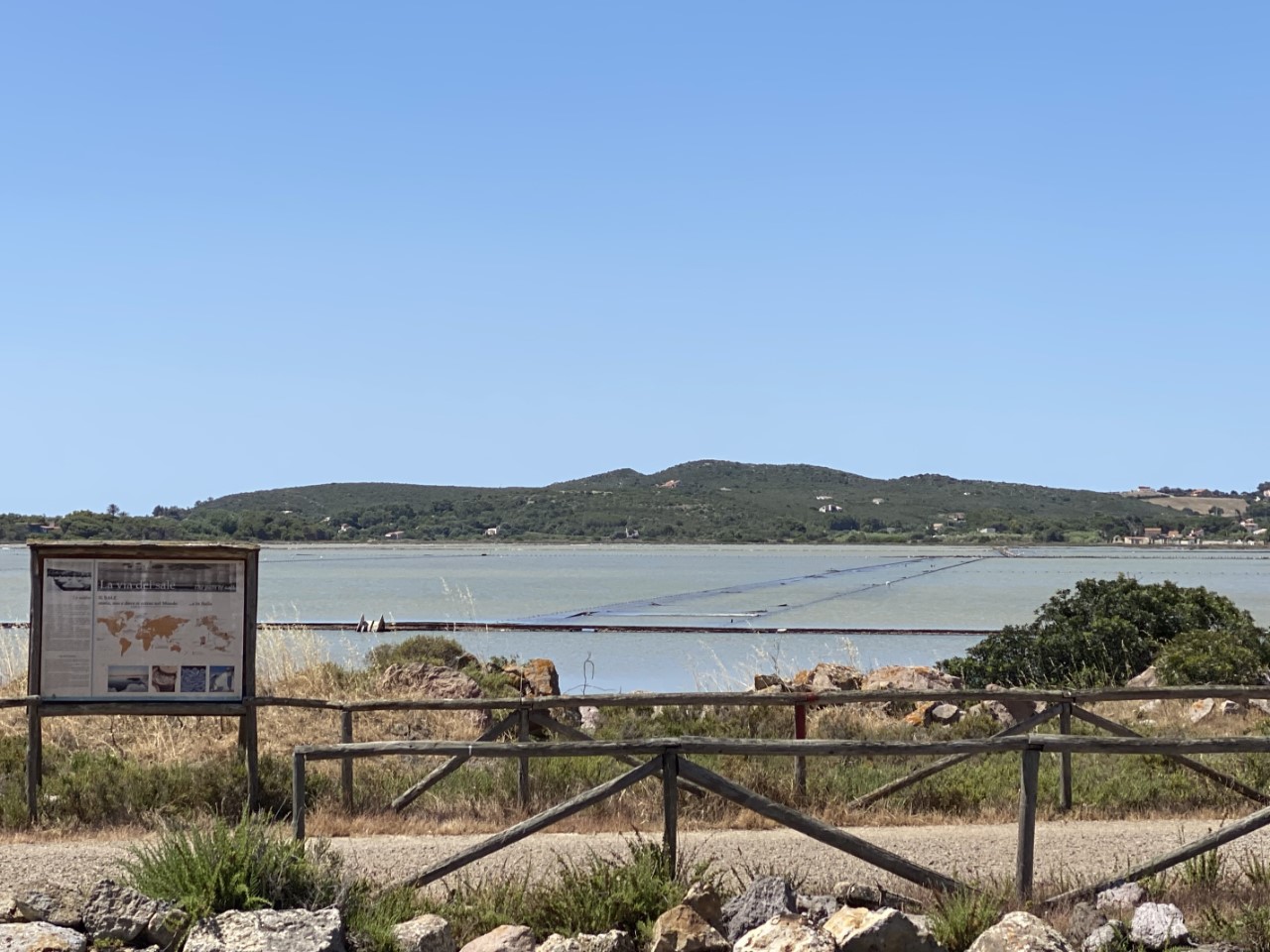 Tijd voor ons eerste Italiaanse “tasse di caffè”. Vanmorgen tijdens het zoeken naar een bakkertje heb ik een leuke, oude, drukke Caffetteria gespot. We drinken er een lekkere espresso macchiato en een cappuccino. Na wat rondwandelen komen we uit bij een groot zoutmeer, Il Sale, aan de rand van het dorp. We zoeken de supermarkt op, waar we wat boodschapjes halen. Het zonnetje brandt flink en we zoeken wat verkoeling op de Just onder de bimini.