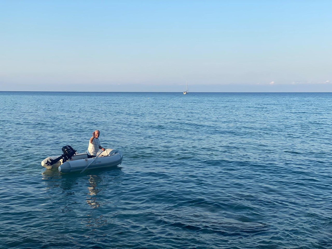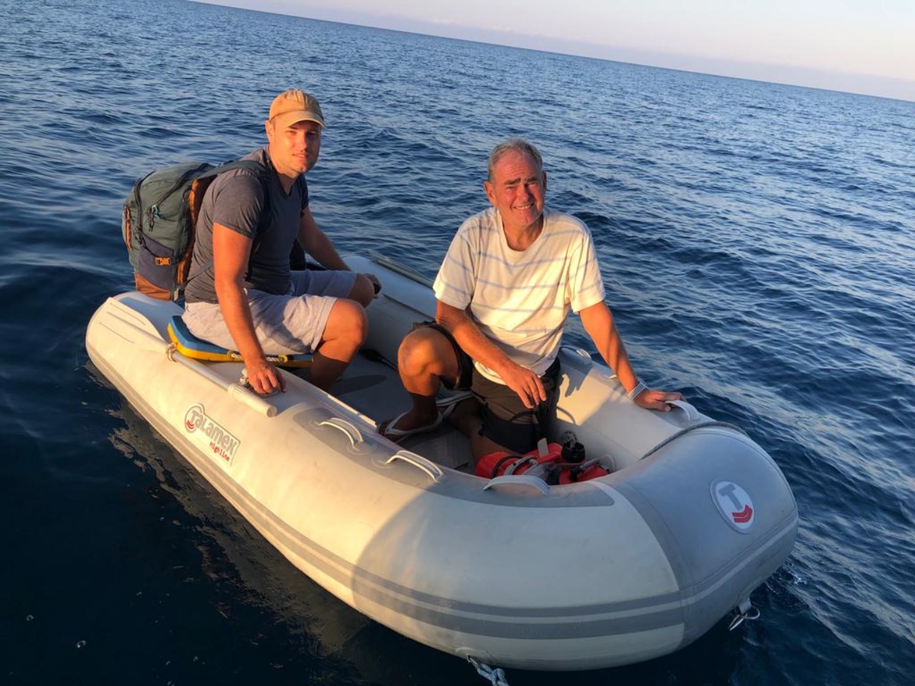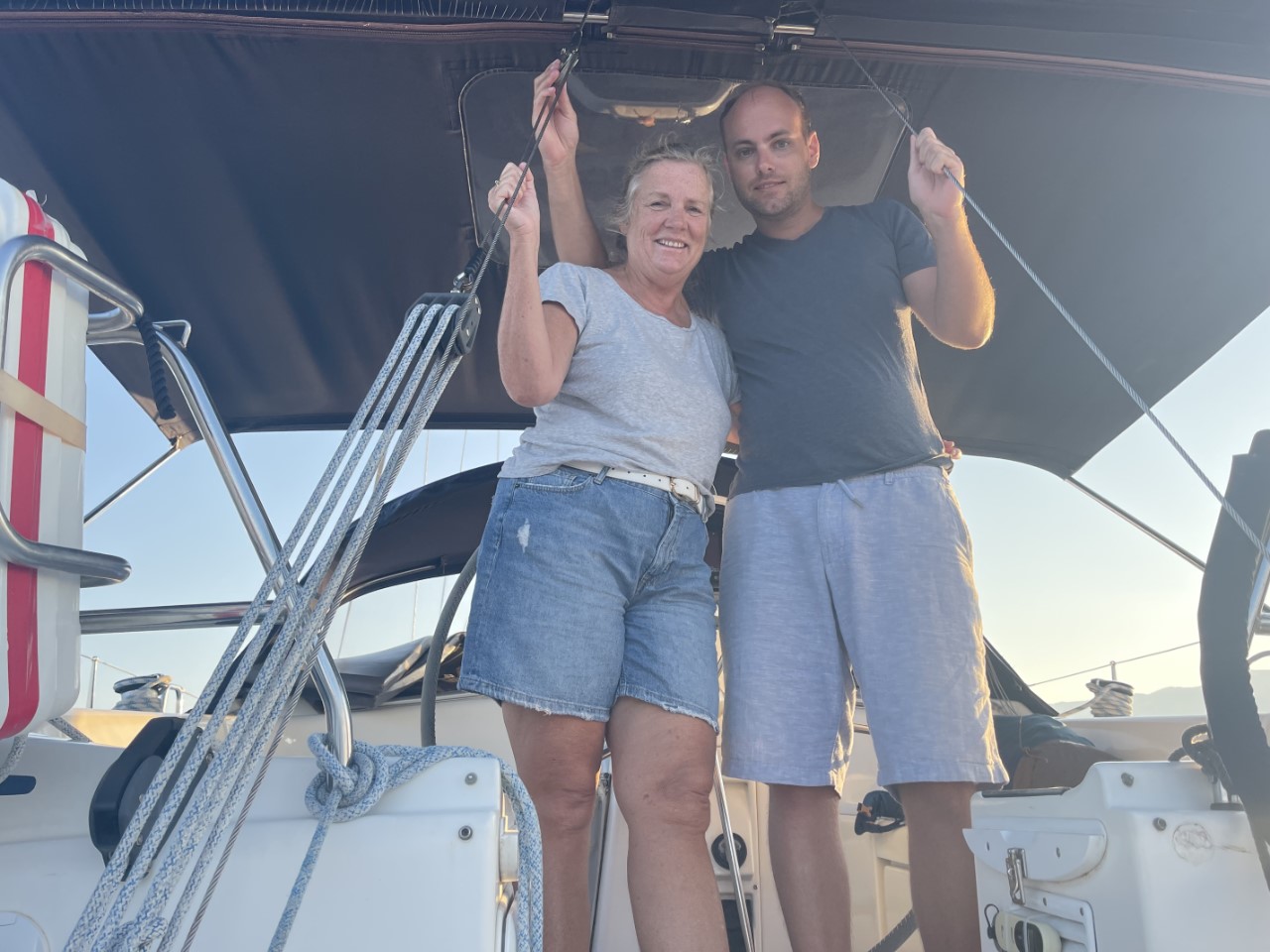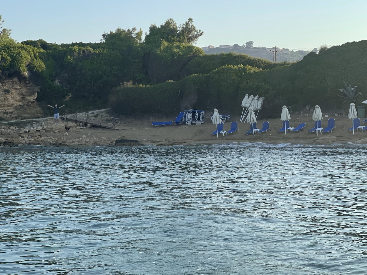 Het is een kleine twee uur varen naar Ammes Beach. We zijn daar ruim voor 08:00 uur. Marianne neemt afscheid van Daniel en ik breng hem met het bijbootje naar het strandje. Nog een paar keer zwaaien en daarna varen wij langzaam naar Spartia. Daar zoeken we een ankerplekje op. Ook deze keer hebben we tweemaal moeten ankeren. De zandsteenbodem is hier zo hard, dat het anker er overheen sleept.
