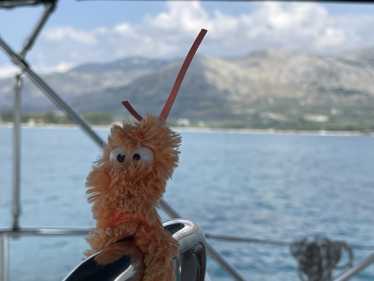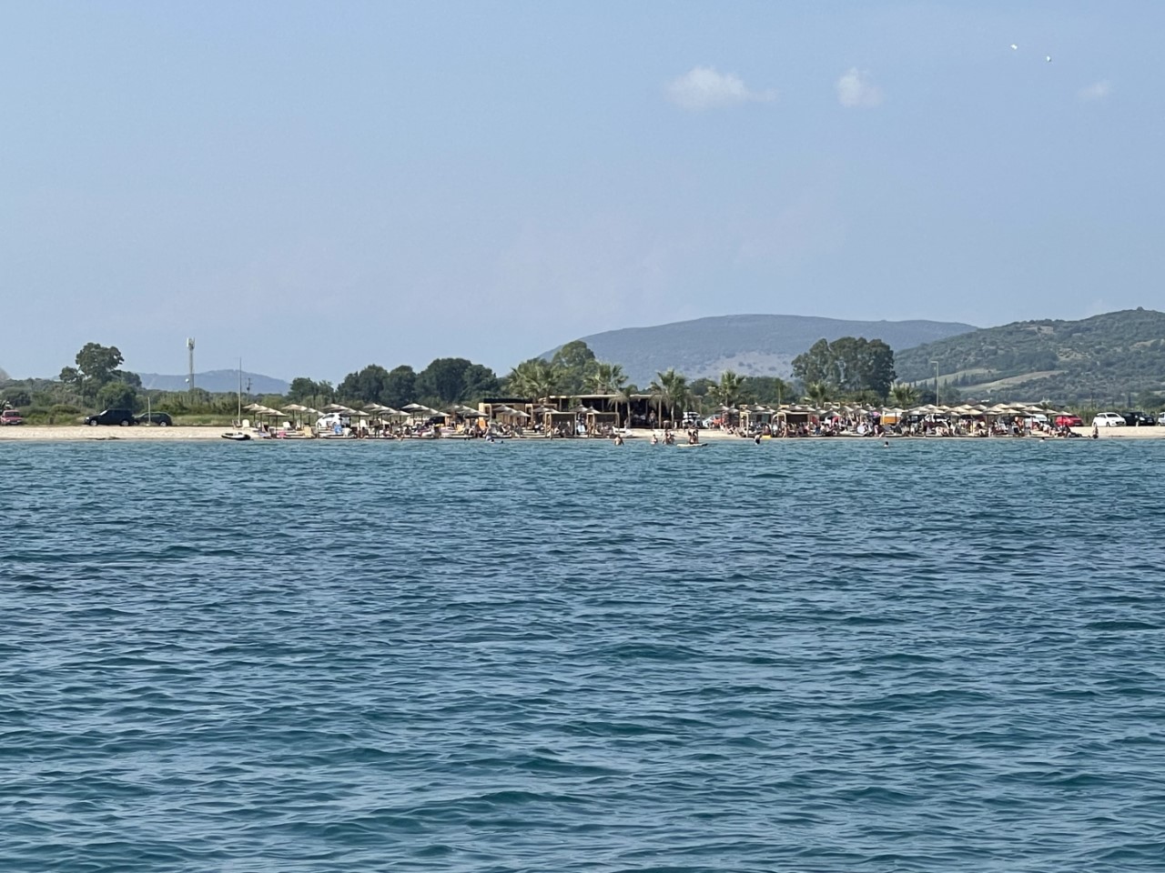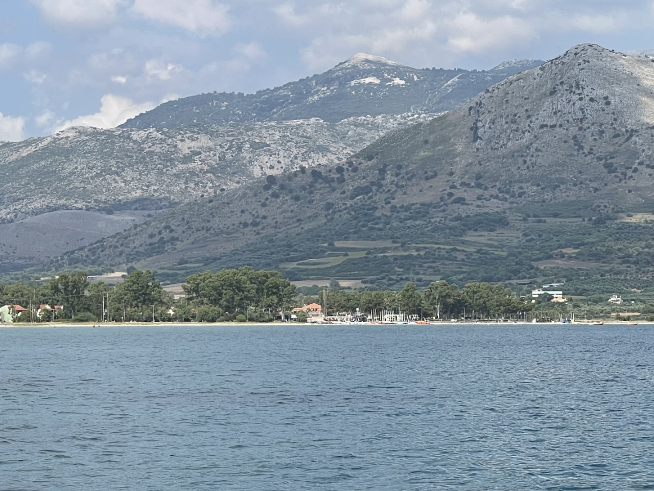 We verlaten deze internetarme baai en stomen op richting Palairos. Onderweg bekijken we op de Navily-app, nu wel met internet, waar we ons anker laten zakken. In eerste instantie willen we iets voor de haven van Palairos gaan ankeren, maar iets verder bij een heel langgerekt strand zien we een mooiere plek. Dus we varen de haven voorbij.