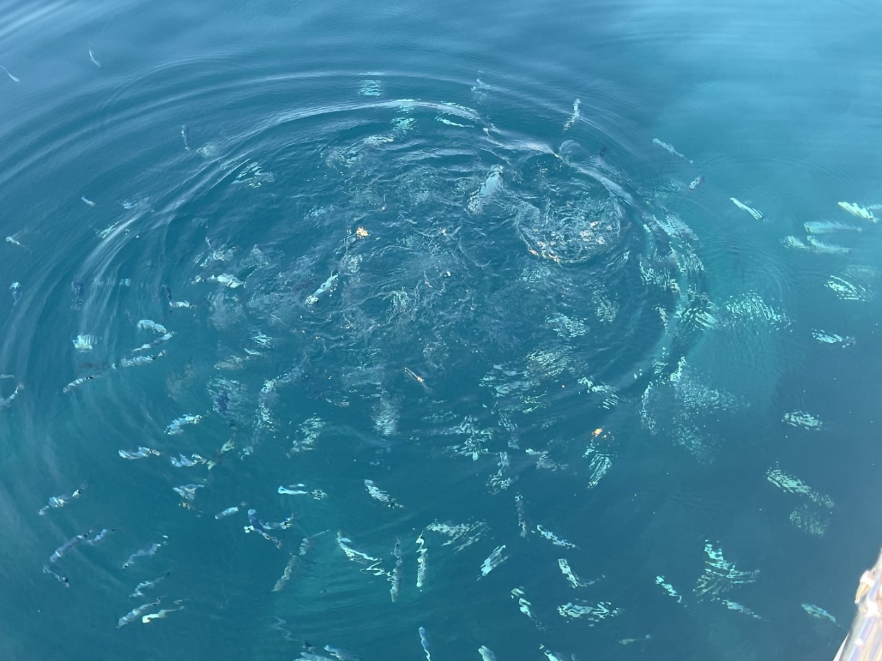 We gaan weer een mooie baai verlaten. Nog even de visjes voeren met wat oud brood, voordat we ons anker ophalen. We zetten onze koers vandaag naar het dorpje Gaios op het eiland Paxos.