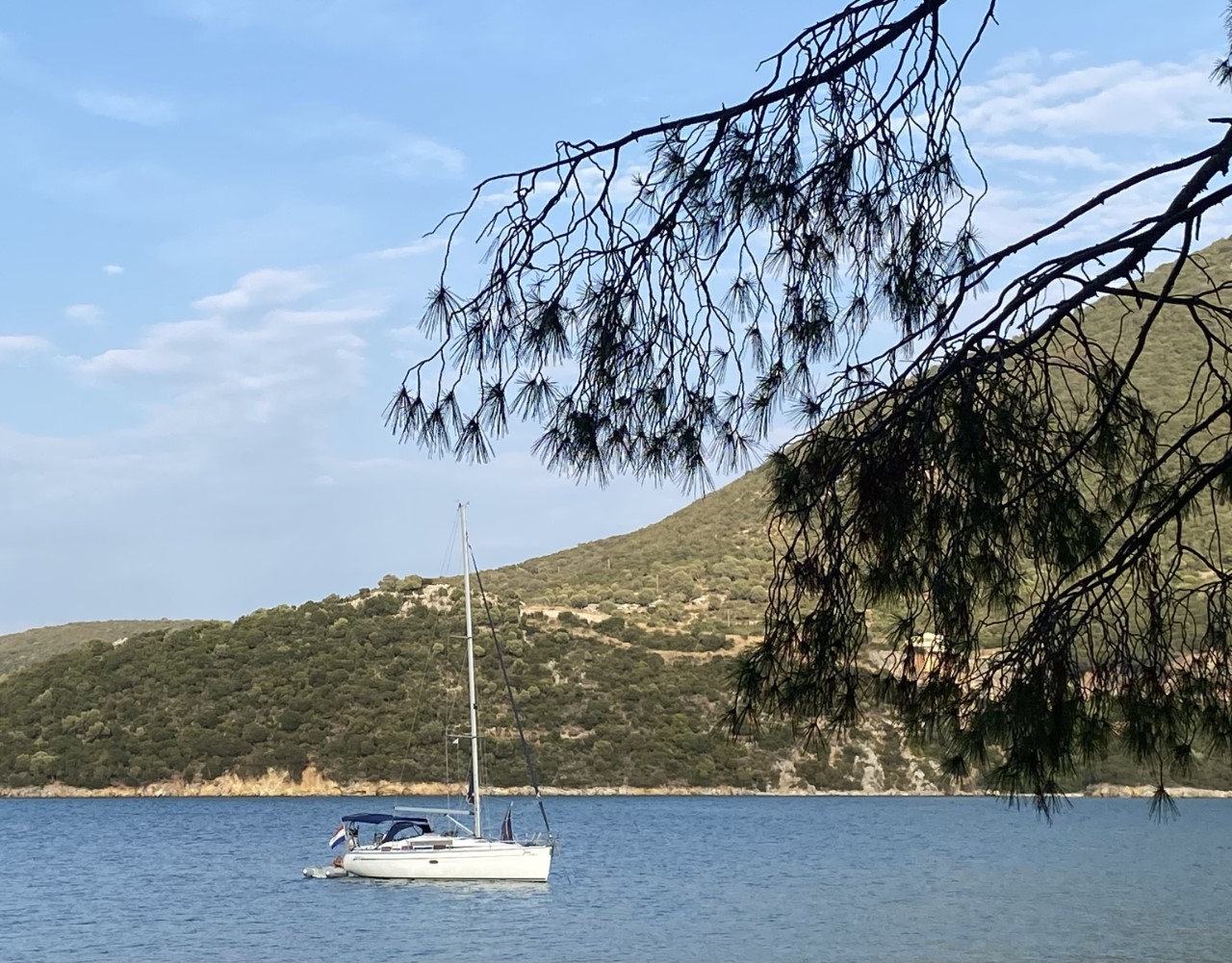 Na het ontbijt gaan we met z’n tweetjes nog wat boodschappen halen. We halen het anker weer op om naar de baai achter het kleine schiereilandje te varen. We zijn er binnen 20 minuten. Het is een mooi plekje met geen golfjes en we halen wat slaap in voordat we lekker gaan koken.
