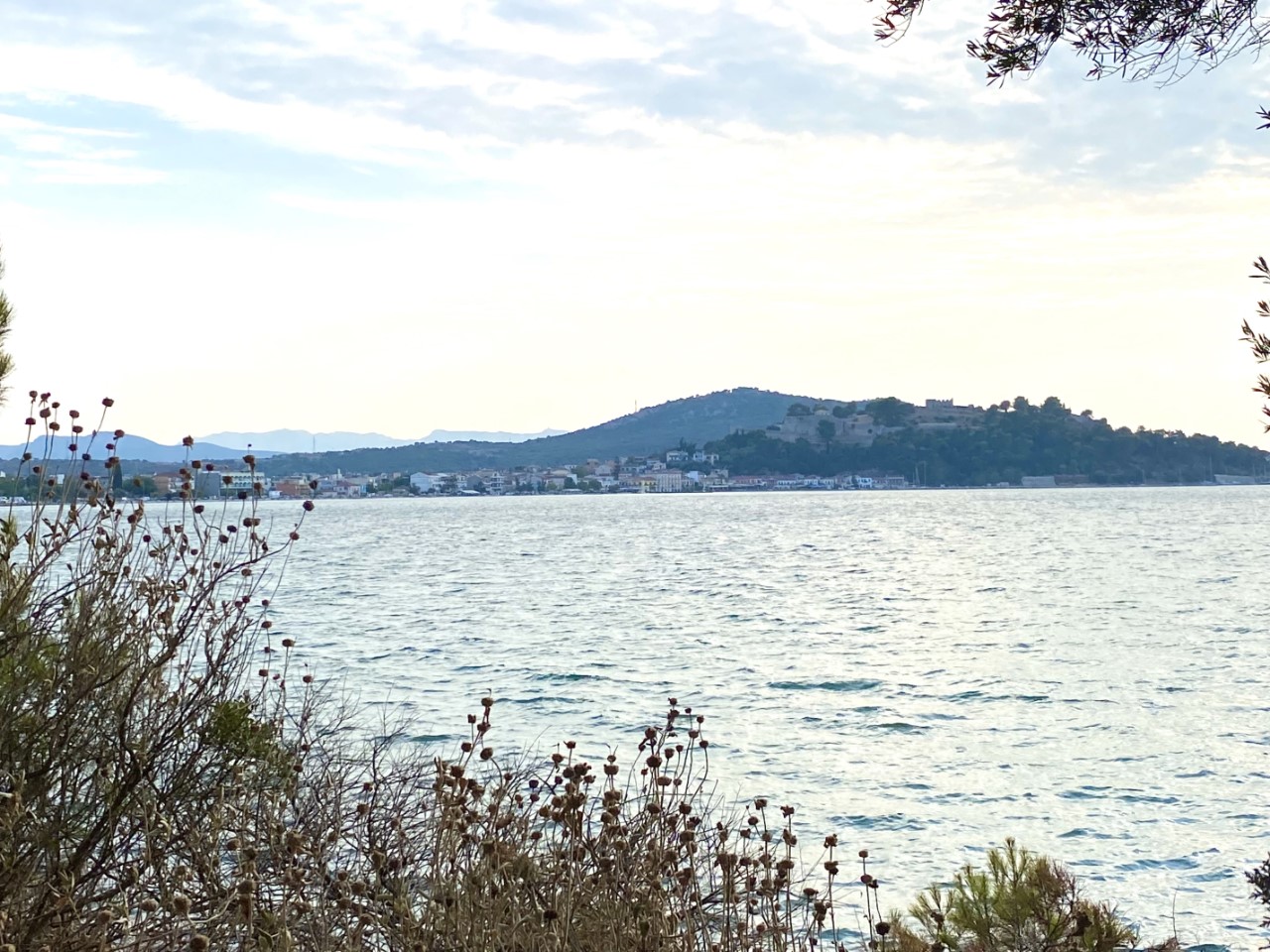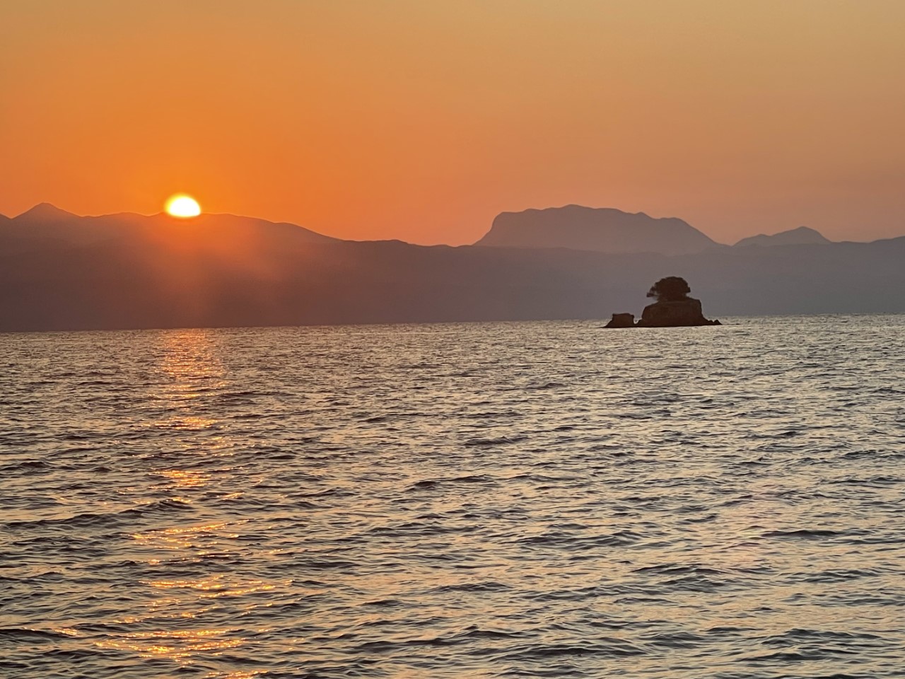 In de namiddag maak ik tijdens een rondje zwemmen om de Just de witte waterlijn nog maar een keertje schoon. Marianne gaat iets voor zonsondergang een wandeling maken over het schiereilandje en ik maak ondertussen de planning voor morgen. Dan gaan we het mooie turquoise water weer opzoeken. We willen wel de draaibrug van 10:00 uur halen, dus gaan we extra vroeg varen.