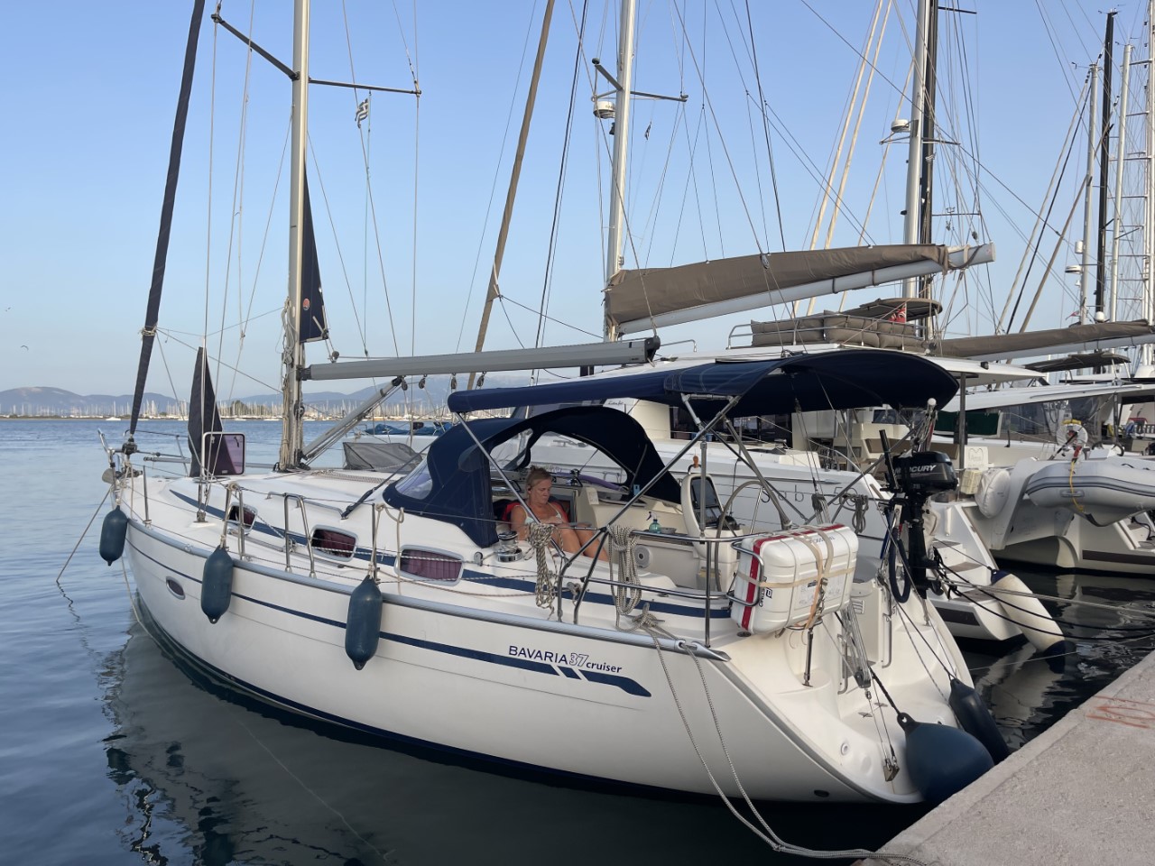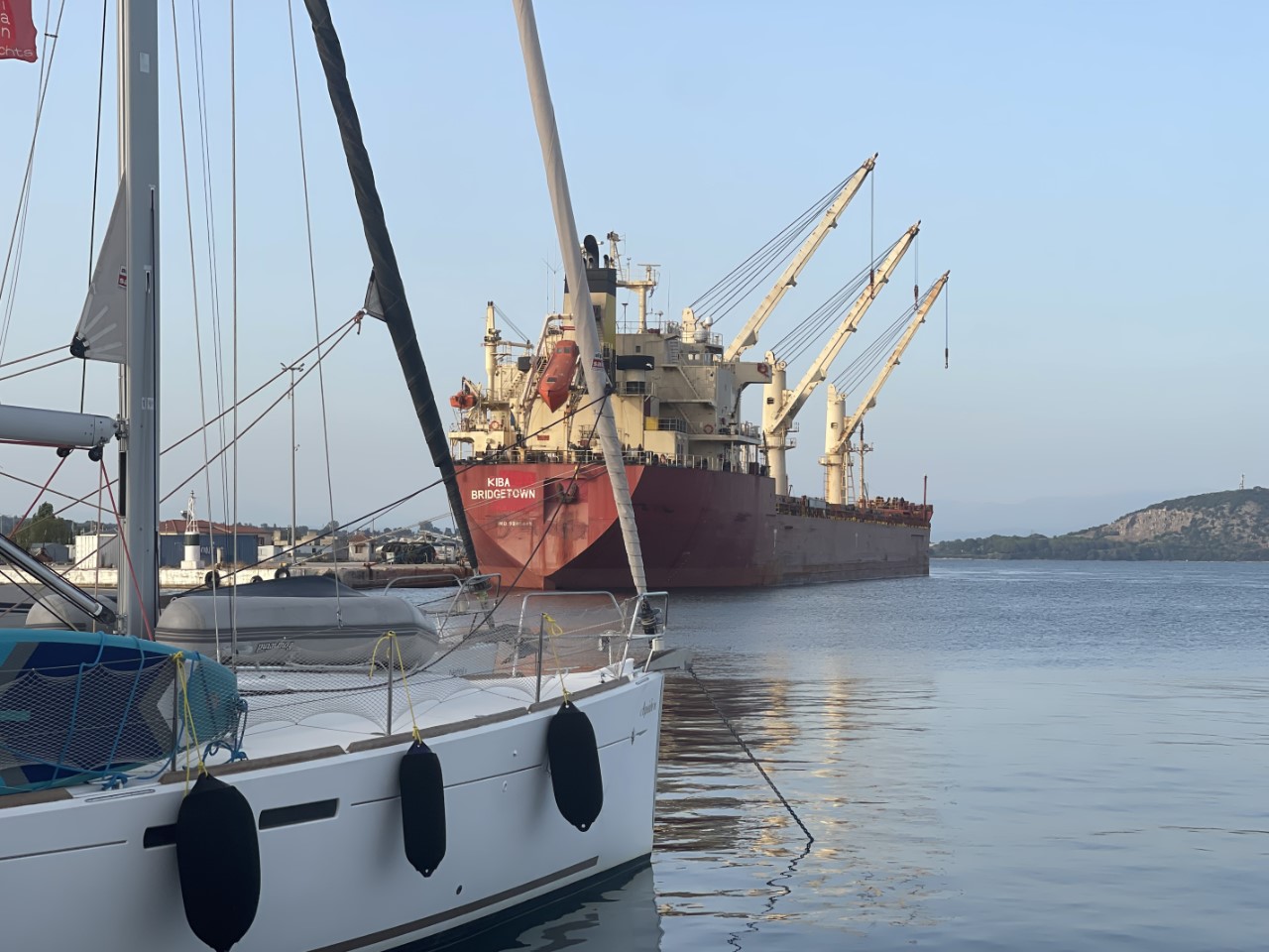 Ik geef het toe, ik ben vanmorgen een beetje onrustig. De reden is of we wel een mooringlijn kunnen oppakken aan de kade van Preveza. De vorige keer heb ik nog voor ogen. Ik zet de bimini weer op. Die moest er gisteravond om 22:00 uur nog er afgehaald worden, omdat Marianne op haar bucketlist had staan: “eens in je leven slapen onder een sterrenhemel”. Dat heeft ze volgehouden tot 01:30 uur, toen vond ze binnenslapen toch gezelliger. Ik hijs ook nog even het bijbootje op het voordek en we zijn klaar om te vertrekken uit deze bijzondere baai.