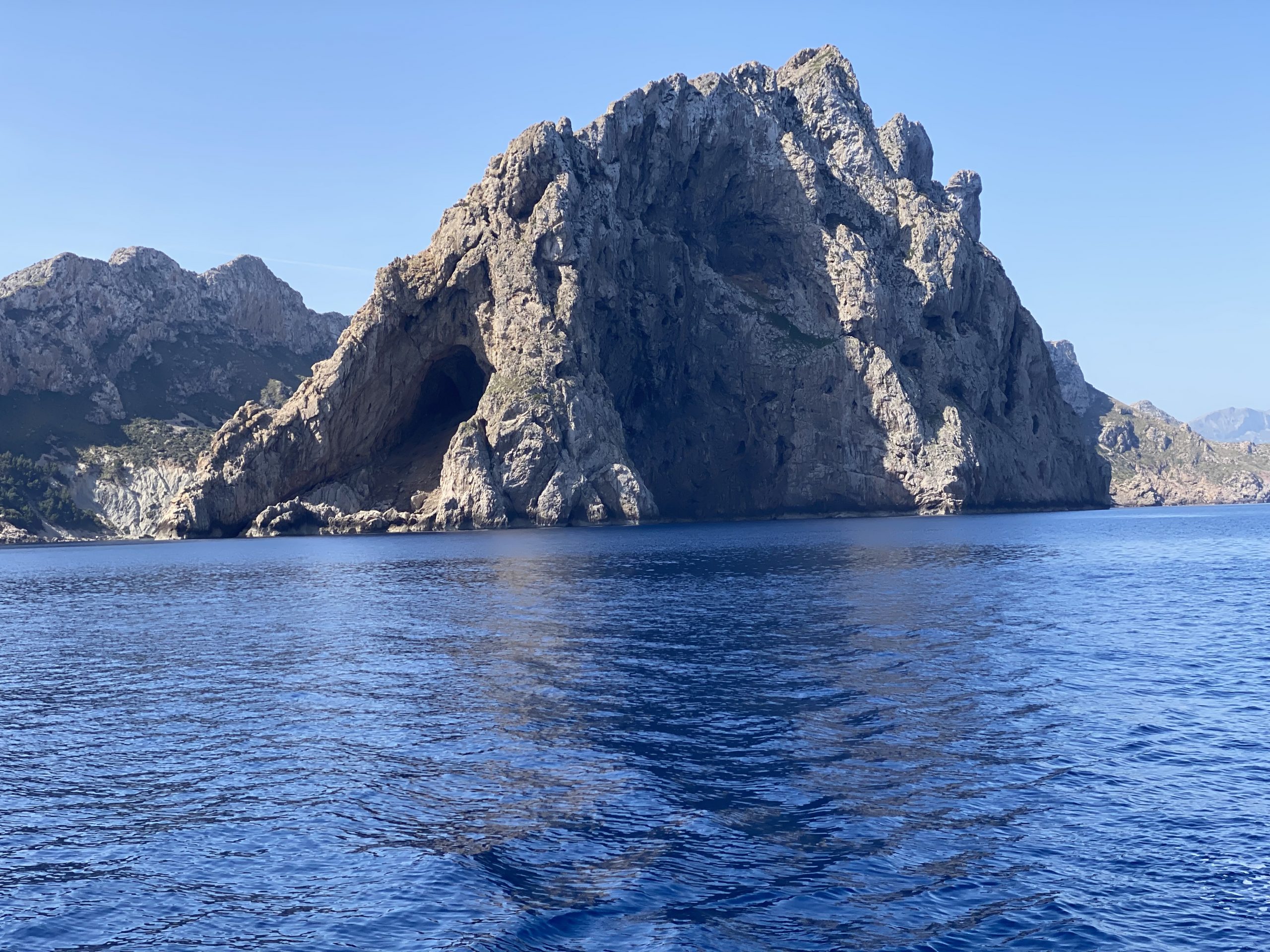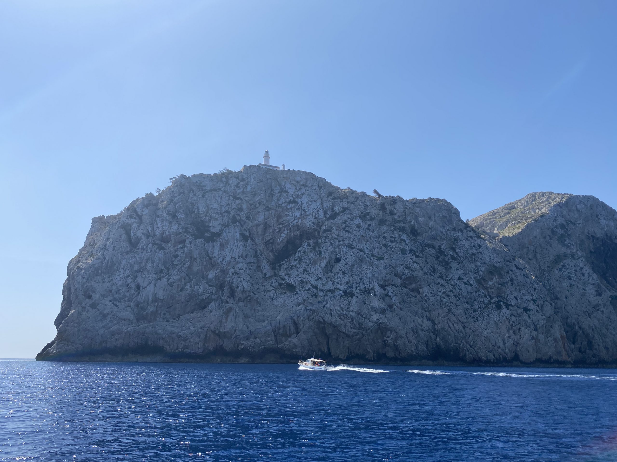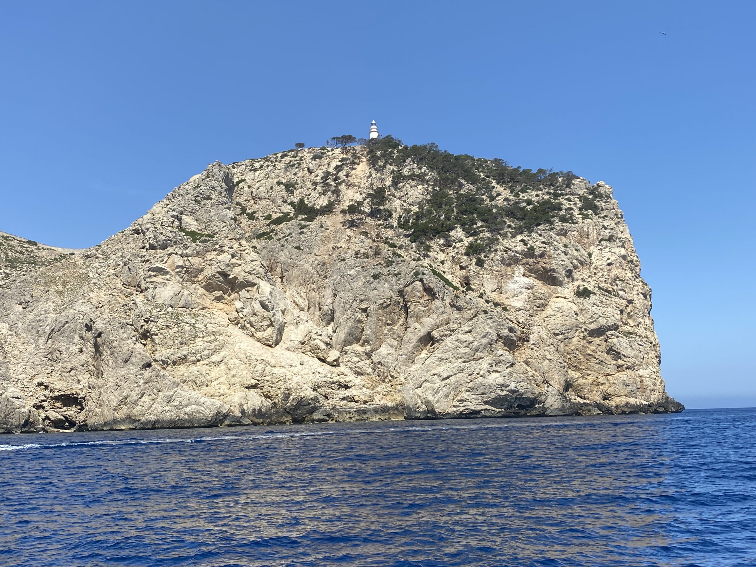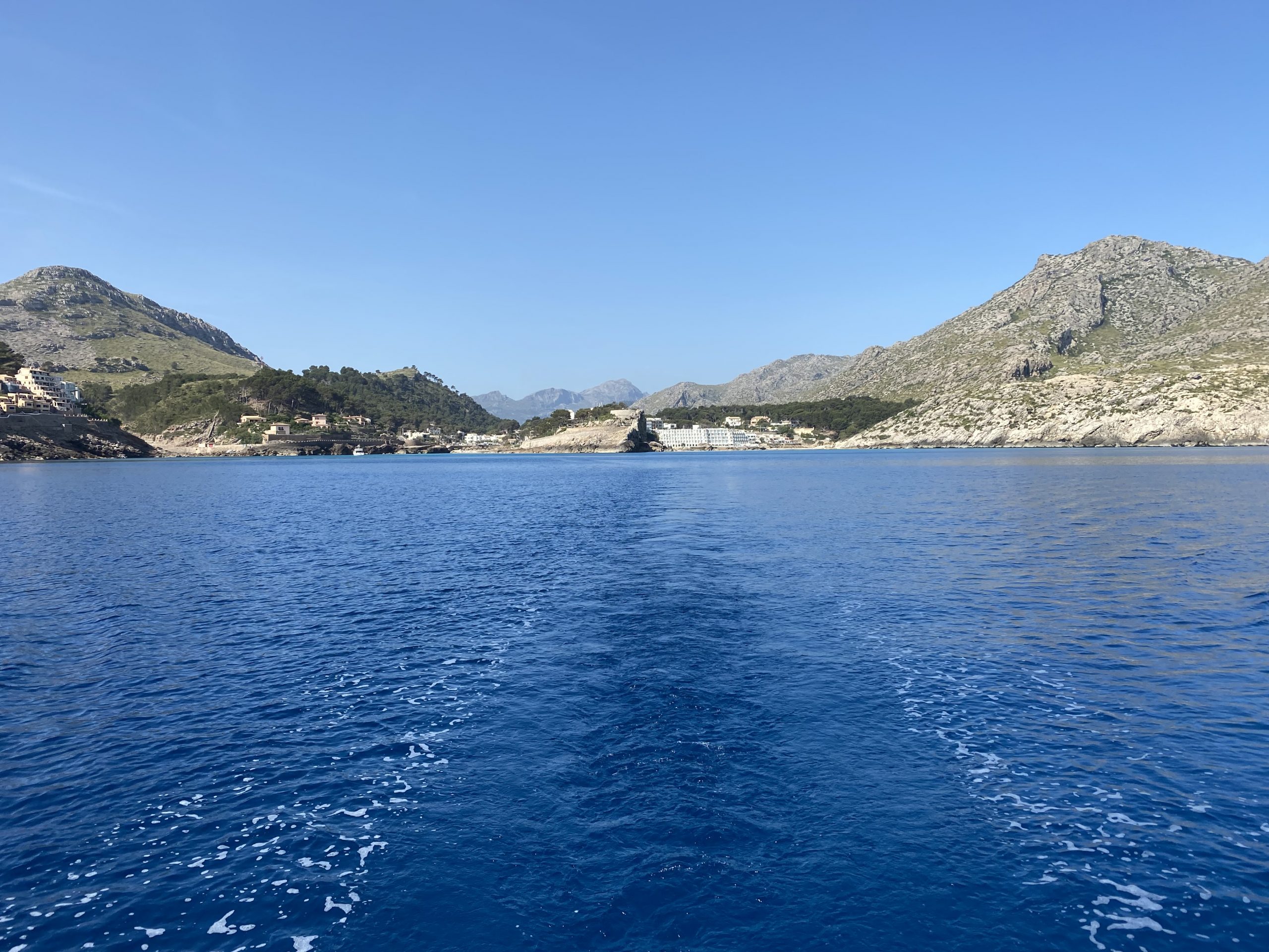 Wat een rustige nacht. We lagen achter ons anker en het leek wel of we op vaste wal stonden. Tegen 10:00 uur halen we ons anker op. We genieten tijdens de tocht weer van de mooie kustlijn en hebben naar diverse Cala’s, die we voorbij kwamen gekeken, maar we willen verder. Rond 11:30 ronden we het meest noordelijke puntje van Mallorca “Cap de Formentor” met hoog op die rots de vuurtoren. Nu is het een bijna rechte koers naar ons beoogde ankerplekje in de Badia de Pollensa.