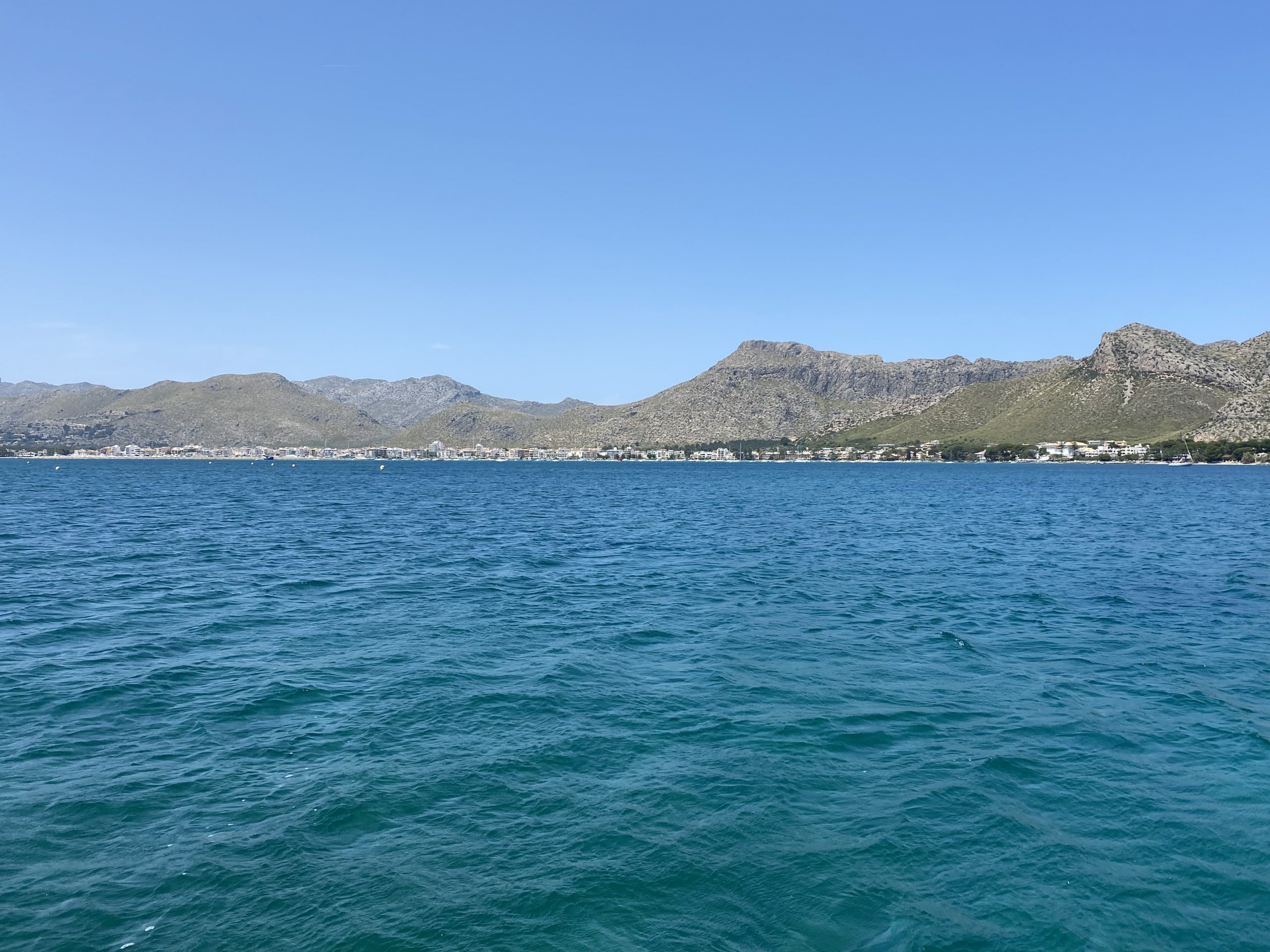 Omdat we daar over 3 dagen toch al gaan ankeren, valt ons oog op Cala Pi de la Posada, die er ook mooi ruim uitziet. Het is lang zoeken naar een zandplaat voor ons anker en als we eenmaal liggen, vinden we het toch geen fijn plekje. Veel wind, onrustig water en onze ankerketting ligt door zeegras. Al met al geen fijn plekje voor de nacht. Het anker halen we weer op en we zetten onze koers door naar Pollensa. Daar aangekomen zijn de omstandigheden stukken beter, iets minder wind, bijna geen swell en voldoende zand voor ons anker. Volgens de voorspellingen gaat de wind draaien naar het zuiden en zal gaan afnemen. We eten van wat we nog in de koelbox en de voorraadbank hebben liggen.