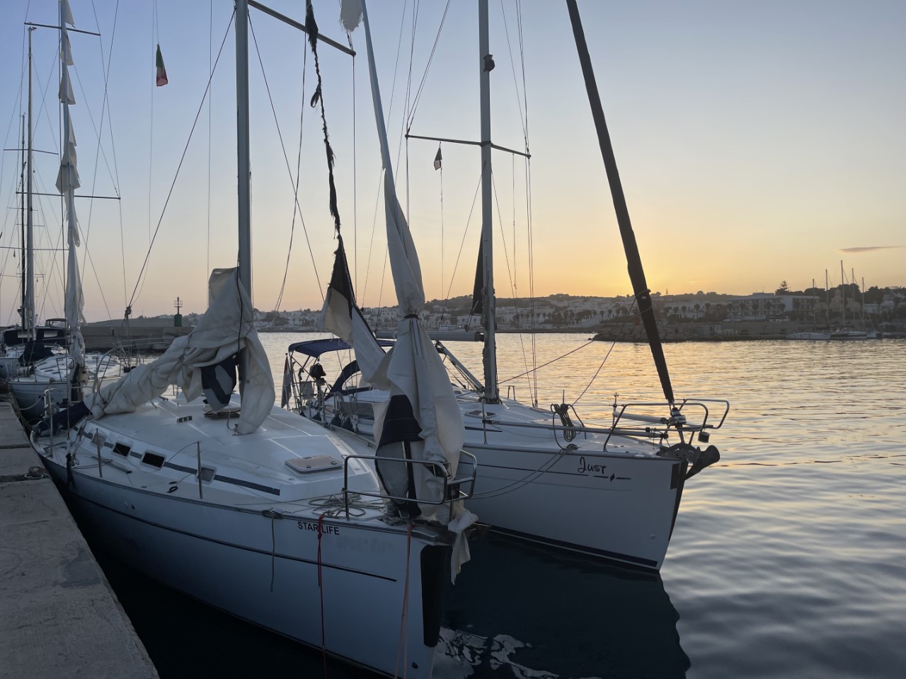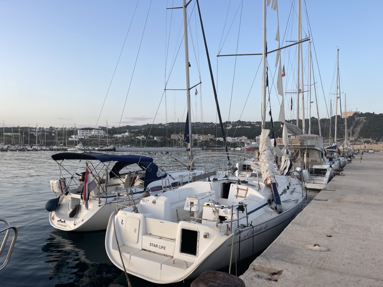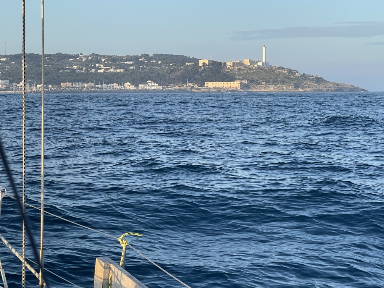 Eindelijk zien de weersvoorspellingen er goed uit. We willen voor donker aankomen, dus mogen we weer eens vroeg ons bedje uit. Als we uit de grote havenkom van Crotone komen, laten we de stuurautomaat voor de rest z’n werk doen. Het is nagenoeg één rechte koers naar de laatste havenplaats, die we aandoen in Italië.