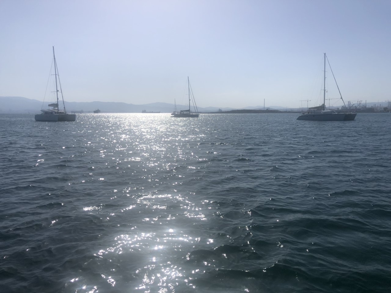 Wij gaan ankeren in de baai van Gibraltar. Dezelfde als toen we aankwamen een paar dagen geleden. Het is ons goed bevallen en het water is er glashelder. Er staat vandaag alleen iets meer wind en die duik in het water vinden we niet aantrekkelijk. We liggen nu nog deels op de Atlantische Oceaan (koud water) en morgen varen we langs de Costa del Sol (warmer water). We hoorden van anderen, dat het een paar graden kan schelen. Dan maar lui onderuit met een boekje. Af en toe op het voordek en als het daar te warm wordt in de schaduw onder de bimini.