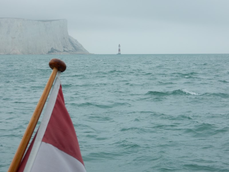Uitslapen was er niet echt bij. Half 7 waren we klaar wakker. Gelukkig gaat de ASDA al om 6 uur open en kon ik een vers stokbrood halen. Na het ontbijt begon het een beetje te miezeren, wat overging in wat buien. Onze geplande gezamenlijke wandeling naar de ASDA om onze ijskast aan te vullen, hebben we verplaatst naar de namiddag als we zijn aangekomen in Brighton. De beste tijd qua stroming is 12:00 uur. We kunnen gelijk de sluis in en worden snel geschut, samen met een ander Nederlandse zeilboot. Iets voorbij de pieren rollen we de fok uit en de motor gaat uit. Met een ruime 6 knopen ronden we Beachy Head, waarna we een koers voor de wind gingen varen. De fok wisselden we door de draaiende wind naar bak of stuurboord. Jammer genoeg heeft het de gehele tocht geregend, dus mijn geplande drone vlucht om een paar mooie foto’s en filmpjes te maken bij Beachy Head is in duigen gevallen. Marianne vroeg via de marifoon in de haven netje aan de havenmeester voor een ligplaats. Ponton 10 kregen we toegewezen. Bij het er naar toe varen werden we via de marifoon door een nerveuze havenmeester opgeroepen. Just Just to starboard. We moesten naar ponton 11, lekker duidelijk, maar we hebben een ligplaats. De regen hield nog een uurtje aan, maar al snel brak de zon door. De geplande boodschappen bij de ASDA hebben we weer verschoven naar morgenochtend. Mijn voorstel tijdens het zeilen om bij Day’s te gaan eten, een van ons favoriete restaurantjes, werd volmondig aangenomen. En we waren wel toe aan een wandeling. Wat een tegenvaller Day’s bleek op last van de gemeente gesloten, vanwege achterstallige betalingen. Dan maar wat flaneren door Brighton en discussiëren wat dan? Het werd Harvester, die hebben heerlijke spareribs en als afsluiter van ons 2 gangenmenu kregen we ook nog een veels te groot rocky terror toetje. Dus de wandeling terug werd meer rollen.