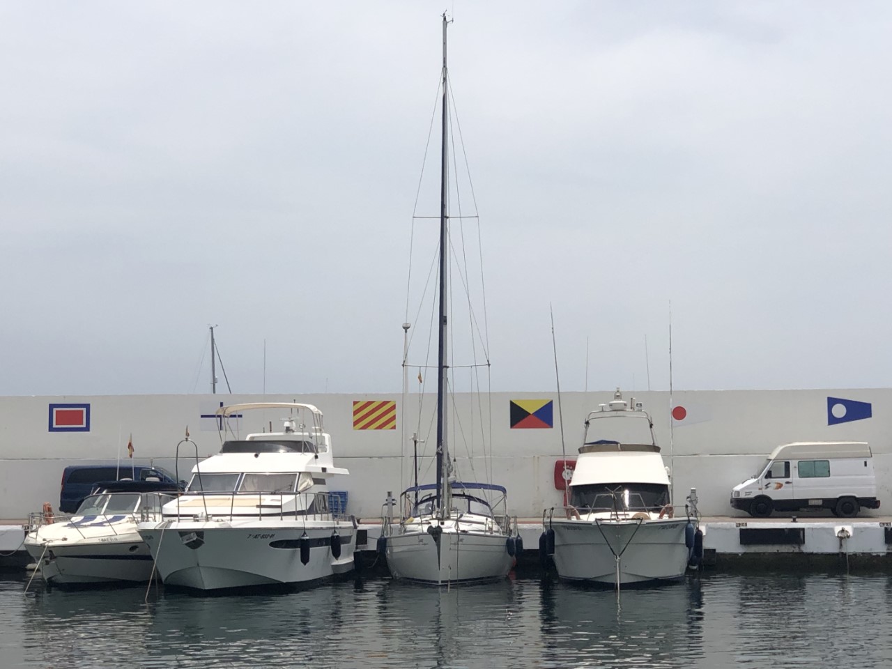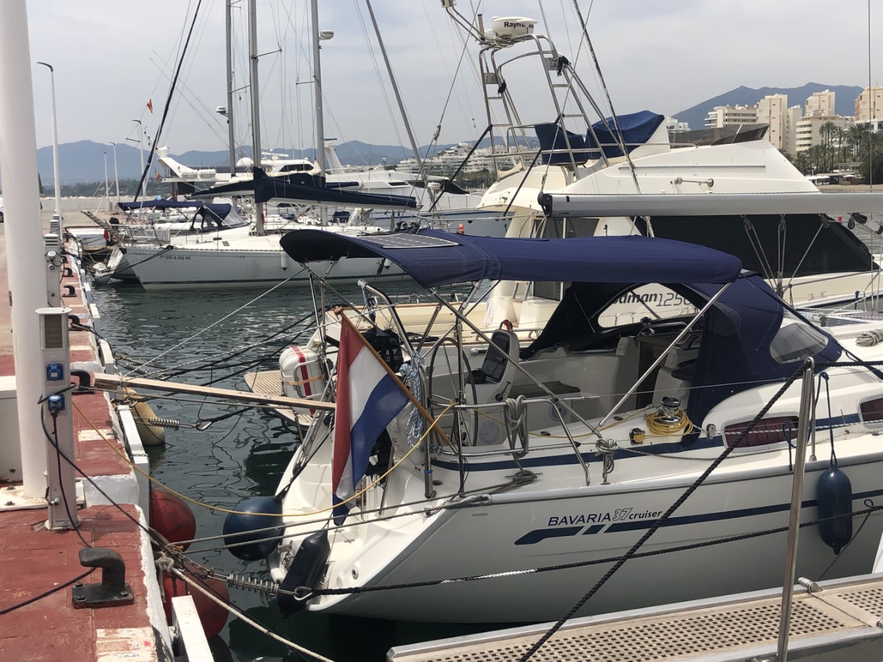 Vandaag hebben we een kort motortochtje, waarbij de wind het weer liet afweten. Marianne had voor de zekerheid gebeld met de haven van Marbella voor een ligplaats. Dat was geen probleem. Alleen bij de registratie was er een moeilijk kijkende marinero. Marianne zei dat ze een reservering had en toen werd het minder moeilijk en kregen we een plekkie. Het aanleggen “op z’n Middellandse Zees” ging perfect met z’n tweetjes, we leren het al. Wij hebben op onze beurt de Mañana geholpen met aanleggen, die kregen een heel erg smal plekje aangewezen. Met wat duwwerk lagen die ook vast aan de kade. Even een verdiend drankje op de Mañana en toen gingen we snel naar het strand. We hebben gelijk een duik genomen om af te koelen en hebben even liggen bakken.