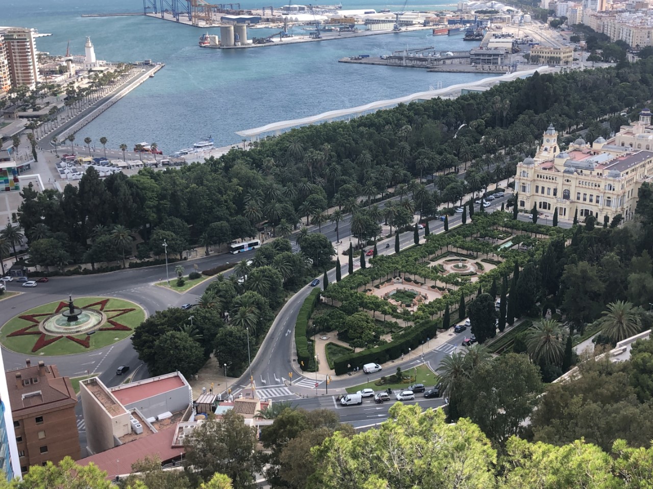 Na die tijd gingen we met de Metro naar Malaga. Een ritje van 45 minuten. Je zou verwachten dat er dan bij het eindstation een toeristeninformatie is, maar niet hier. Via Google Maps hebben we het kantoortje gevonden en daar een duidelijke plattegrond gekregen met alle hoogtepunten. En die waren er. We liepen eerst langs de haven en deels door het mooie Paseo Del Parque. Aan het einde van het park zijn we begonnen aan de steile klim van ruim 120 meter naar Castillo De Gibralfaro. Daar was een prachtig uitzichtpunt over Malaga. We gunden ons geen tijd om het kasteel te bezoeken. We liepen voorzichtig weer naar beneden over de gladde keitjes. We kwamen uit bij Teatro Romano, die overging in gezellige winkelstraatjes. We hebben een klein stukje van de Picassoroute gelopen en toen naar de drukke, dure winkelstraat Calle Marques De Larios. In een zijstraatje zagen we de kerktoren van de Catedral Nuestra Señora De La Encarnación, waar we ook maar een rondje omheen gelopen hebben. Als laatste zijn we naar het super grote warenhuis El Corte Inglés geweest waar we snel doorheen geracet zijn. Alleen bij de MI-Stepjes hebben we weer lopen twijfelen, doen of niet doen? We zijn verstandig geweest, omdat we dachten dat we op onze komende bestemmingen over een paar weken meer gaan ankeren en dan vaker met de bijboot naar de kant gaan.