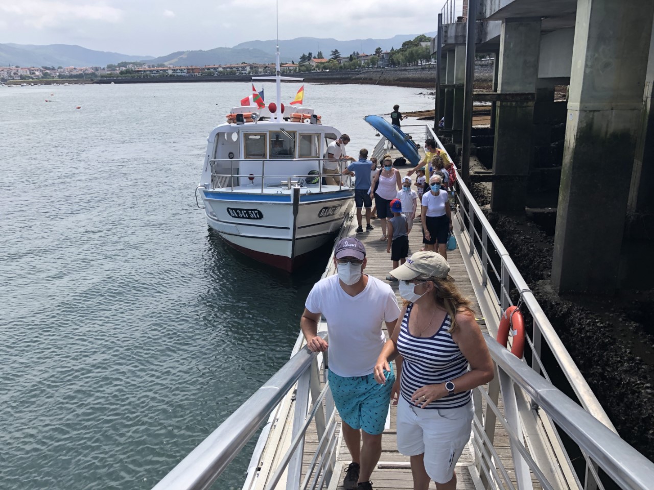 We hebben stukken beter geslapen dan gisternacht en vooral de crew, die was niet wakker te krijgen. Pas om 10:00 uur zaten we aan het ontbijt. Maar daarna gingen we snel op weg, terug naar Frankrijk. Niet met de Just, maar met het veerpontje naar Hendaye. Deze pendelt ieder kwartier tussen Spanje en Frankrijk. We hadden gelezen, dat het aan de overzijde veel toeristischer en drukker zou zijn. Na een hele lange wandeling naar het centrum, wat wij niks vonden voorstellen, zijn we naar een veel gezellige boulevard en strand gelopen. Bij het veerpontje terug naar Spanje was het druk, maar het duurde niet al te lang. Op de Just heb ik de crew verwend met een stokbroodje gezond. Na een korte siësta zijn we naar het strand, direct bij de haven geweest voor een paar uurtjes bakken en een duik in de Golf van Biskaje. Voor de avond hadden we het kiprestaurantje Aratz gespot en dat was een hele goede keus. Voor een toetje gingen we naar Gelateria Valenciana, wat ons gisteren ook goed bevallen was. De Spanjaarden zitten nog de hele avond op de terrassen te drinken en te eten. Er is nog veel geroezemoes op straat als we moe terug gaan naar de Just. Voor morgen een klein zeiltochtje naar San Sebastian.