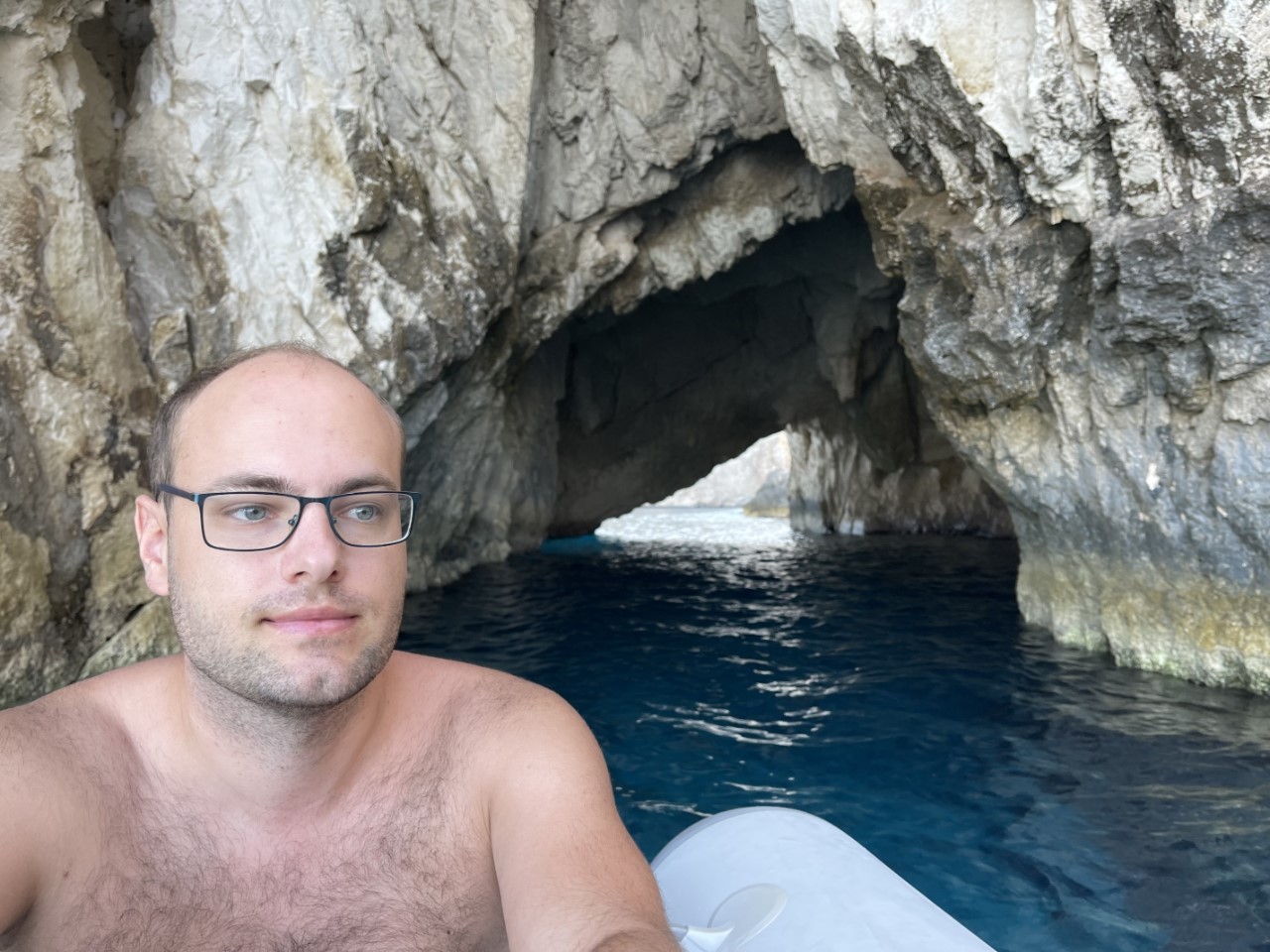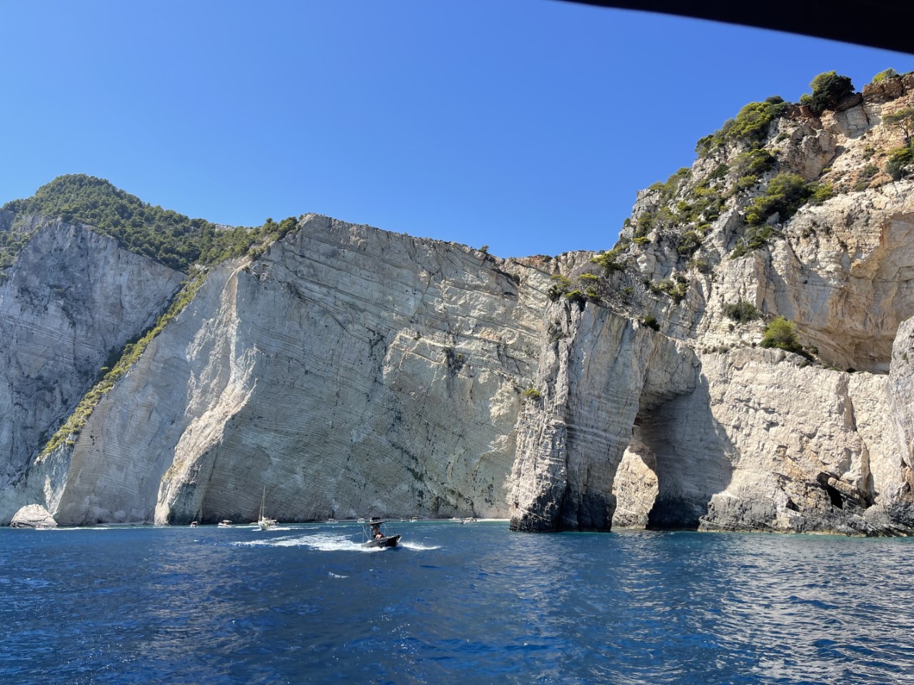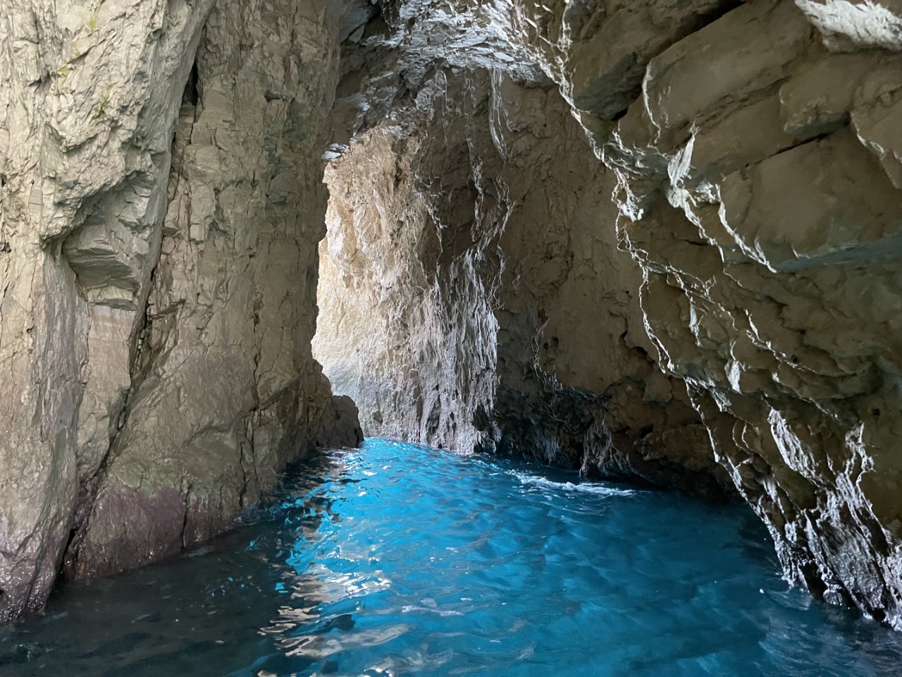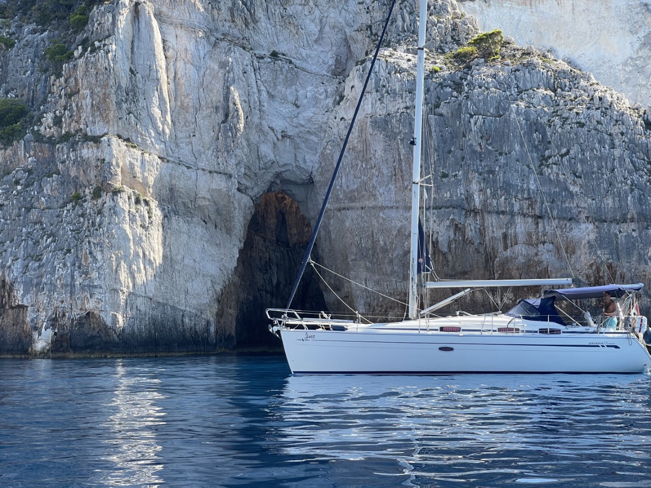 We zijn vanmorgen al vroeg aan het varen. Niet met de Just, maar met het bijbootje. Samen met Daniel ga ik roeiend de grotten bezoeken. Marianne blijft nog lekker even in de voorkajuit liggen.