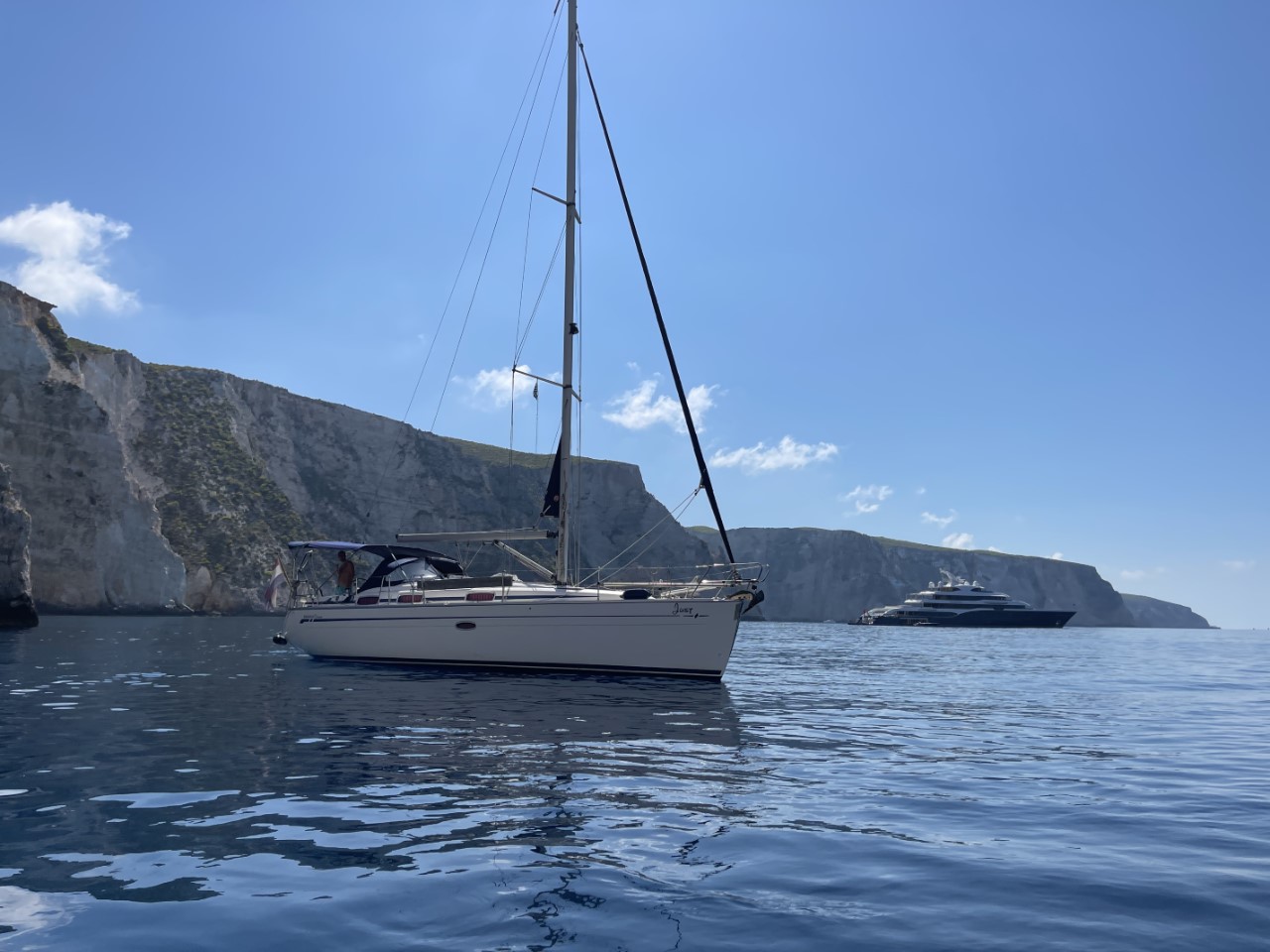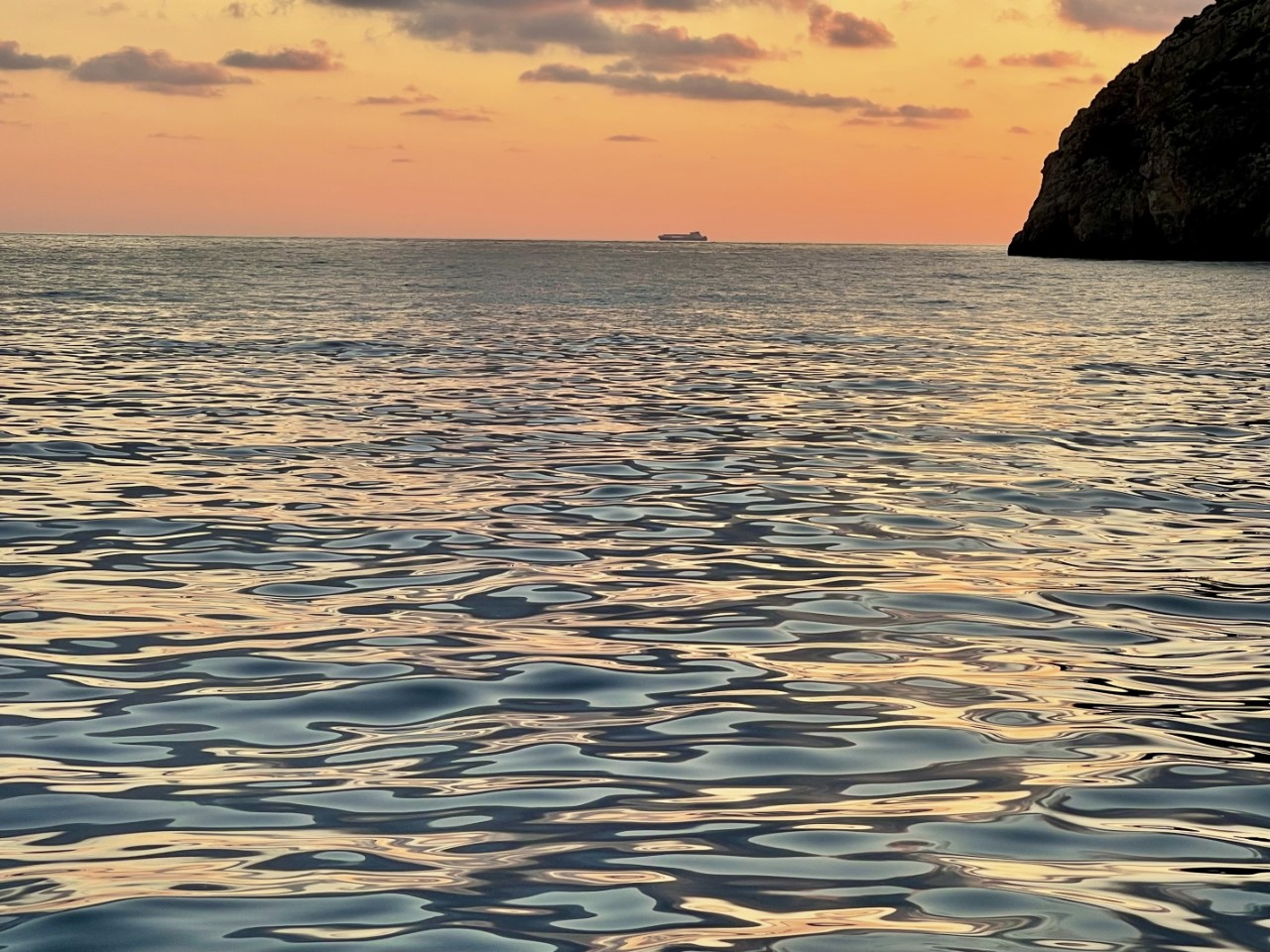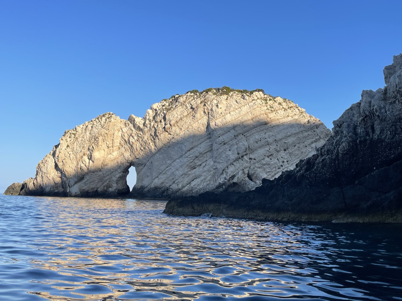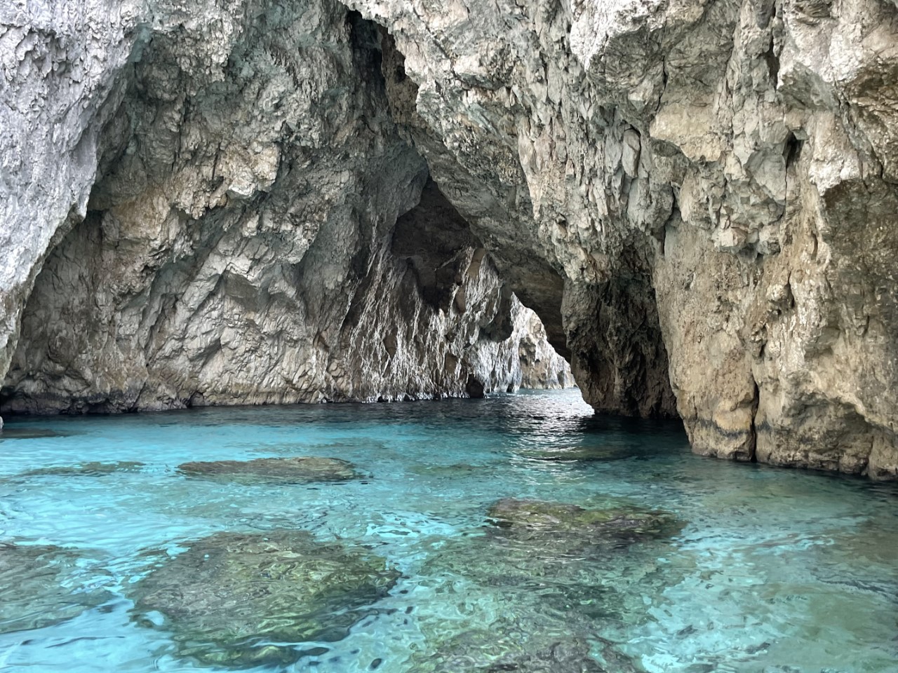 We zijn vanmorgen al vroeg aan het varen. Niet met de Just, maar met het bijbootje. Samen met Daniel ga ik roeiend de grotten bezoeken. Marianne blijft nog lekker even in de voorkajuit liggen.