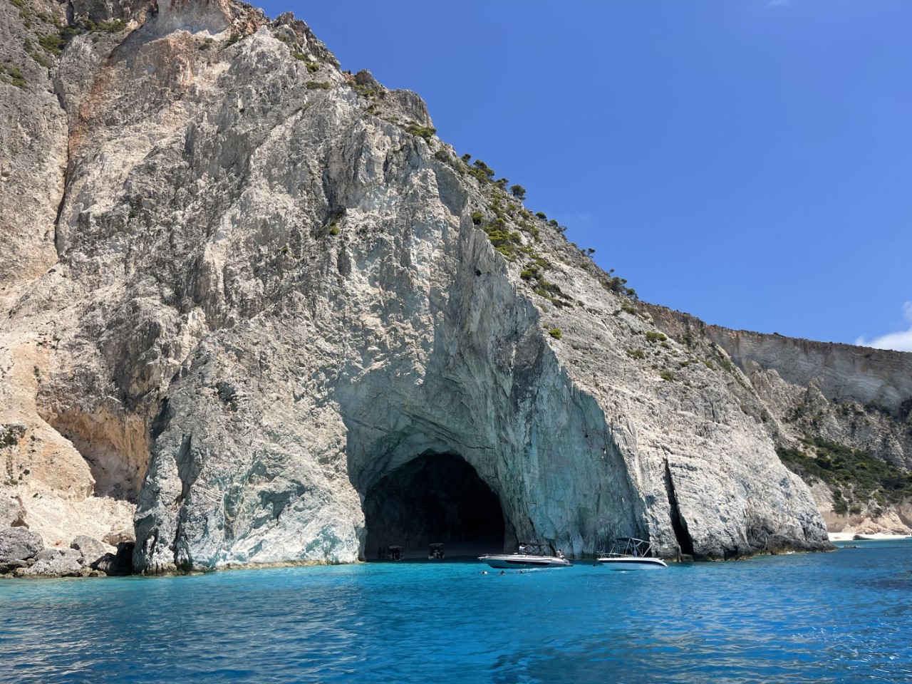 Bij de tweede ankerstop zwemmen we door een grot en via een doorgang zwemmen we de naastgelegen grot weer uit, heel apart en mooi. Iets minder is, dat een grote toeristenboot de grot diep in komt varen. De toeristen vinden het wel mooi en we worden veelvuldig gefotografeerd.