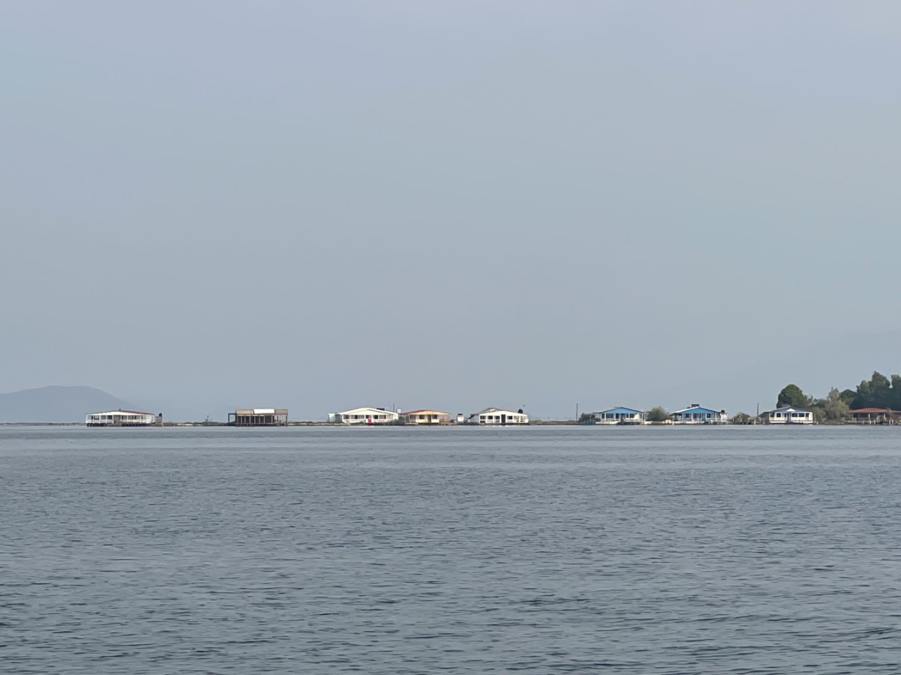 *We hebben maar weinig mijlen voor de boeg en doen rustig aan. Nog even het buitenboordmotortje ophijsen en we zijn klaar om te vertrekken. Het anker komt moeilijk los uit de modderbodem. Heel de ankerketting zit vol met modder en zo ook het anker, waardoor heel de ankerbak een modderig zooitje wordt.