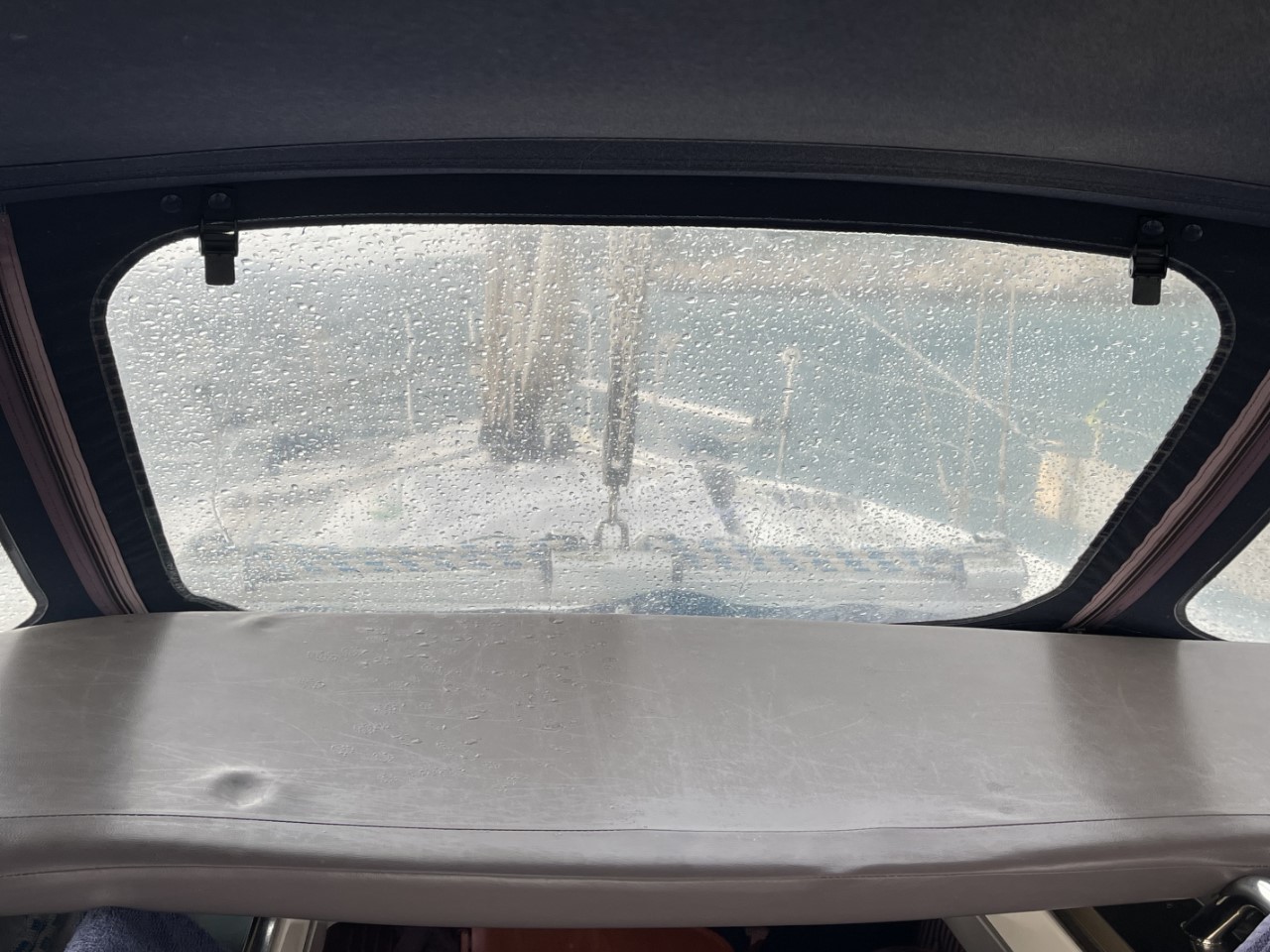 We zitten lekker uit te buiken in het kuipje als we net als gisteren een paar donders horen tussen de bergen. Niet veel later begint het ook te druppelen, wat overgaat in een verfrissende bui met donders, bliksem en flinke windstoten. In geen enkele weer-app hebben we dit weer gezien bij de voorspellingen. Gelukkig is het na anderhalf uur weer droog, windstil en stukken afgekoeld. Heerlijk om eens een temperatuur mee te maken onder de 30 graden.