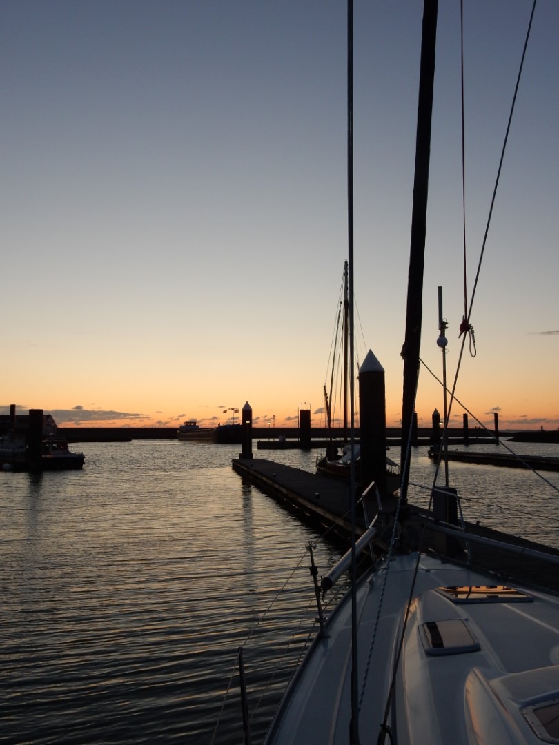 Ondanks dat we gisteren een winderig tochtje hebben gemaakt, waren we vroeg wakker. Aan boord zijn we langzaam bezig om alles een plekje te geven, zodat we niet meer zoveel moeten zoeken waar we alles gelaten hebben. Marianne ging aan de slag met de gevonden inductie-kookplaat en maakte pastasaus voor als we toch zouden besluiten naar Ramsgate te varen. Tussendoor keken we steeds bij buienradar wanneer we het beste kunnen vertrekken, rekening houdend met de Blauwe Golf (alle bruggen aansluitend open) in het Kanaal van Walcheren. De tijd staat vast 14:37 bij de Stationsbrug, dan kunnen we nog even de benen strekken in het centrum van Middelburg. We waren de enigen die de route richting Vlissingen namen. De beloofde 1 uur en 5 minuten voor de 5 bruggen klopte precies. We werden daarna in de kleine smalle sluis geschut met een groot verval naar beneden. Op de Westerschelde was het goed te doen, stroompje mee, windje mee en weinig grote vrachtvaart. We hebben nog even getwijfeld toch naar Blankenberge of die nieuwe haven in Cadzand, maar het werd toch Breskens, waar de pasta ook heerlijk smaakte.