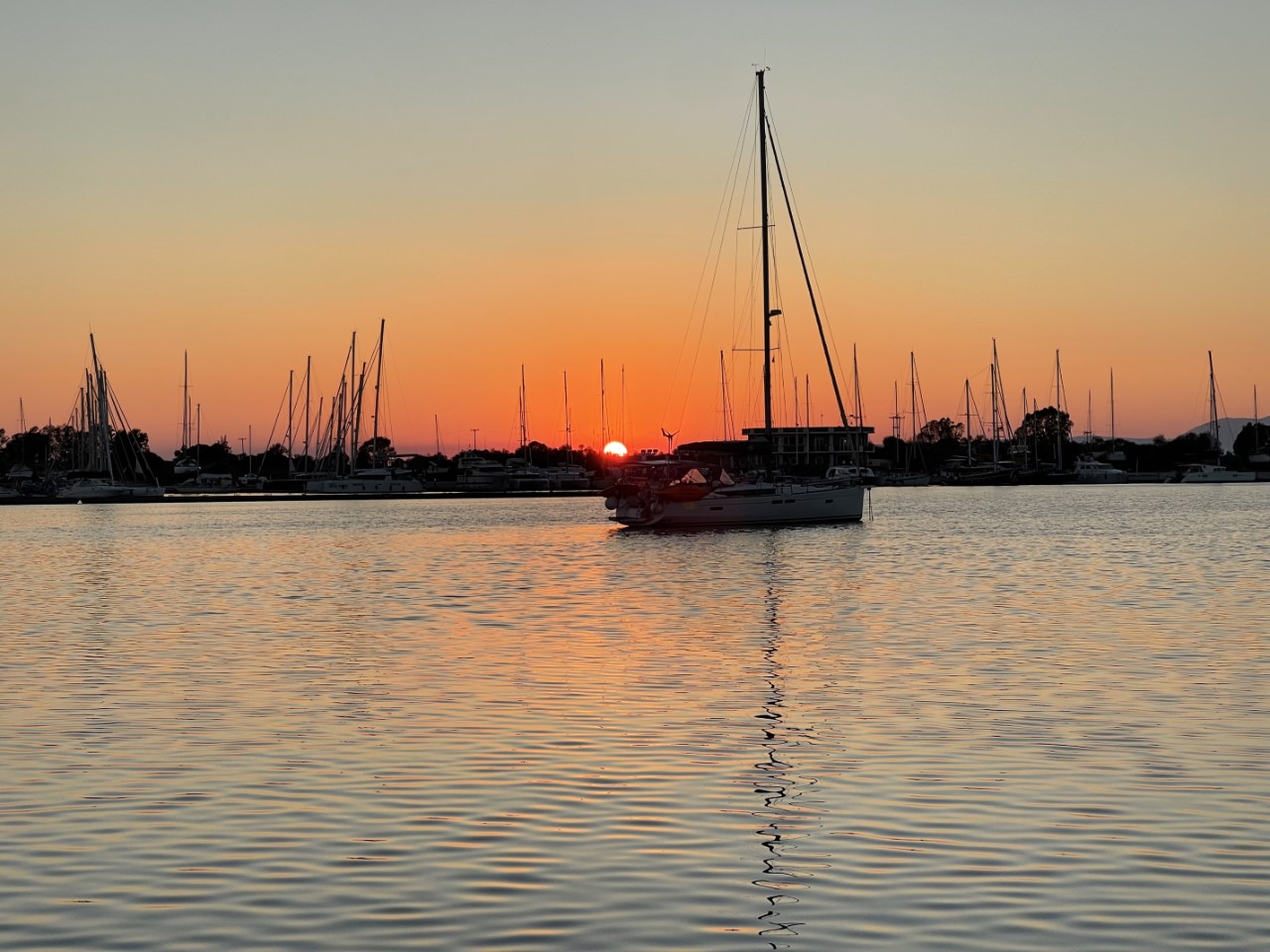 Wat een nacht! We dreven ons bed uit vanmorgen. Heel de nacht was er geen zuchtje wind. Gelijk uit bed spring ik direct het water in. We zijn er nog niet uit waar we heen gaan, blijven we bij het gezellige Náfpaktos of gaan we toch verder. Samen met Daniel ga ik boodschappen halen voor de komende dagen. Terug aan boord besluiten we om naar Messolonghi te varen, omdat het een hele rustige, ruime ankerplek is op een mooie tripafstand.