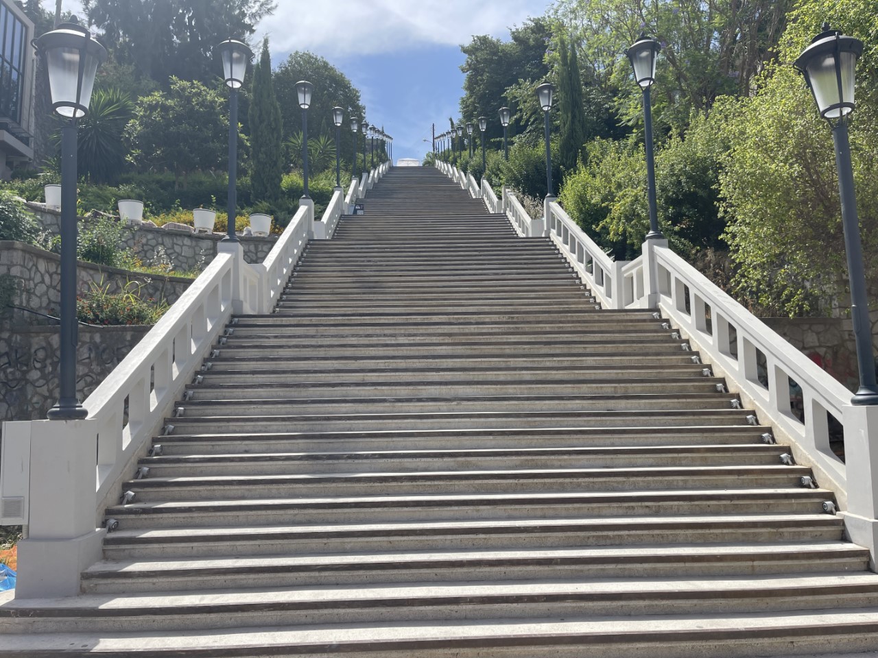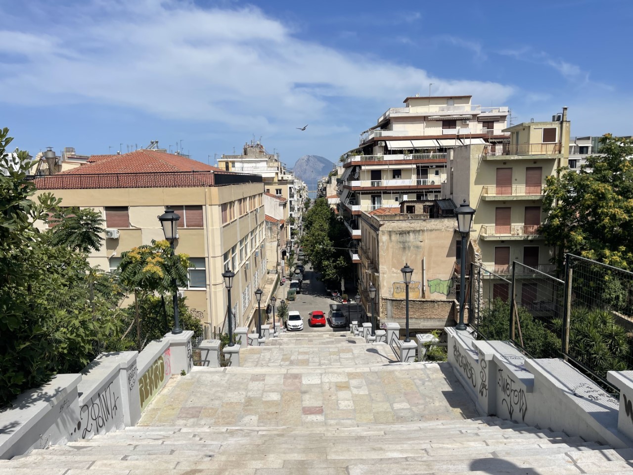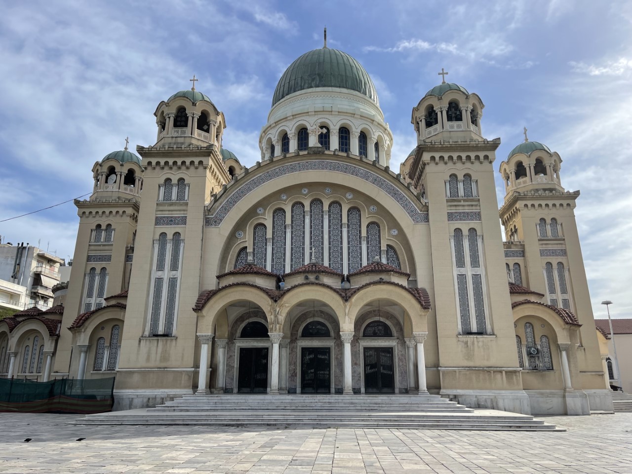 Aan het einde van de lange winkelstraat staan we voor een trap met meer dan 200 treden. Misschien leuk voor morgen en we nemen de afslag naar rechts. Bij een groot plein nemen we een lekker vaderdagijsje. We hebben een leuke indruk van Patras en snappen niet dat alle recensies op Navily zo negatief zijn. We eten aan boord en tegen de avond bezoeken we de Agios Andreas Basiliek, wat een groot bedevaartsoord is voor christenen.