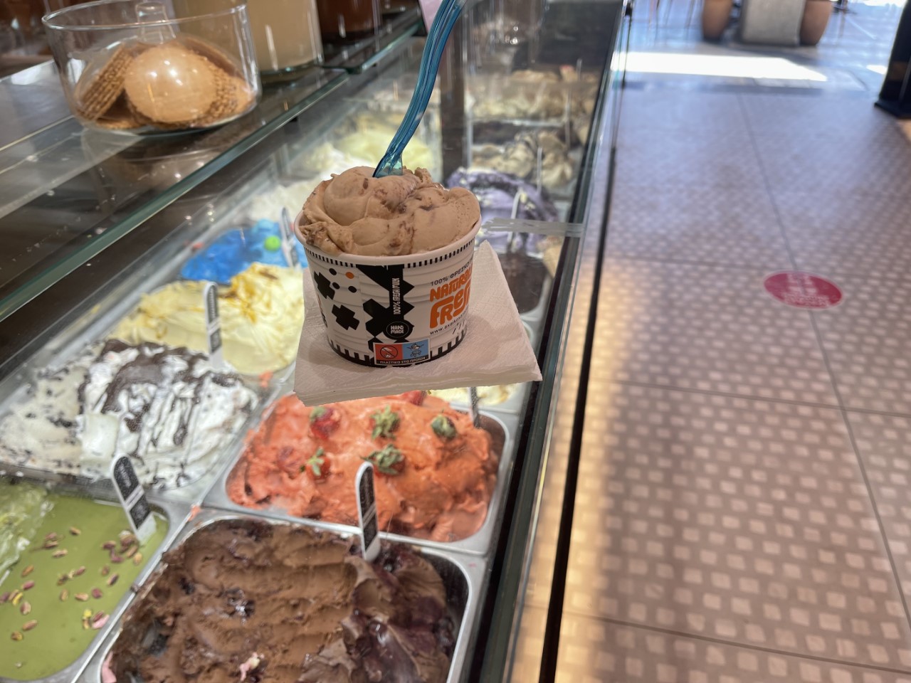 Na deze “sweet memories” steken we de straat over en staan we gelijk in de belangrijkste winkelstraat, de Agiou Nikolaou. We zien volop de grote merken winkels en de Zara en de H&M. Helaas is alles gesloten op zondag, dus we besluiten gelijk dat we morgen nog een dagje blijven.