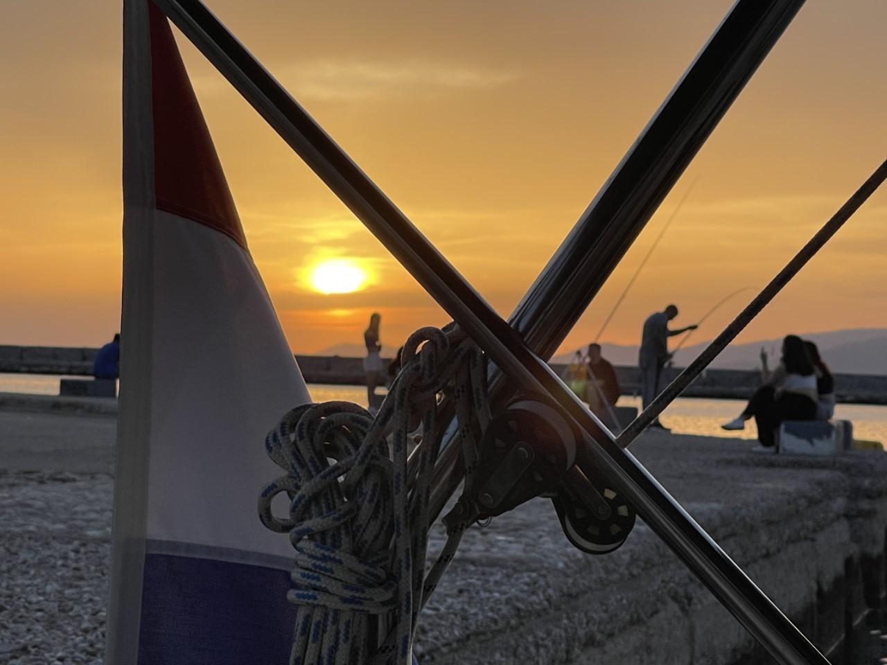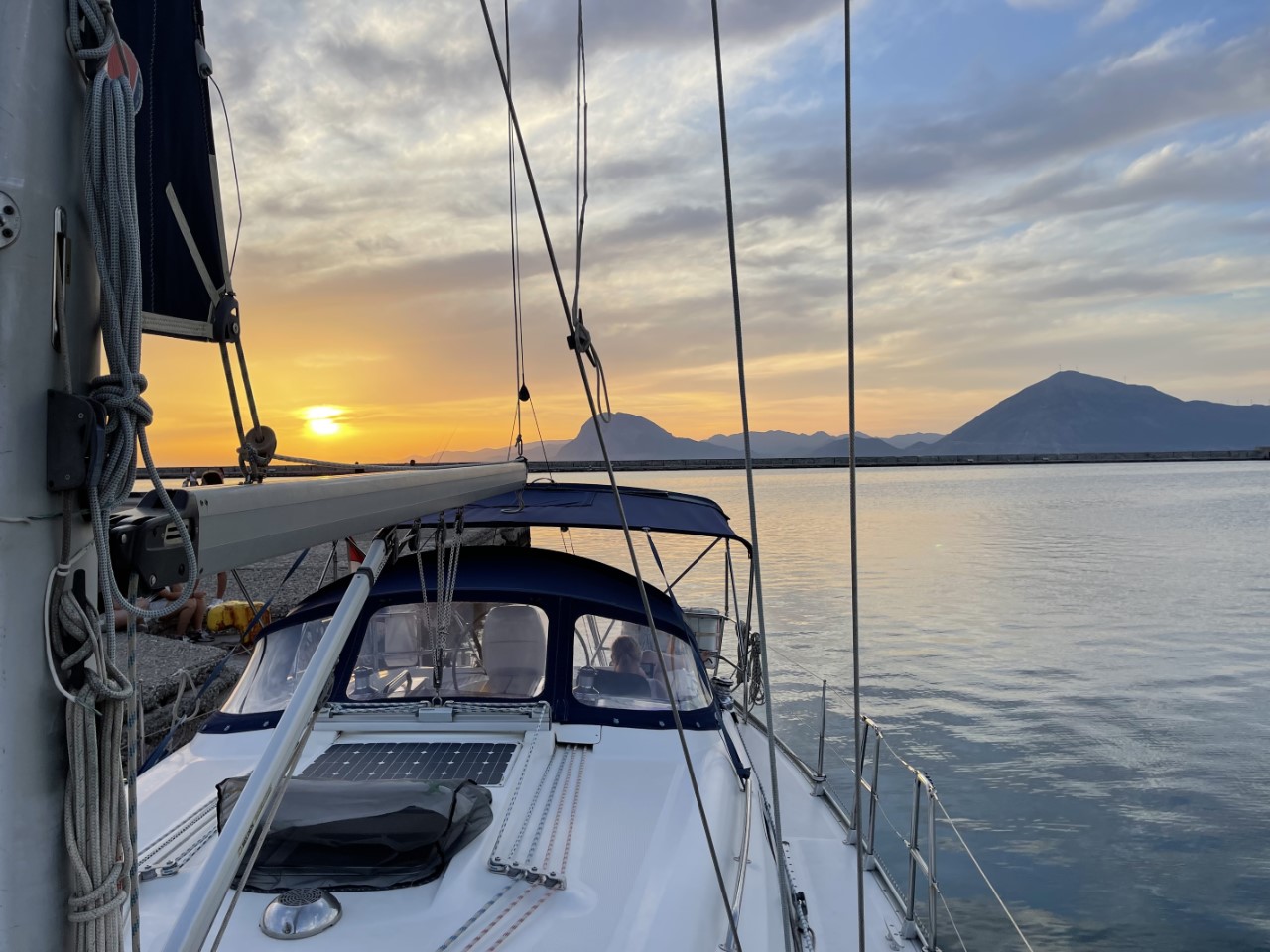 Wij brengen nog een bezoekje aan de ijssalon voor een lekker vaderdagtoetje. We zijn iets voor zonsondergang terug op de Just. Op de kade zijn veel Grieken aanwezig om samen met ons de zon te zien ondergaan.