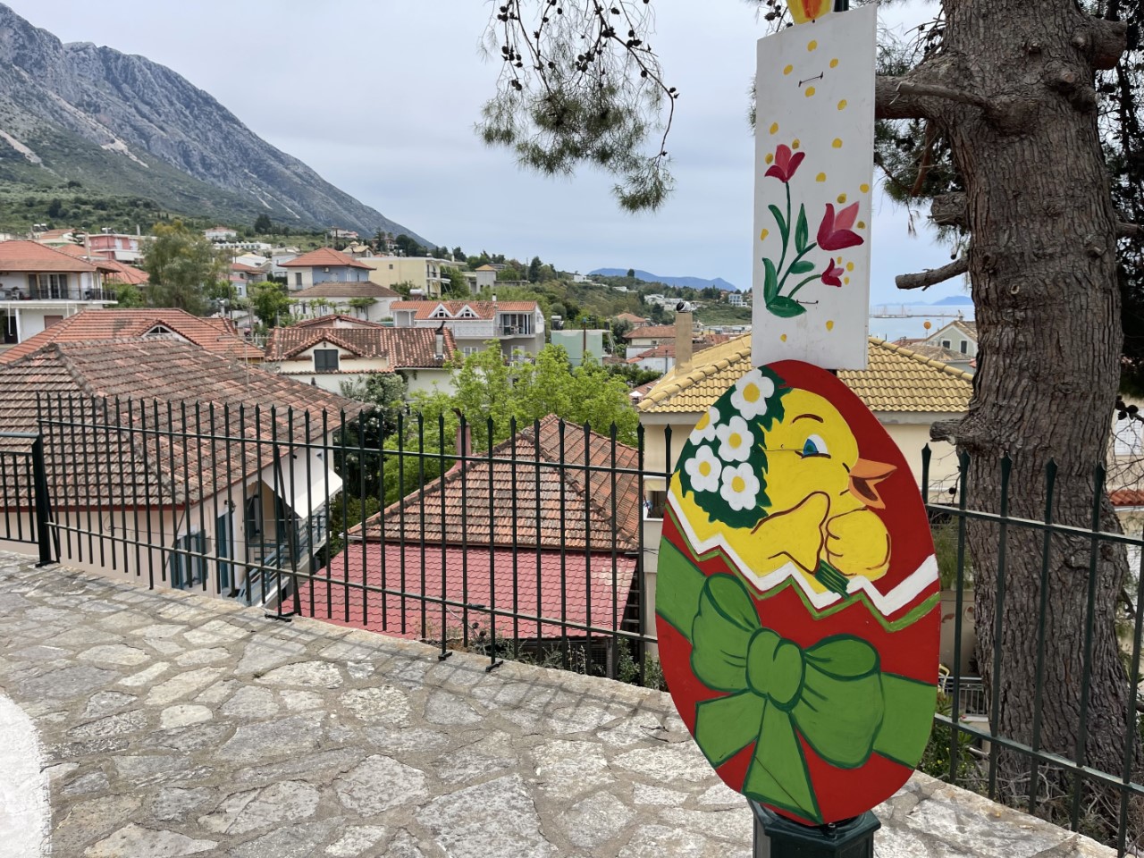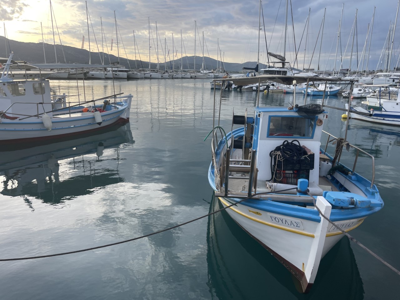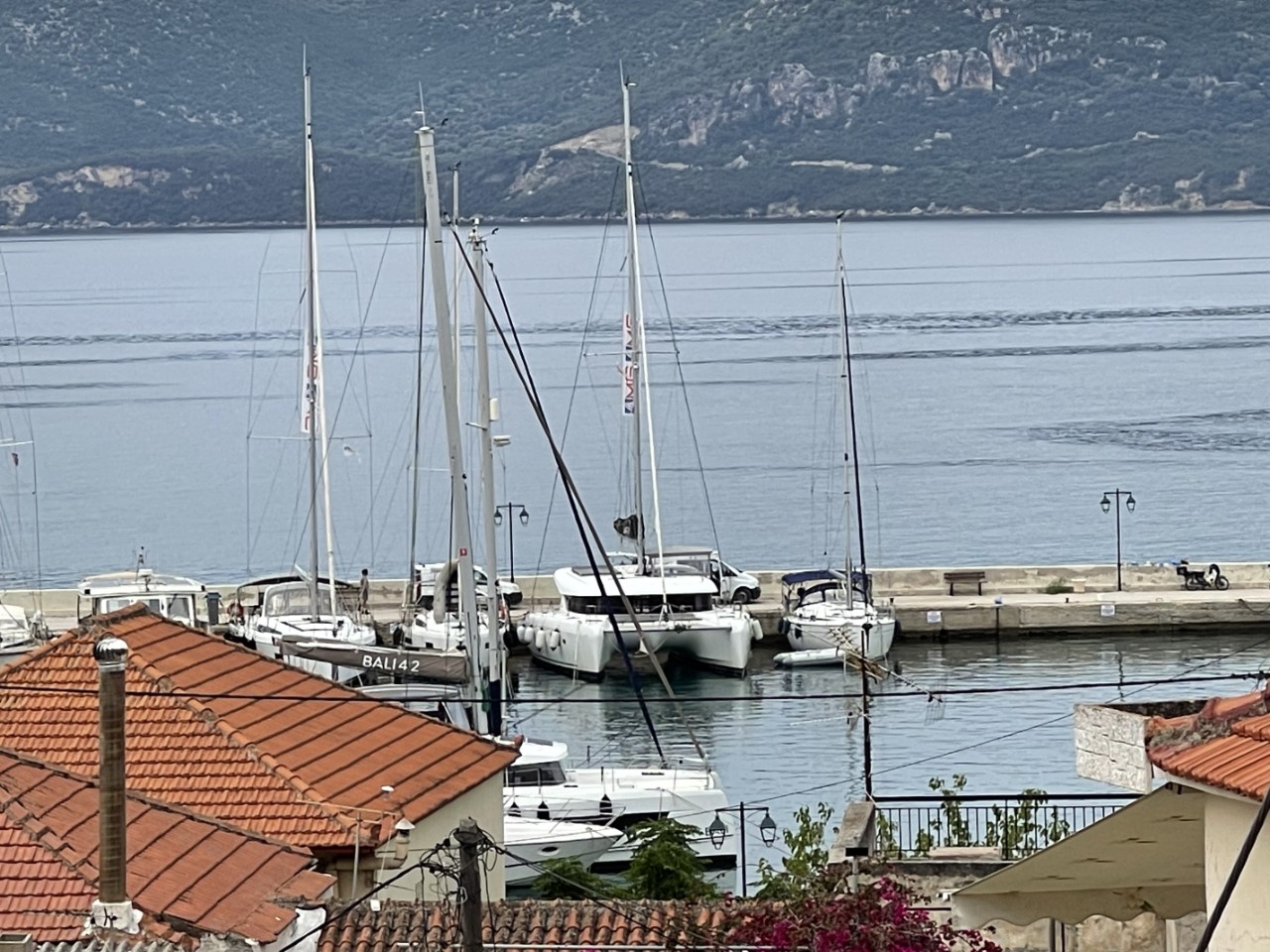 We vertrekken na ruim een week in Nydri. Het is maar een klein stukje naar de haven van Palairos. Net genoeg om de accu’s op te laden, lekker rustig aan te doen en nog voor de lunch aan de kade te liggen. Onderweg belt Marianne naar de havenmeester of er een plekje vrij is. We hebben in onze telefoon nog het telefoonnummer van de vorige keer dat we hier waren. Helaas de havenmeester heeft een vrije dag. Er is niemand om ons op te vangen.