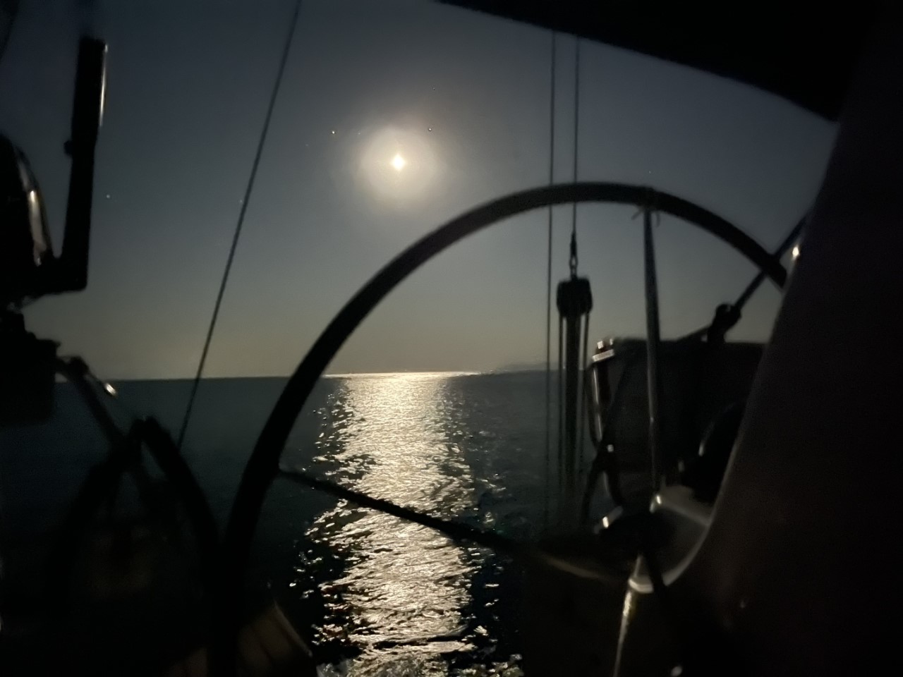 Tegen 20:00 uur neemt de wind af en volgens de voorspellingen krijgen we een bijna windstille nacht. Of Marianne en Daniel weer sterren gaan kijken, ik denk haast van wel. Al is de Maan een spelbreker, die weer een stukje groter staat te gloeien.