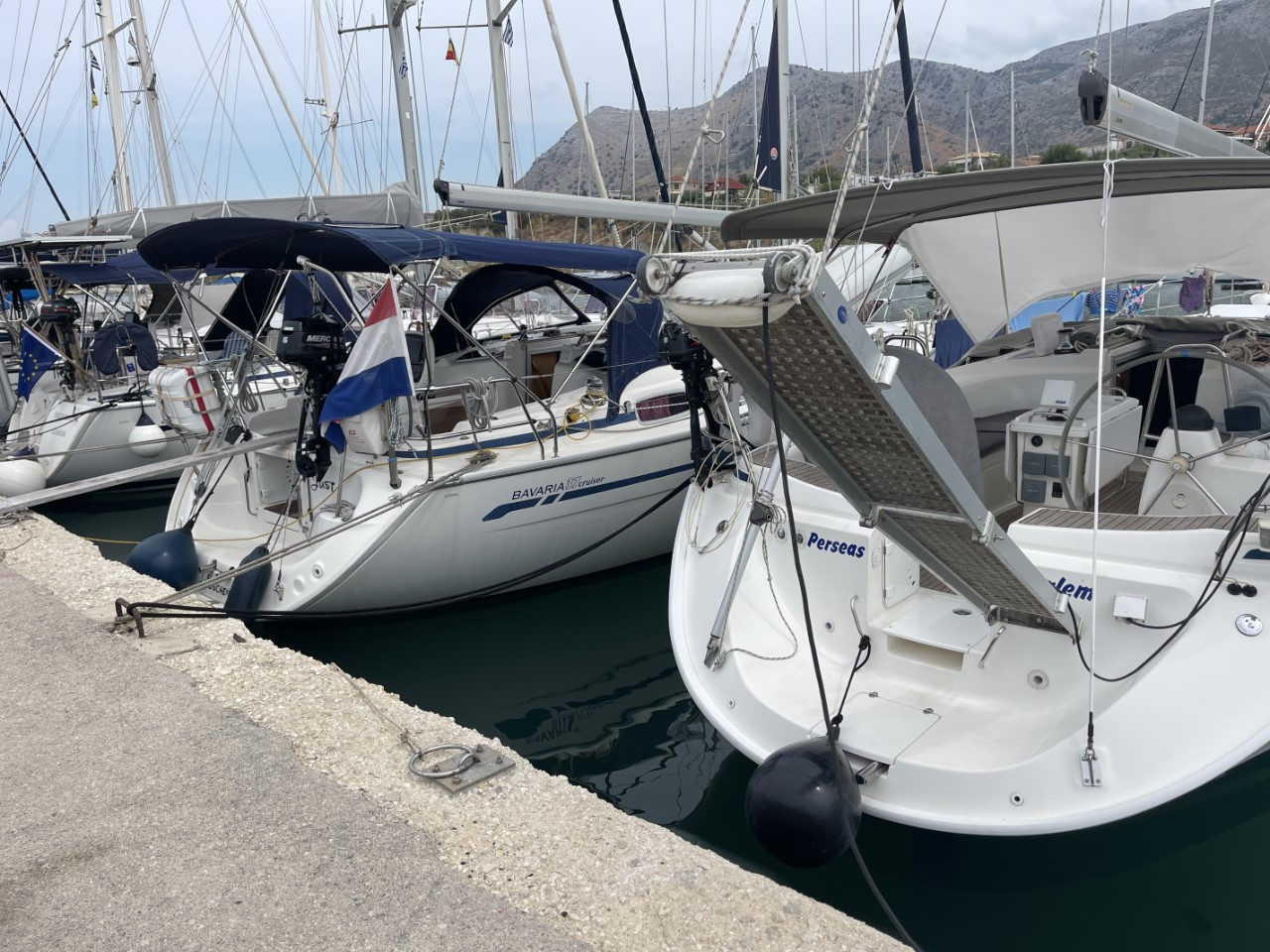 Vandaag varen we naar Palairos voor wat proviand en water. Op onze eerste aanlegsteiger is er geen water en elektra, dus verkassen we ons naar de kade aan de overkant. Daar hebben we weleens eerder gelegen. We liggen tussen een paar Nederlanders en dat is lang geleden. We vinden het wel gezellig.