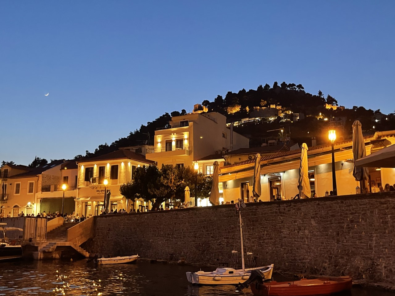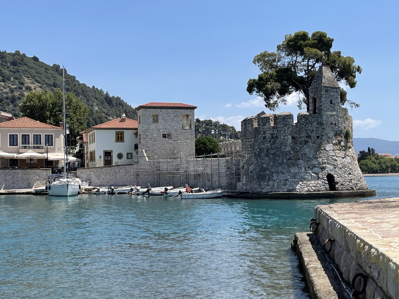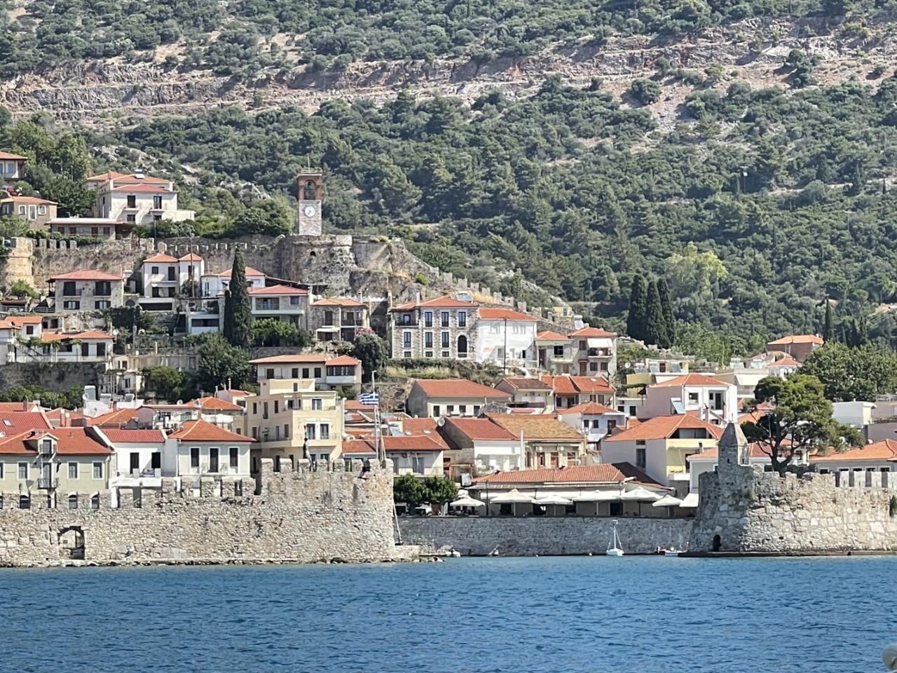 Pas na geruime tijd zijn we terug geslenterd langs alle terrasjes, waar we nog even gedag zeggen tegen buren uit Preveza. Tot heel laat hebben we in het kuipje gezeten, met onze kuipverlichting en een mocktail. Deze haven doet ons een klein beetje aan Honfleur denken. Daniel stuurt ons wat filmpjes van reisvloggers die vandaag een bezoek aan Náfpaktos hadden gemaakt en ons schip mooi in beeld hadden gebracht.