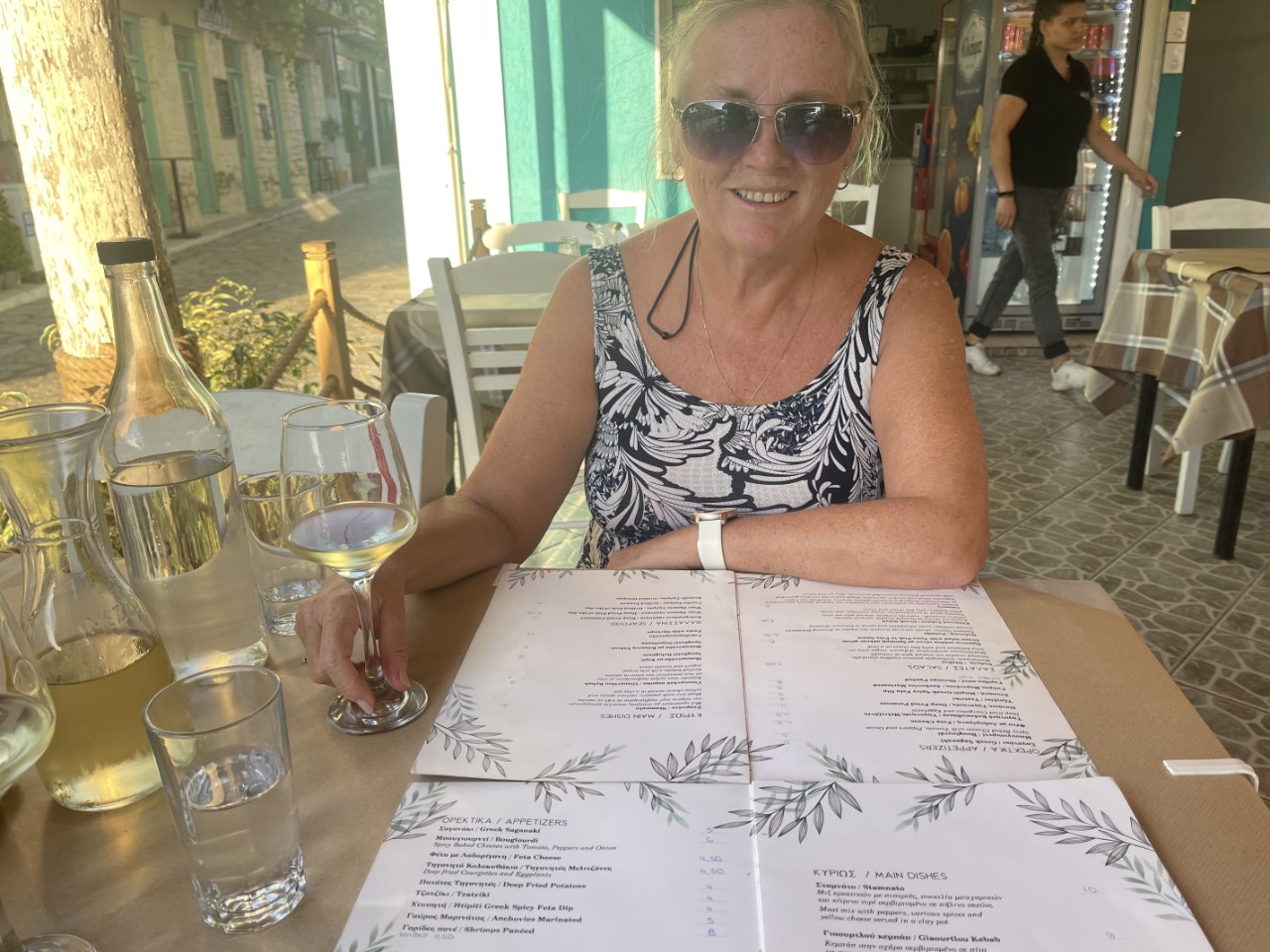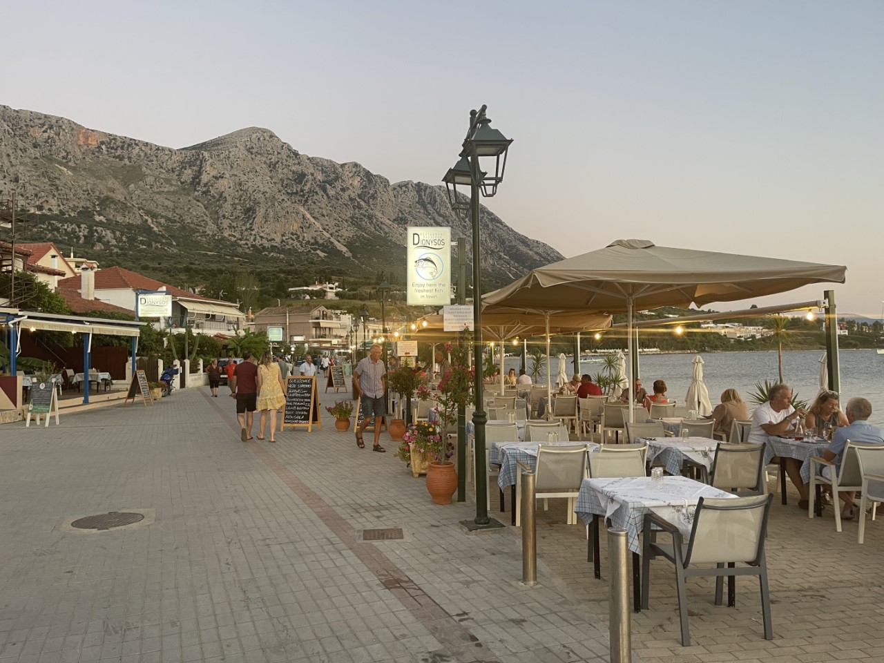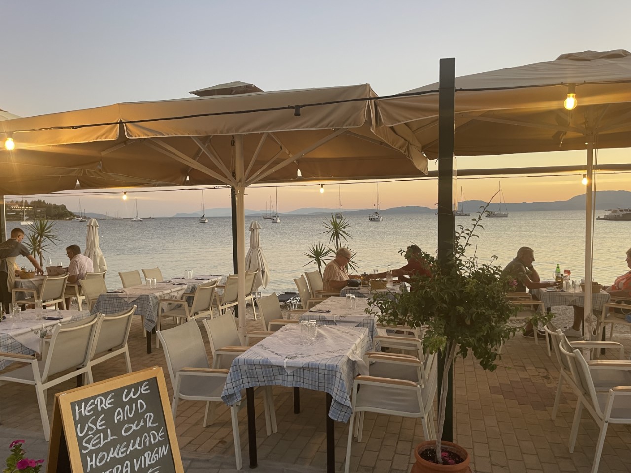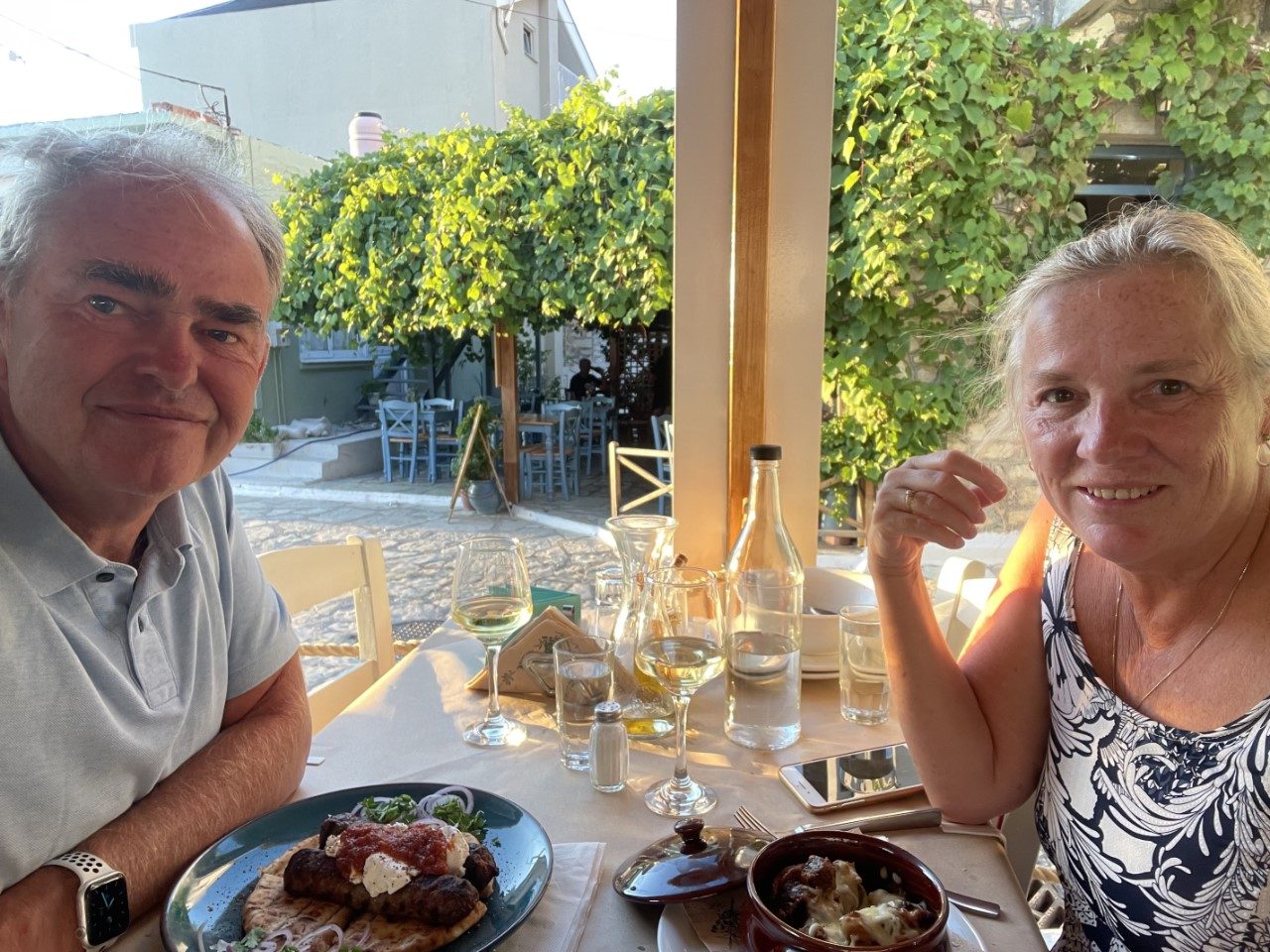 Het is weer flink warm en we zoeken in de namiddag wat verkoeling bij het strandje, waar we in gesprek raken met onze Nederlandse buren. De afgelopen week met wind zijn er toch wat mensen in de problemen geraakt. Wij hebben gelukkig goed beschut gelegen. We zijn flink afgekoeld in het water en gaan nog even relaxen op de Just. Tegen de avond zoeken we een restaurantje op voor een lekkere maaltijd. We hadden o.a. een kleipotje met gestoofd lamsvlees. Erg lekker.