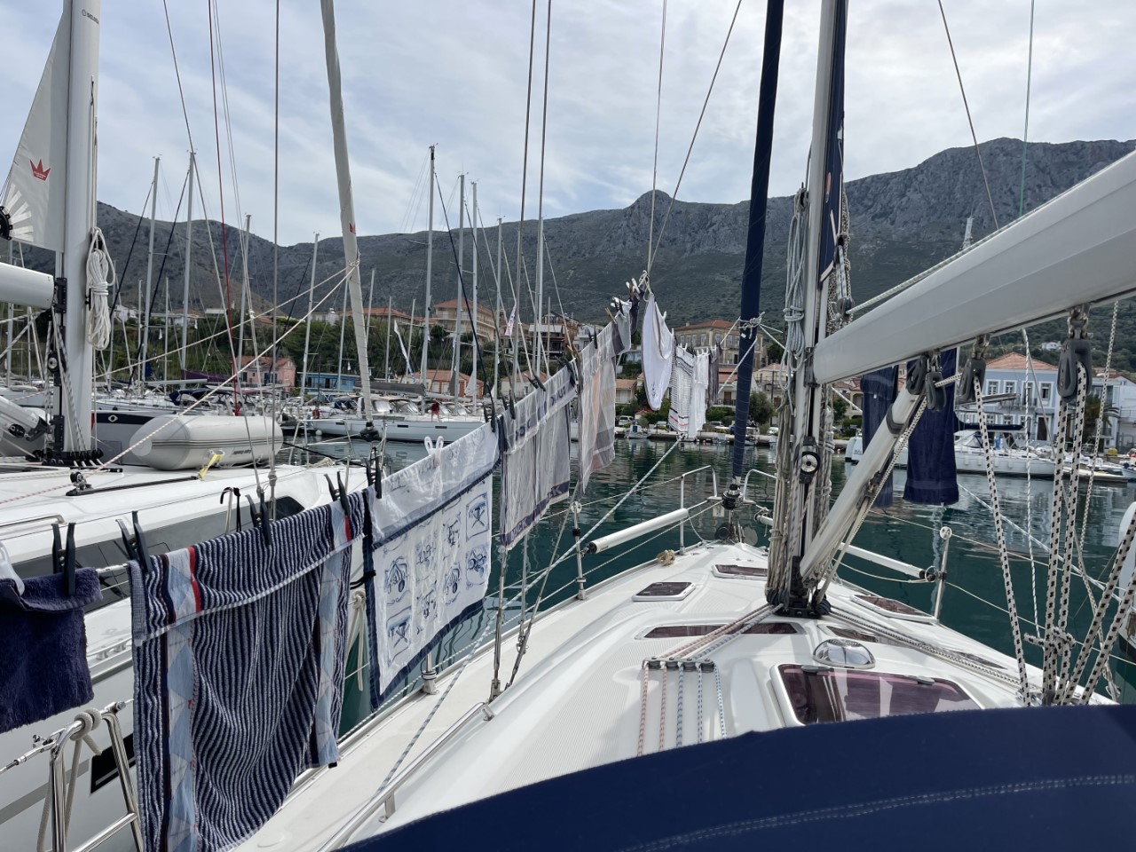 Wij gaan wat wandelen en halen wat laatste boodschapjes en drinken op een terrasje een bakkie koffie. Terug op de Just krijgen we Nederlandse buren, Hans en Coby van de Aeolus, waar we even mee hebben zitten kletsen. Zij zijn drie jaar geleden vertrokken uit Nederland, varen ook gedurende een half jaar en hebben nu ook hun doel, Griekenland, bereikt. Wat het nieuwe seizoen gaat brengen is voor hun ook nog een vraagteken.